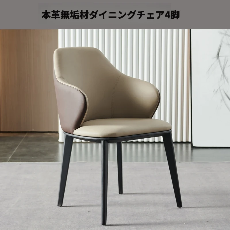 Bタイプ全真皮製実木ダイニングチェア4脚