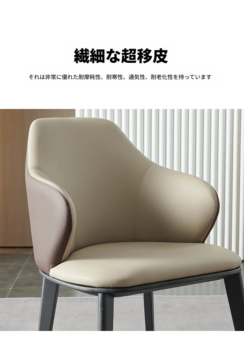 ツートンカラー実木超繊維皮製ダイニングチェア4脚