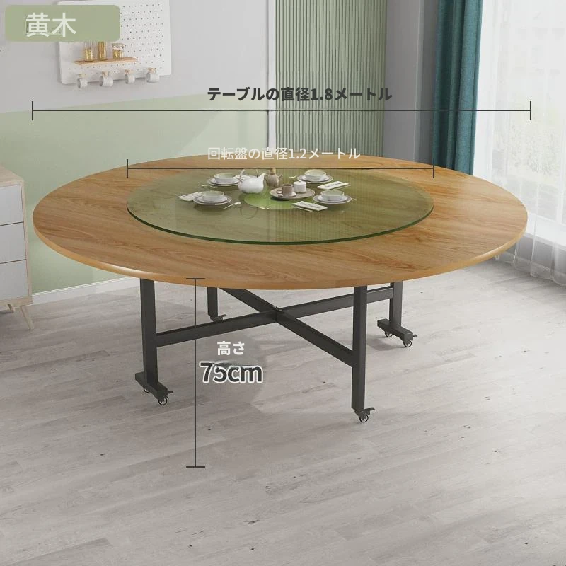 1.8メートル黄木目+1.2メートル強化ガラス回転台