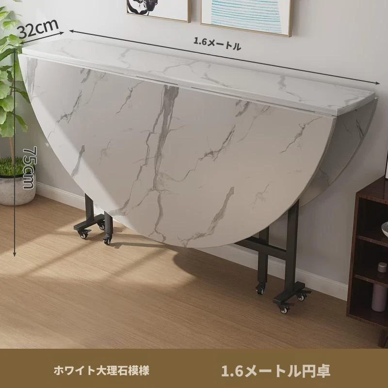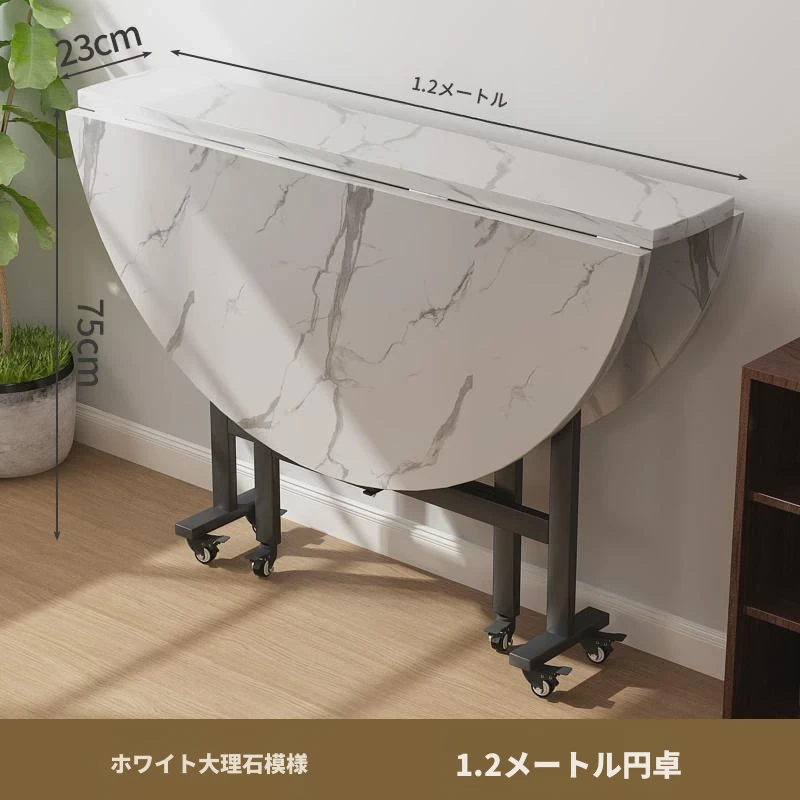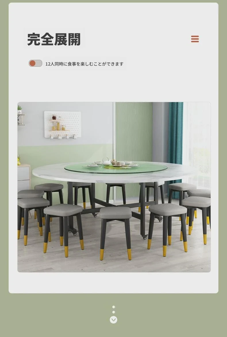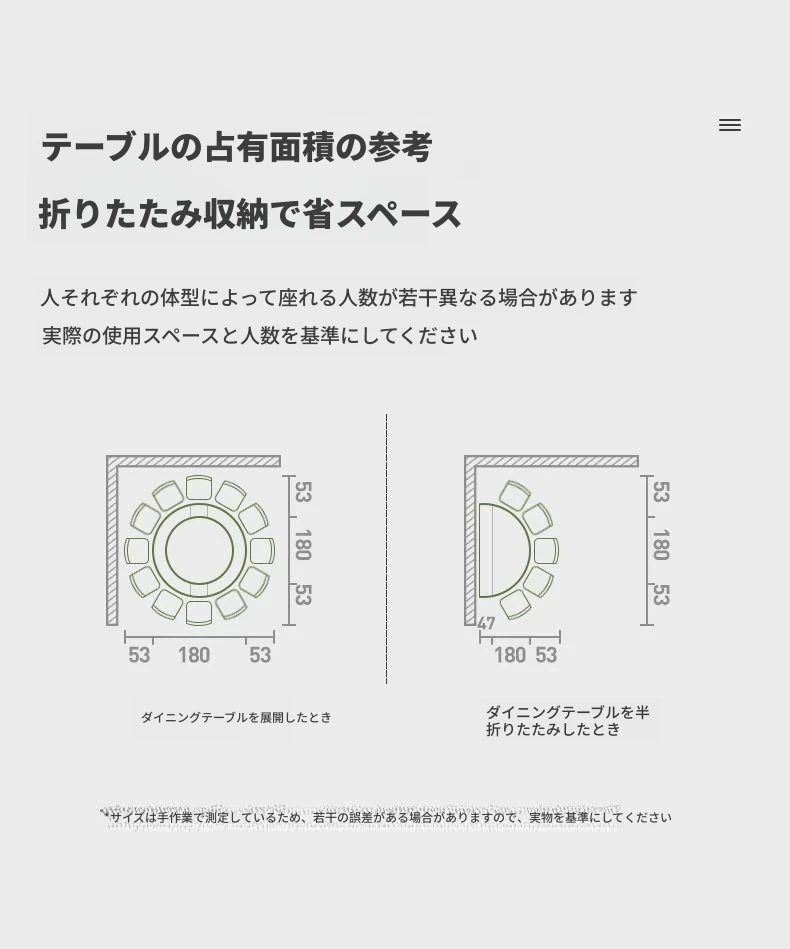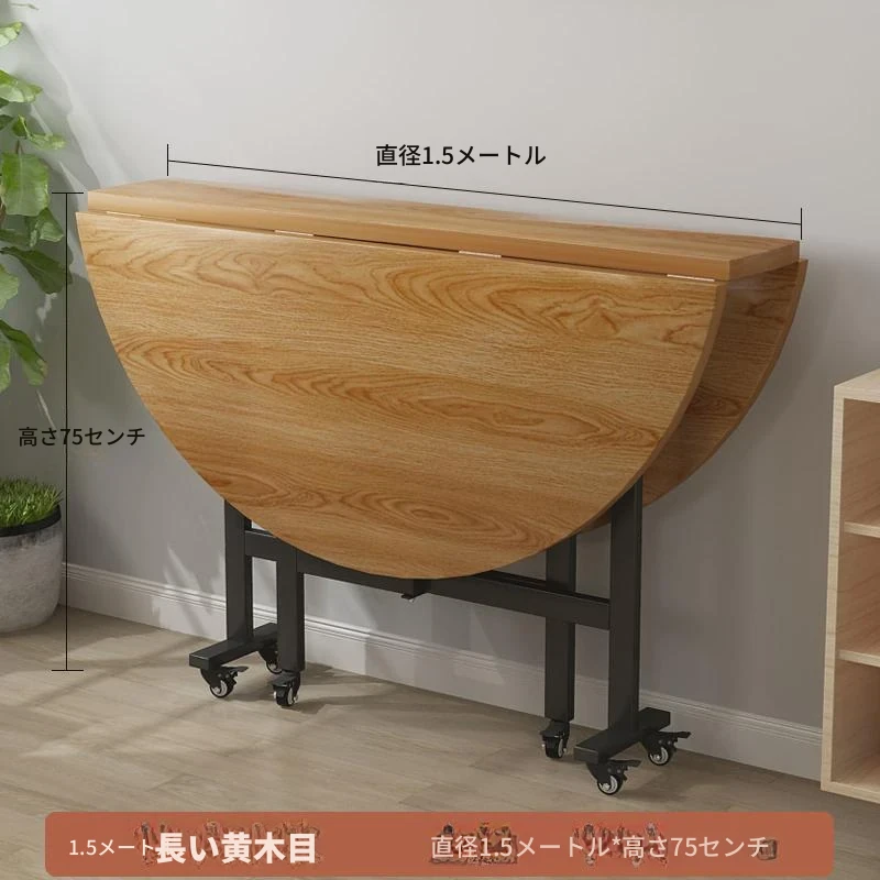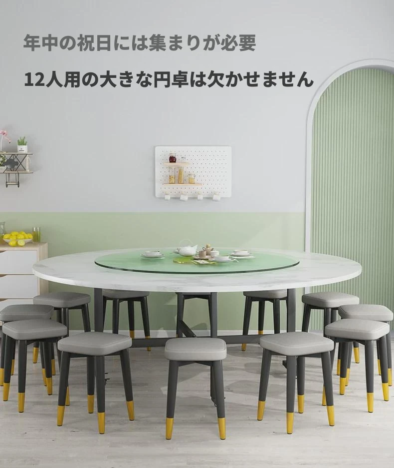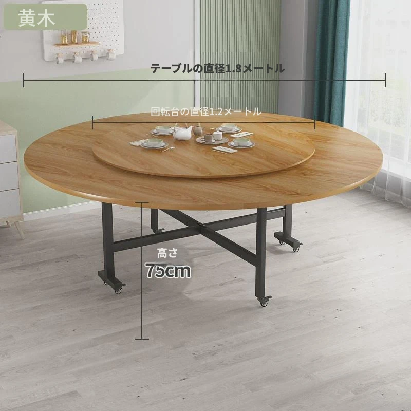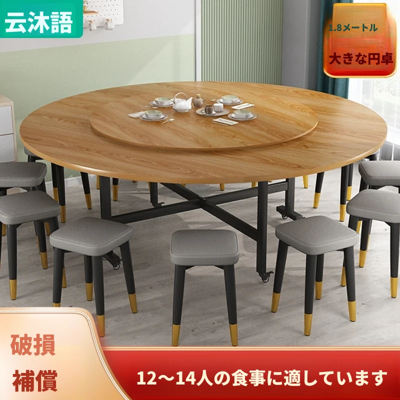 省スペース!折りたたみ式ラウンドダイニングテーブル - 回転式プレート付き、12人用の家庭用大テーブル。小さな部屋でも快適に使え、家族や友人との楽しい食事を演出します!