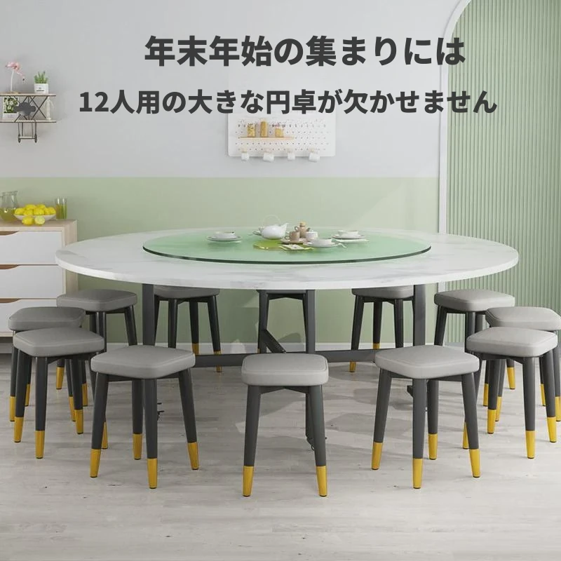 1.8メートル白大理石+1.2メートル強化ガラス回転台+12角スツール