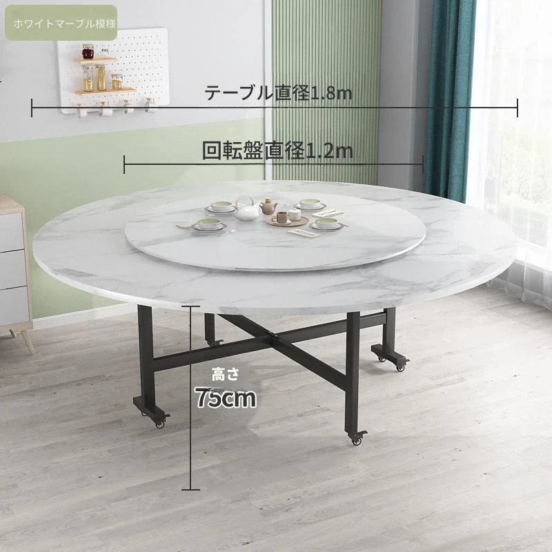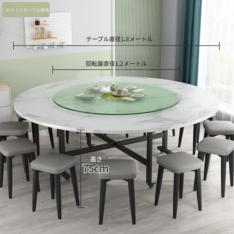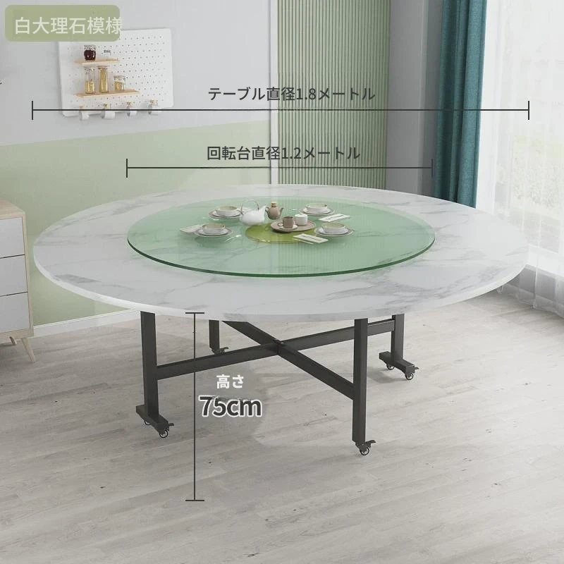 1.8メートル白大理石+1.2メートル強化ガラス回転台
