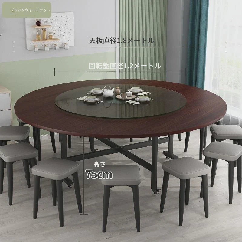 1.8メートル黒胡桃+1.2メートル強化ガラス回転台+12角スツール