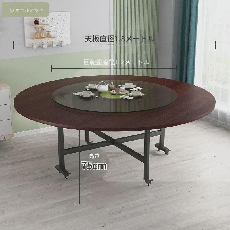 1.8メートル黒胡桃+1.2メートル強化ガラス回転台