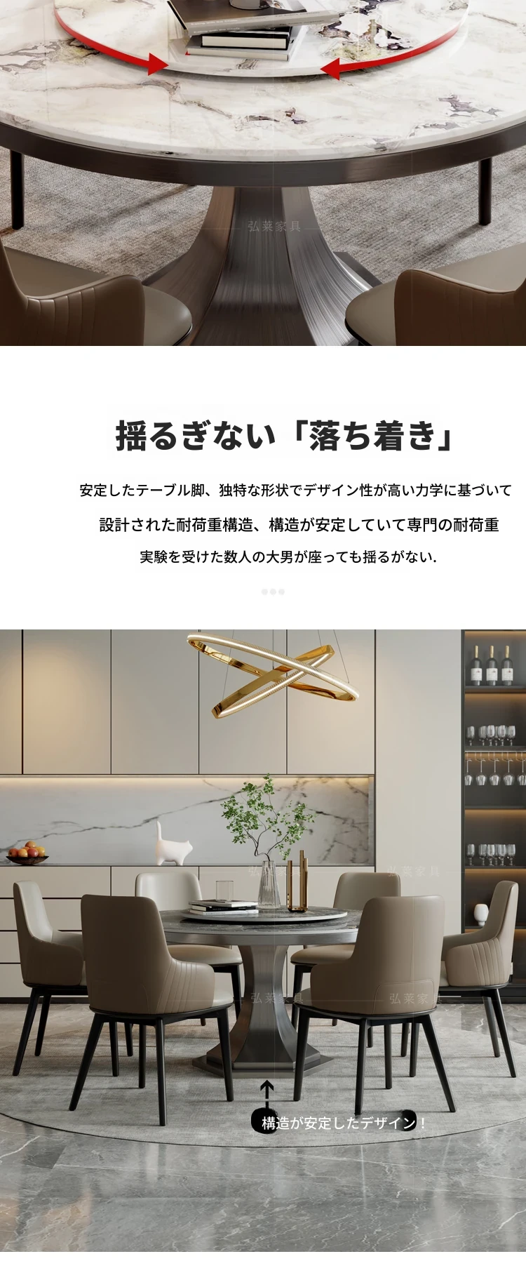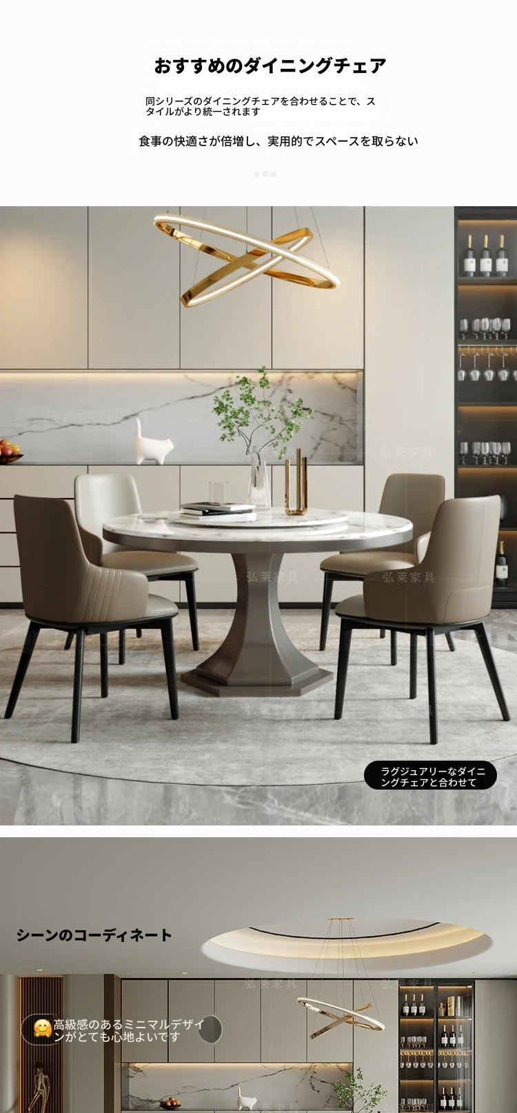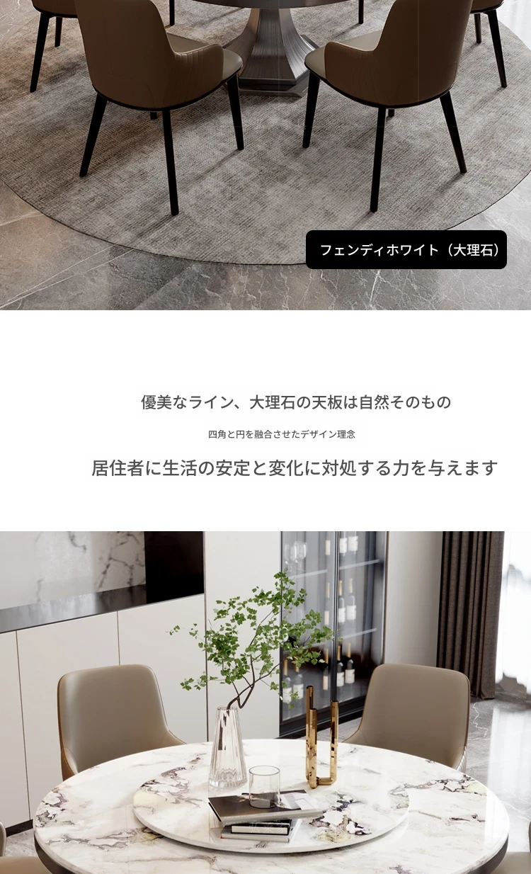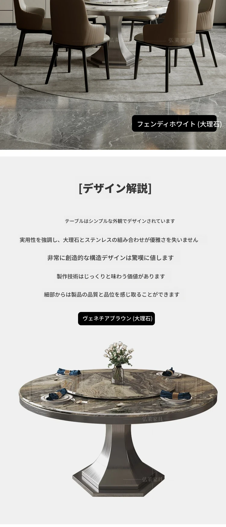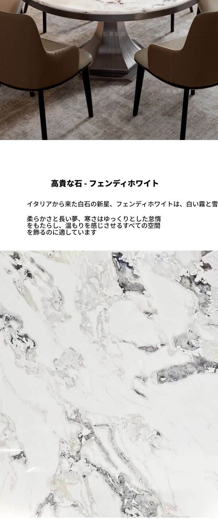 新型大理石製ラウンドダイニングテーブル - 高級イタリアンモダンデザイン、回転式プレート付き、輸入の贅沢なフィンディホワイト。おしゃれで実用的な食卓で、特別なひとときを演出します!