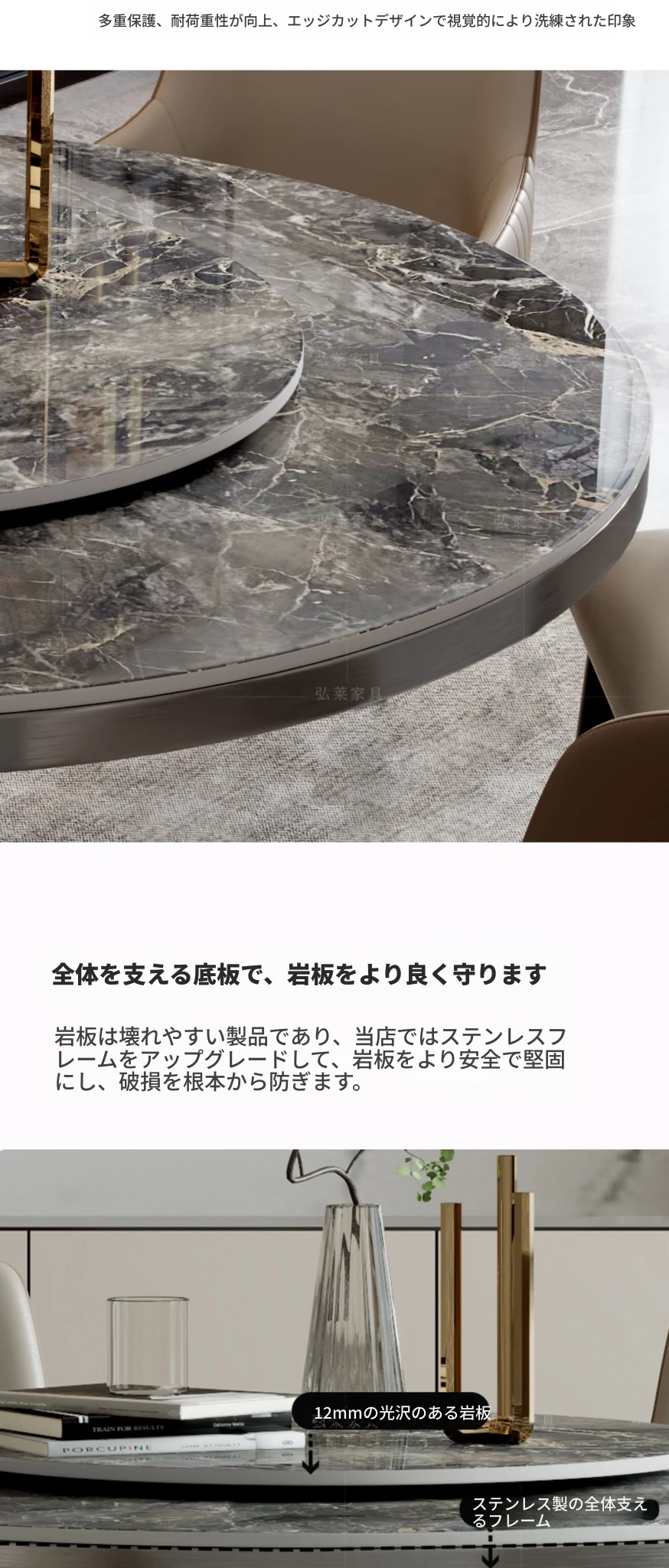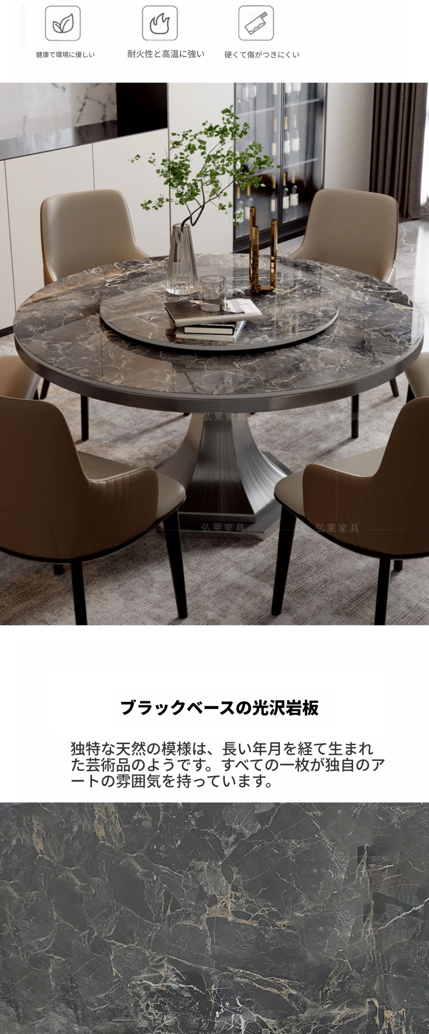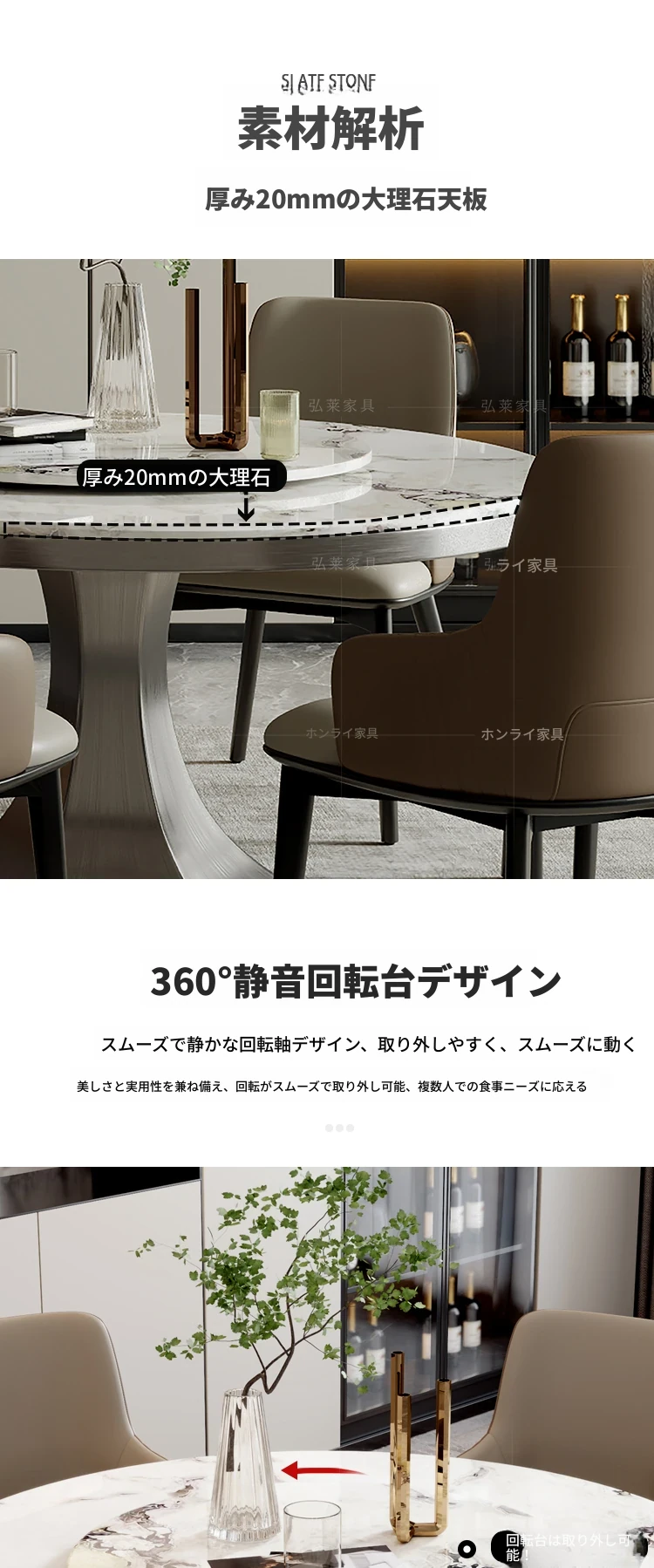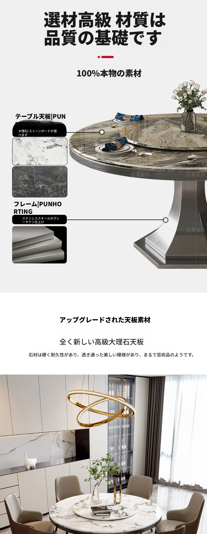 新型大理石製ラウンドダイニングテーブル - 高級イタリアンモダンデザイン、回転式プレート付き、輸入の贅沢なフィンディホワイト。おしゃれで実用的な食卓で、特別なひとときを演出します!