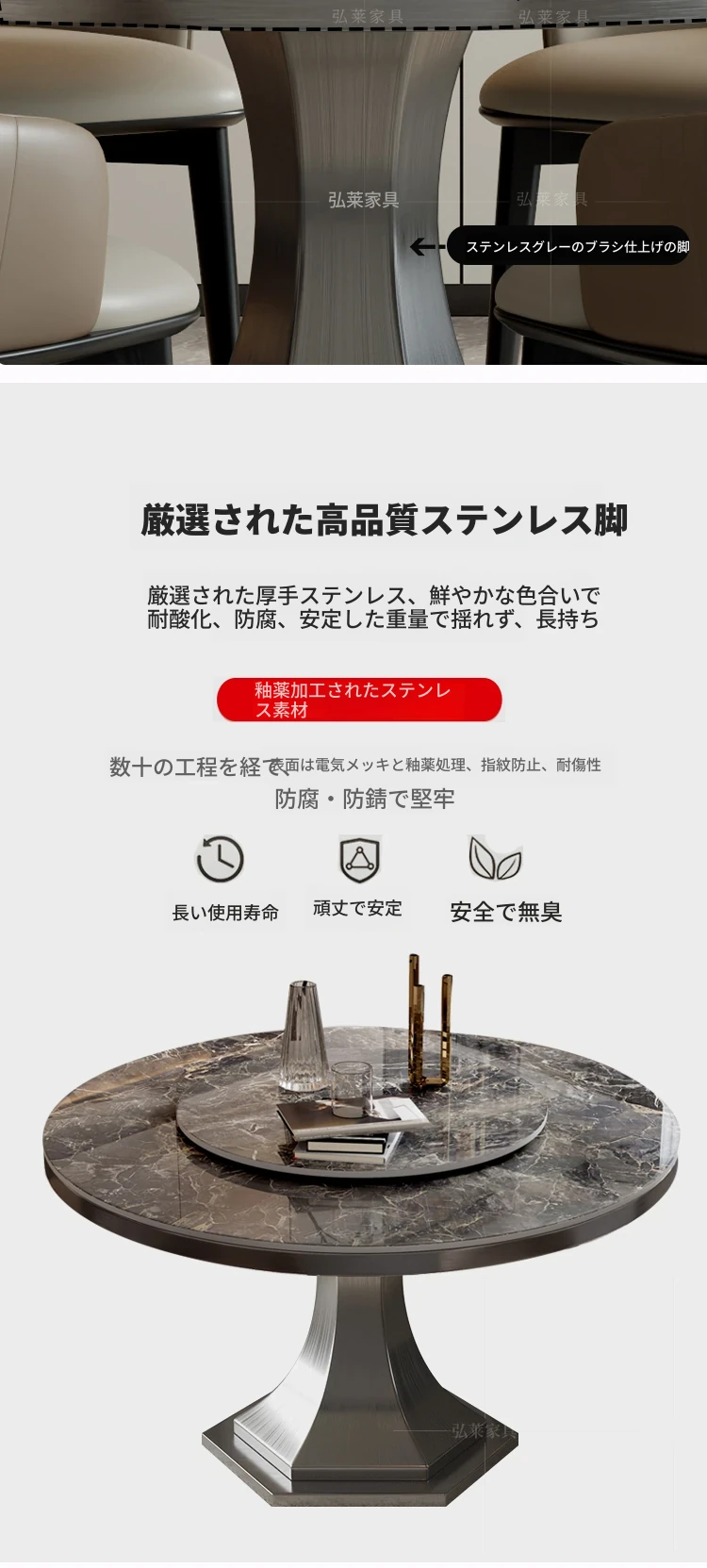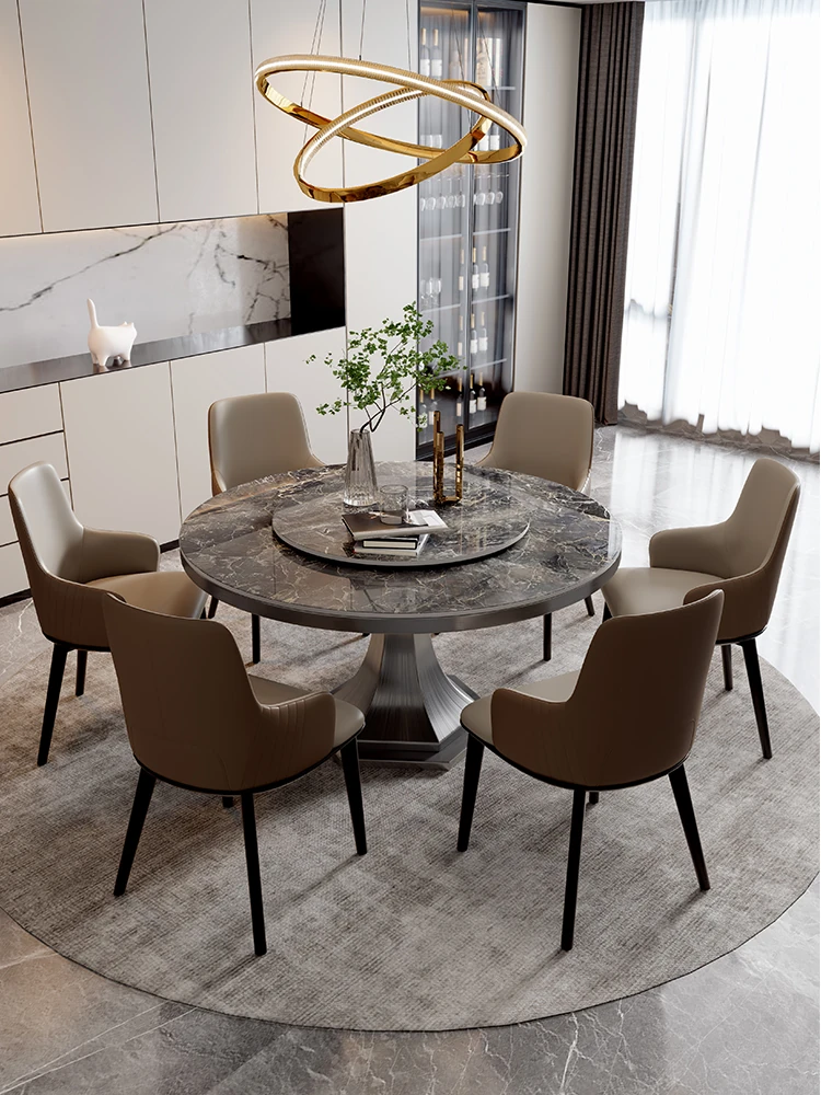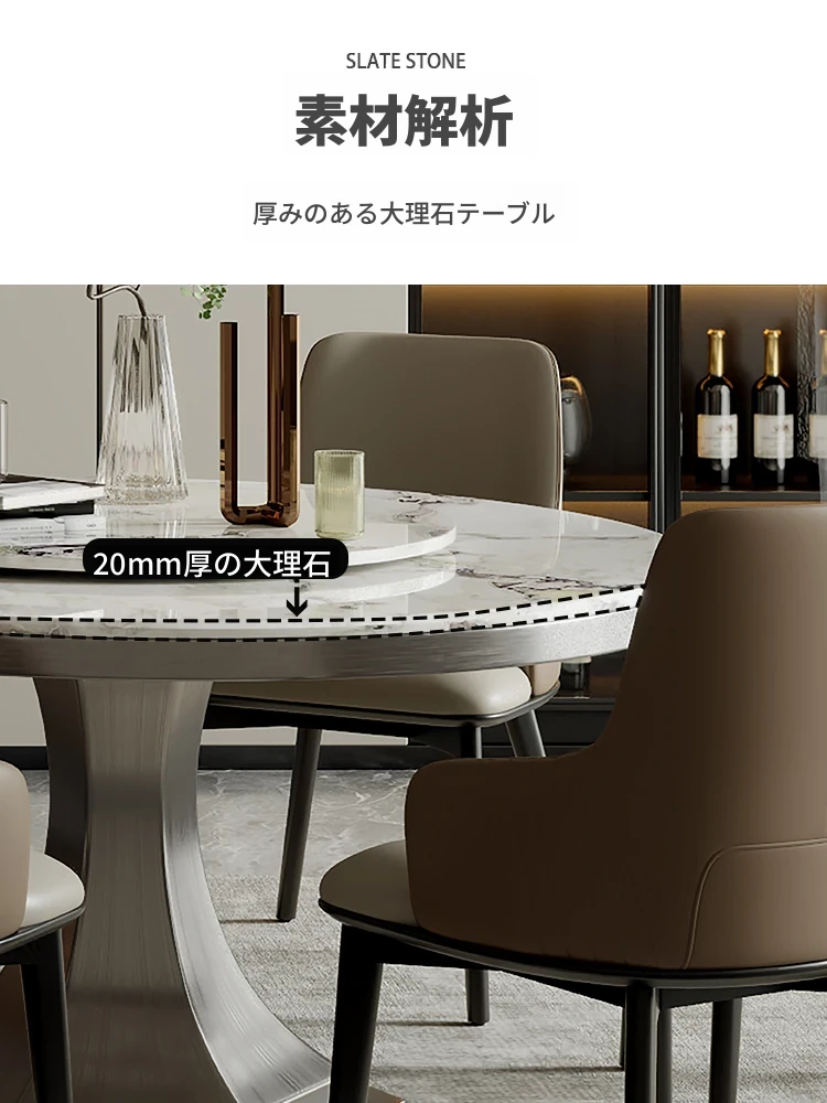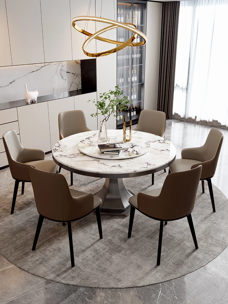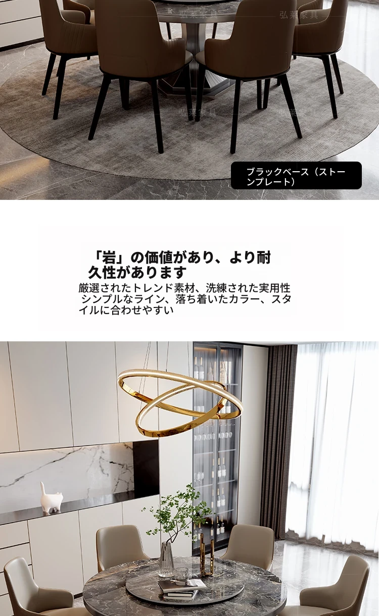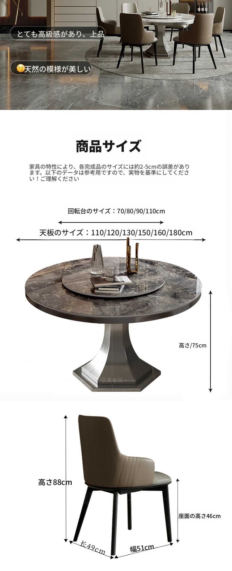 新型大理石製ラウンドダイニングテーブル - 高級イタリアンモダンデザイン、回転式プレート付き、輸入の贅沢なフィンディホワイト。おしゃれで実用的な食卓で、特別なひとときを演出します!