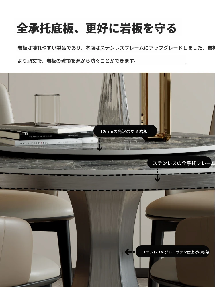 1.5メートルのダイニングテーブル+8チェア(岩板)