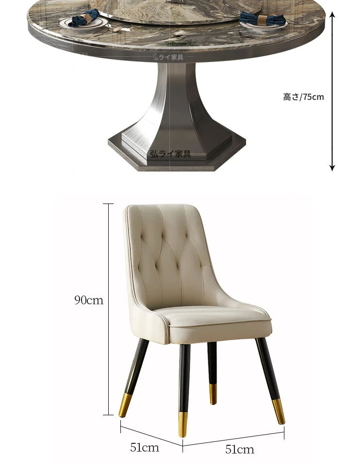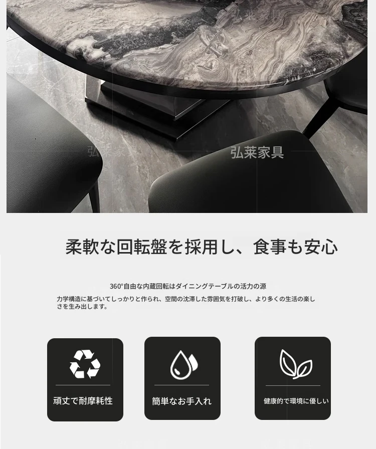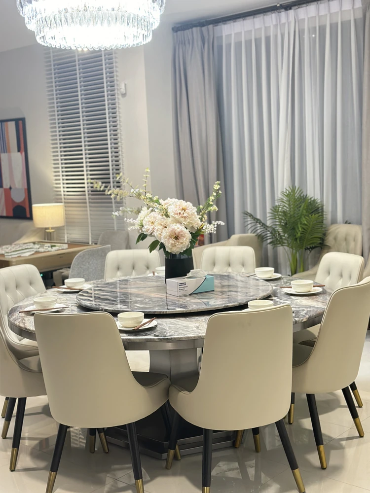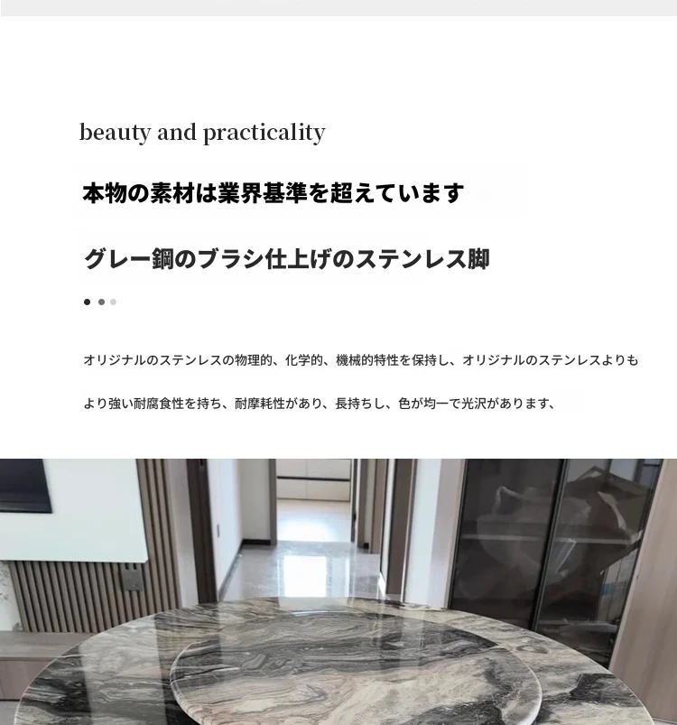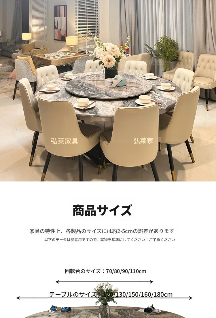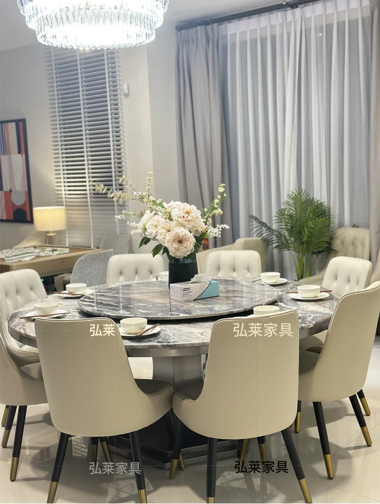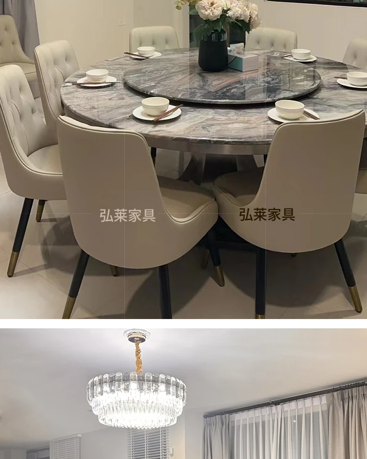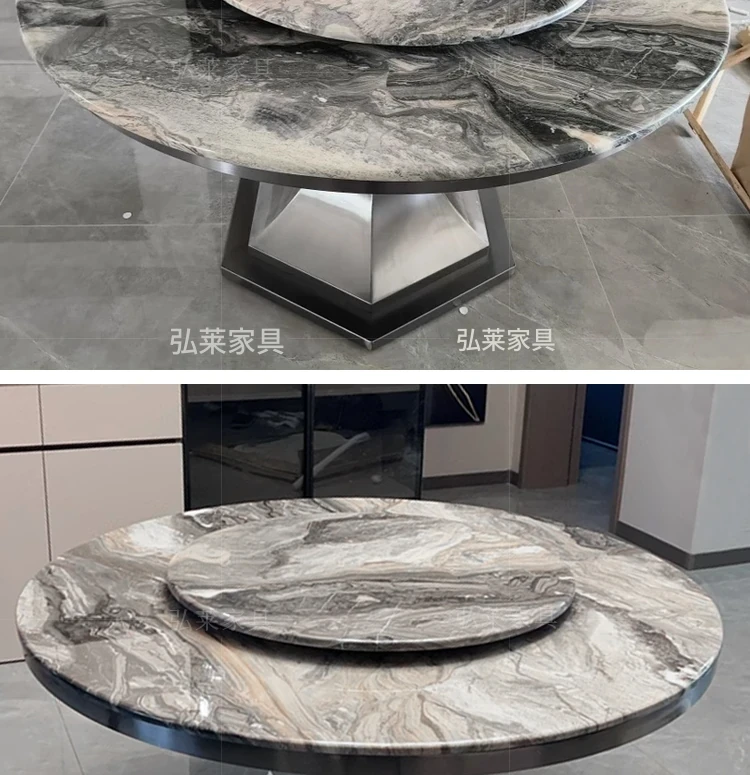 高級イタリアンデザインの大理石円形ダイニングテーブル - 回転式プレート付き、輸入天然石の優雅さを追求したモダンシンプルスタイル、ベネチアンブラウンの美しいラウンドテーブルで特別な食事を演出!