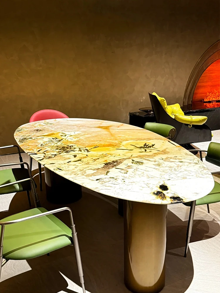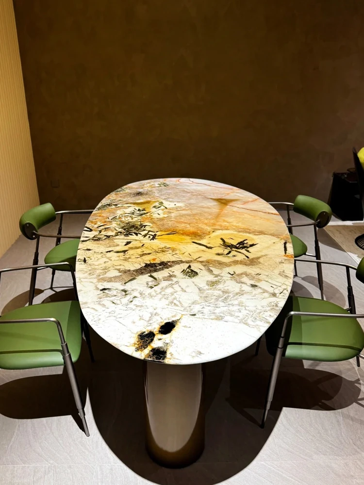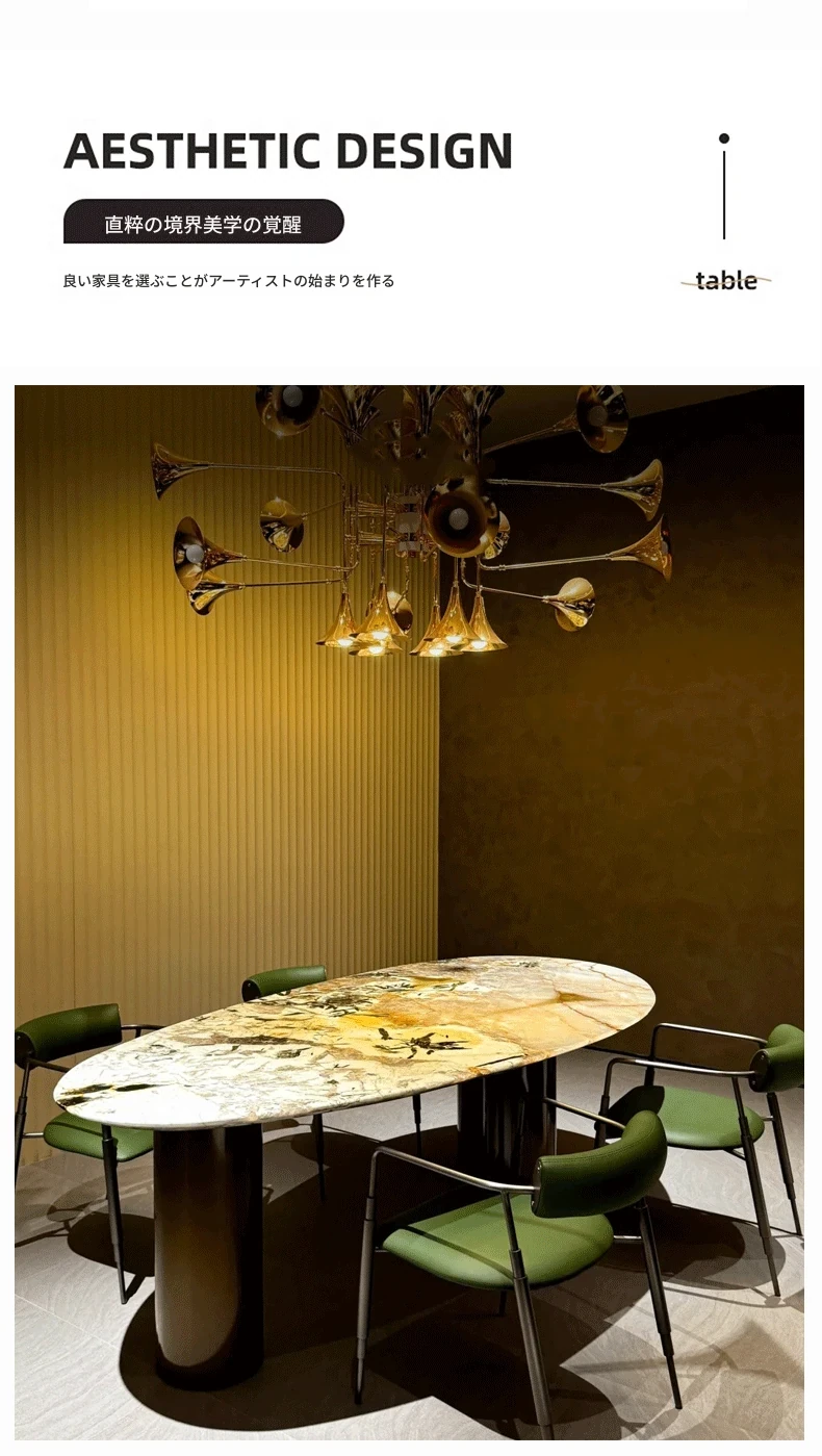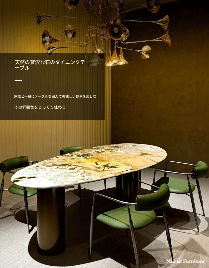 輸入天然大理石パンドラ豪華テーブル|イタリアン・ライトラグジュアリー|別荘・家庭用デザイナー水滴型ダイニングテーブルで、洗練された空間を演出!