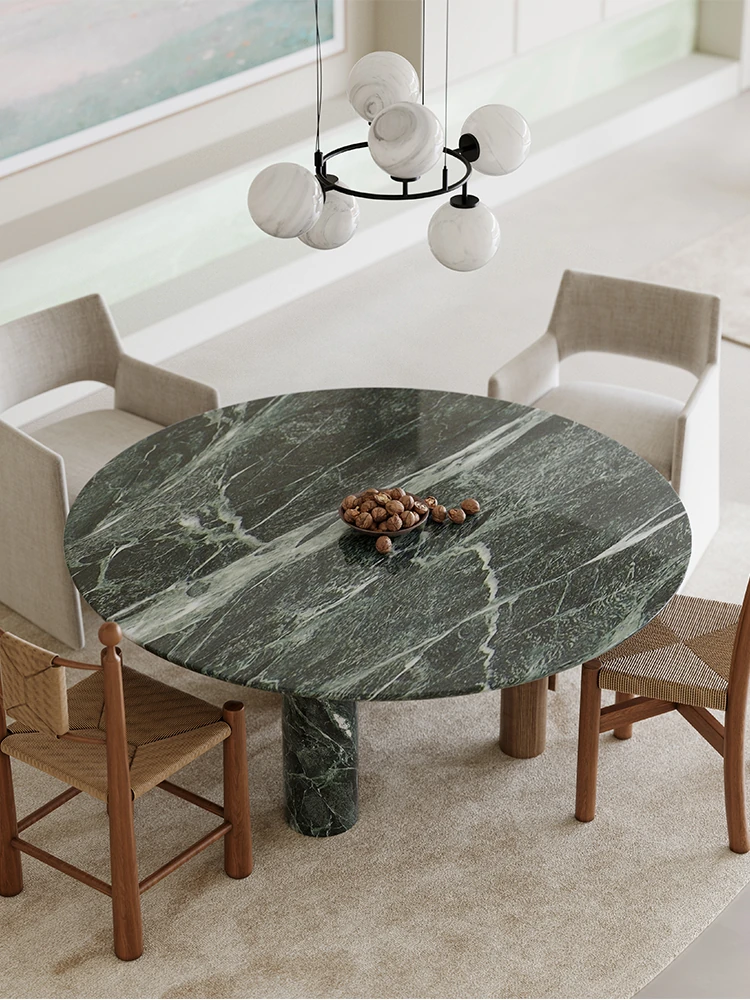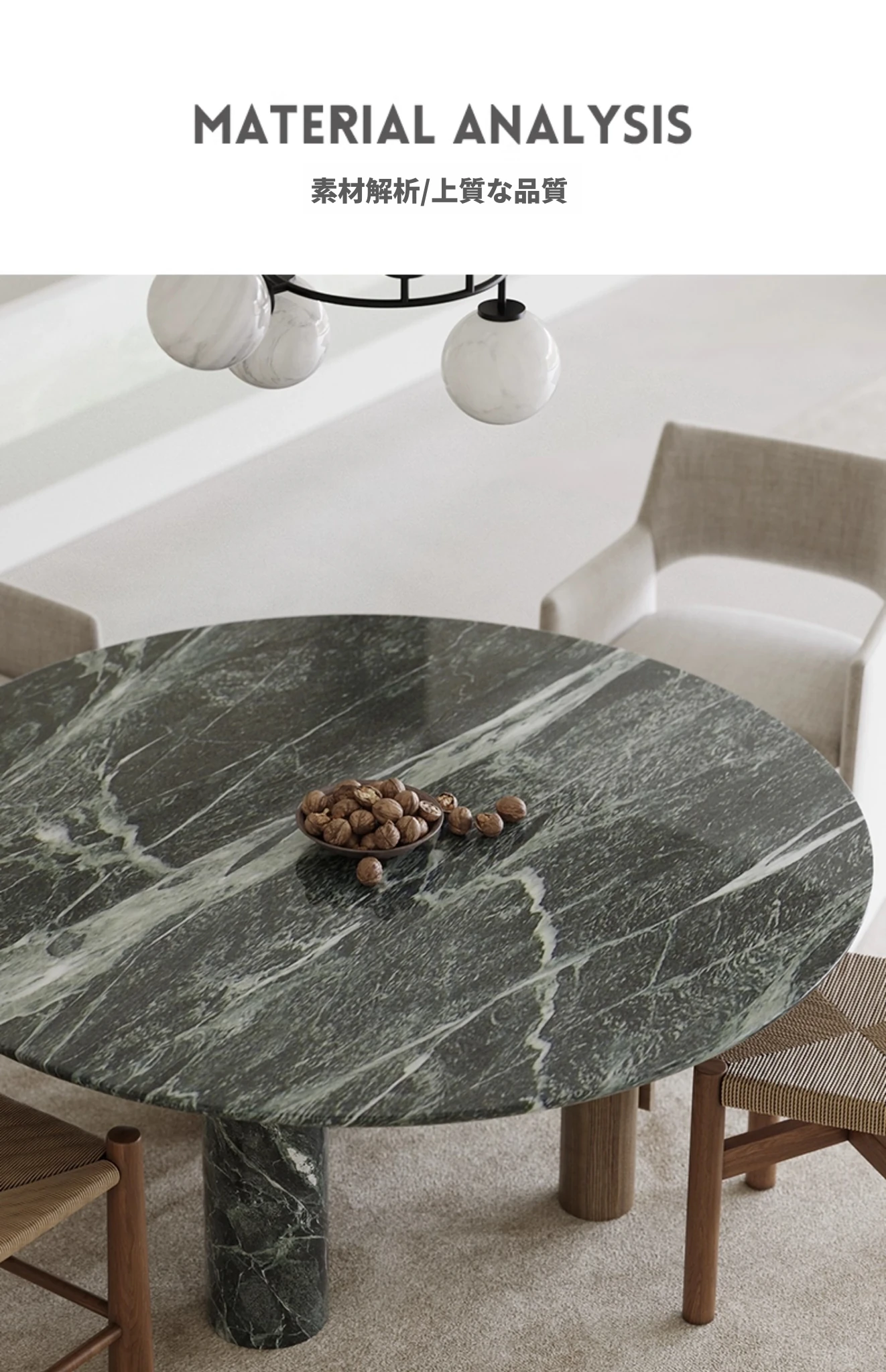 150cm 丸テーブル/回転盤なし/100% 天然ラグジュアリーストーン【プラダグリーン】