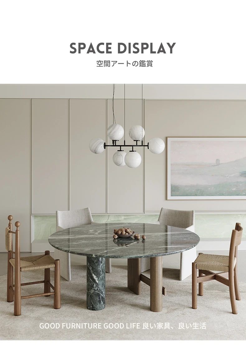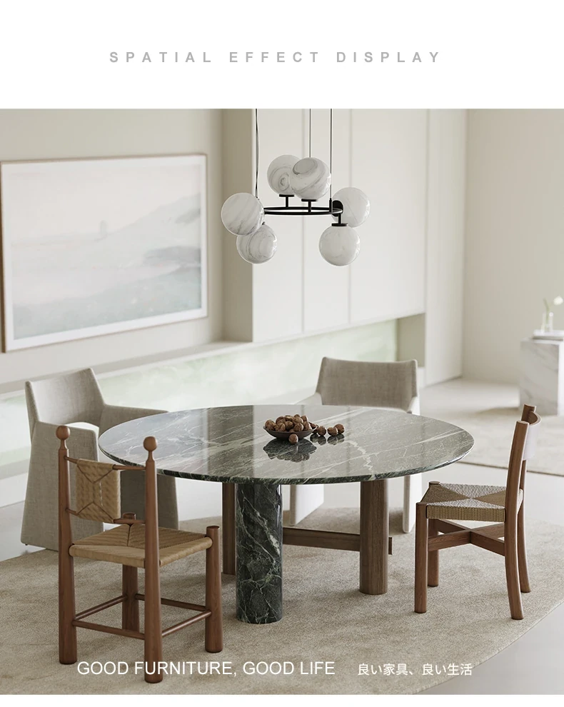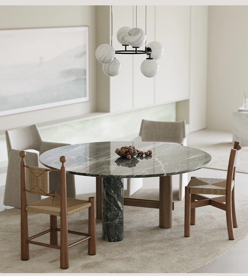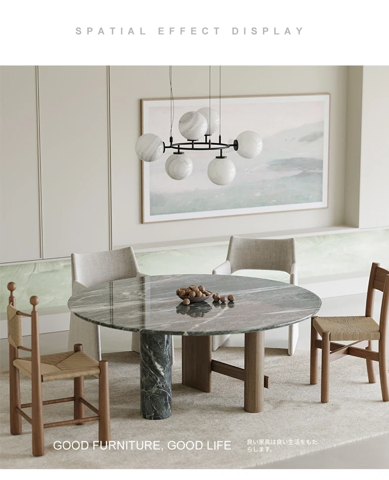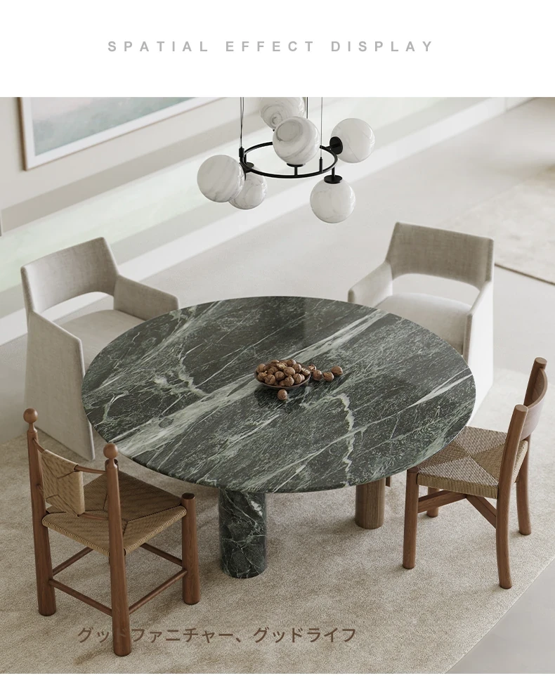 輸入品・ピュアナチュラルラグジュアリー石製円形ダイニングテーブル|フレンチクリーム風の現代的でシンプルな軽奢スタイル|高級感溢れる無垢材ダイニングテーブル&チェアセット