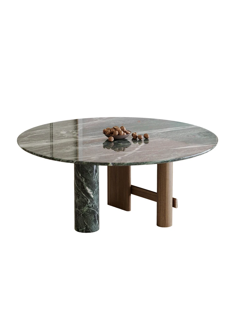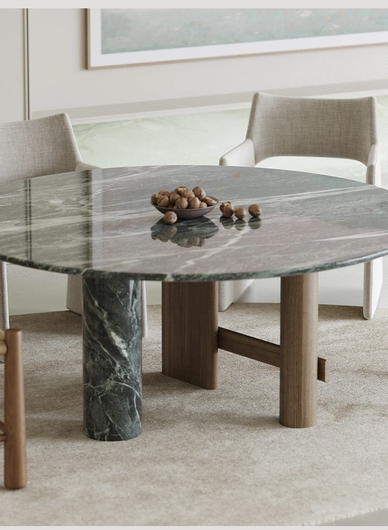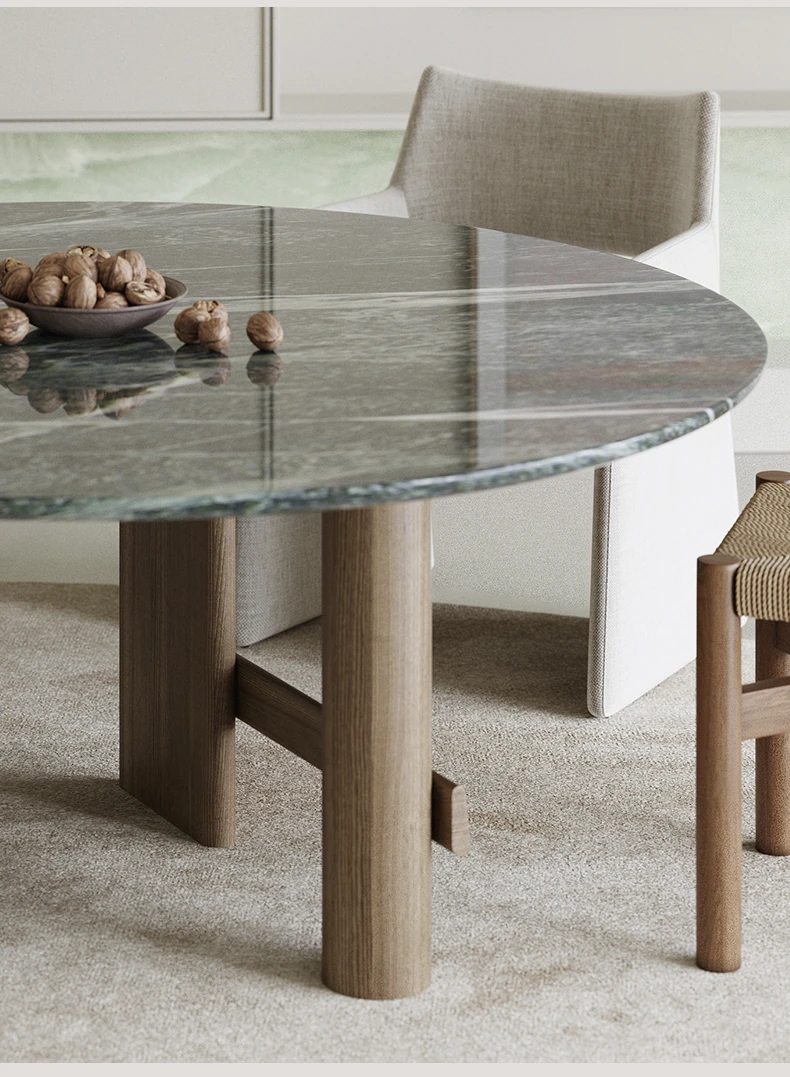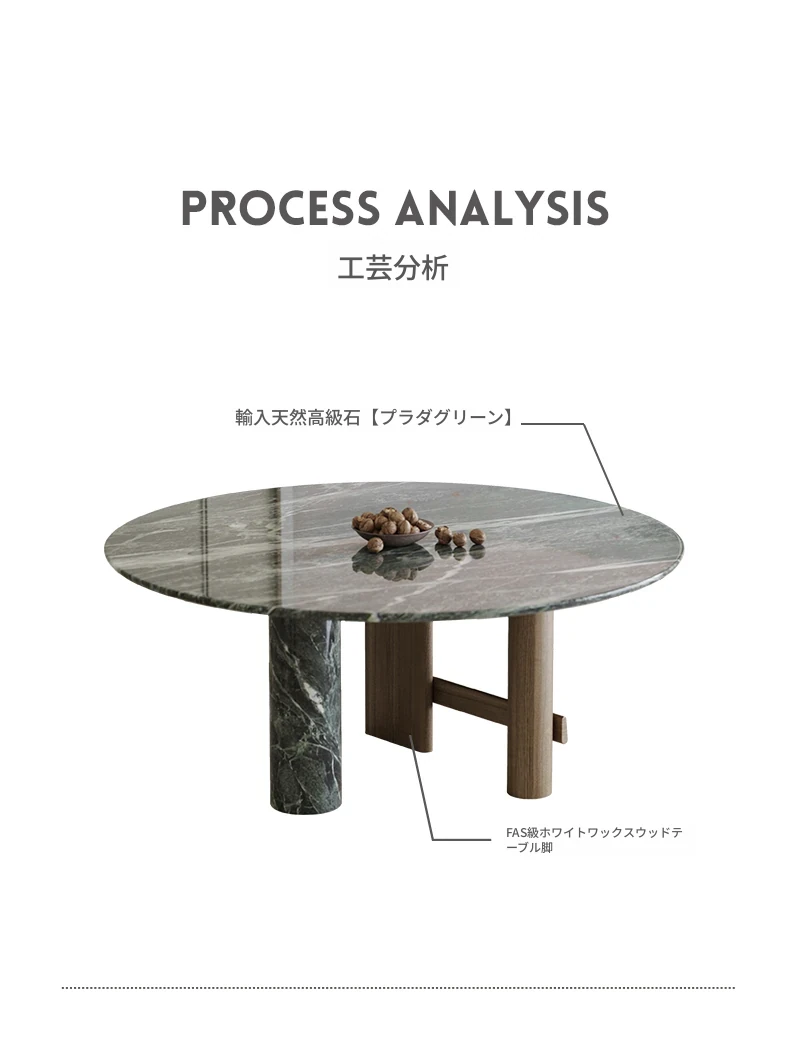 輸入品・ピュアナチュラルラグジュアリー石製円形ダイニングテーブル|フレンチクリーム風の現代的でシンプルな軽奢スタイル|高級感溢れる無垢材ダイニングテーブル&チェアセット