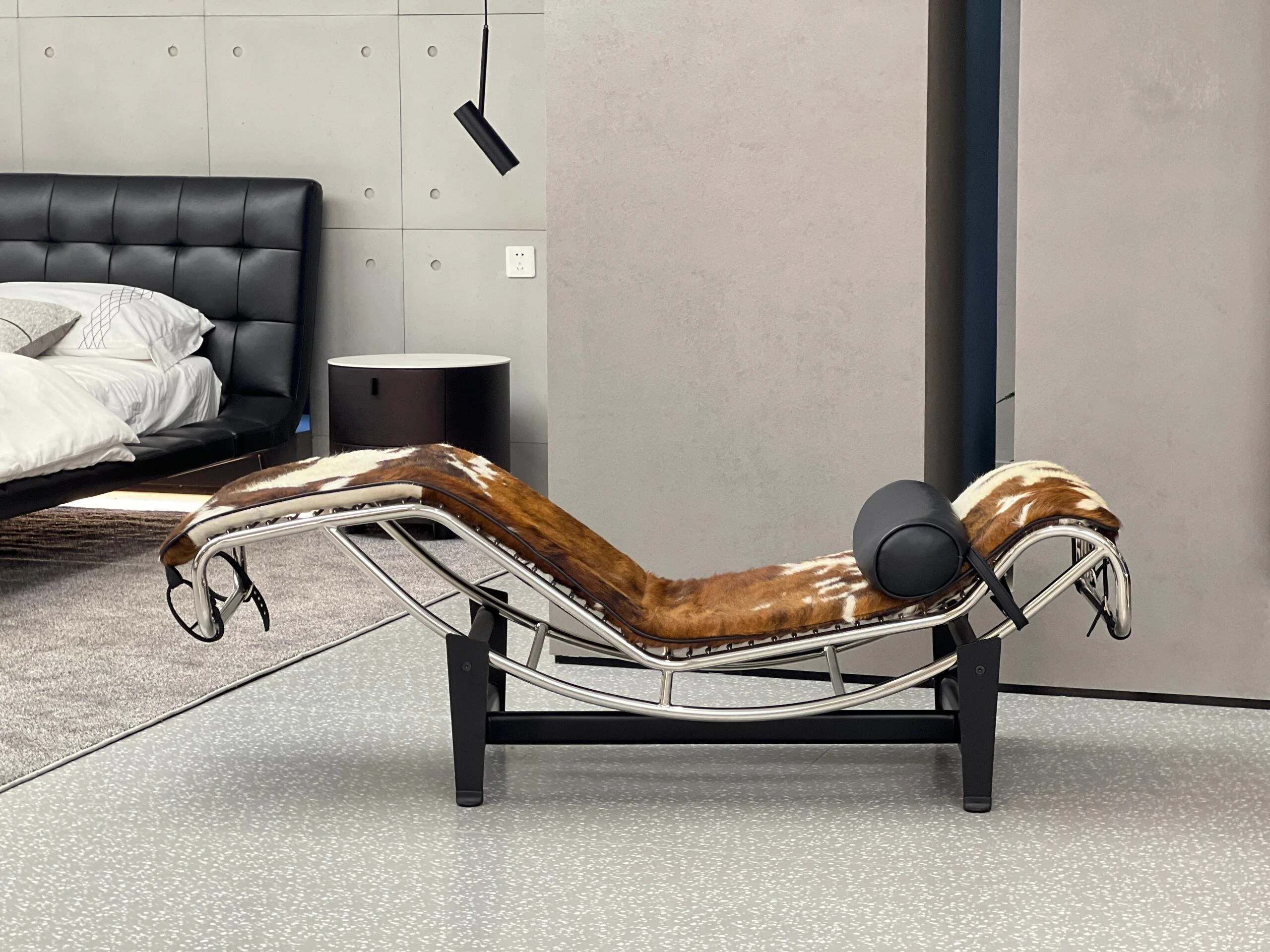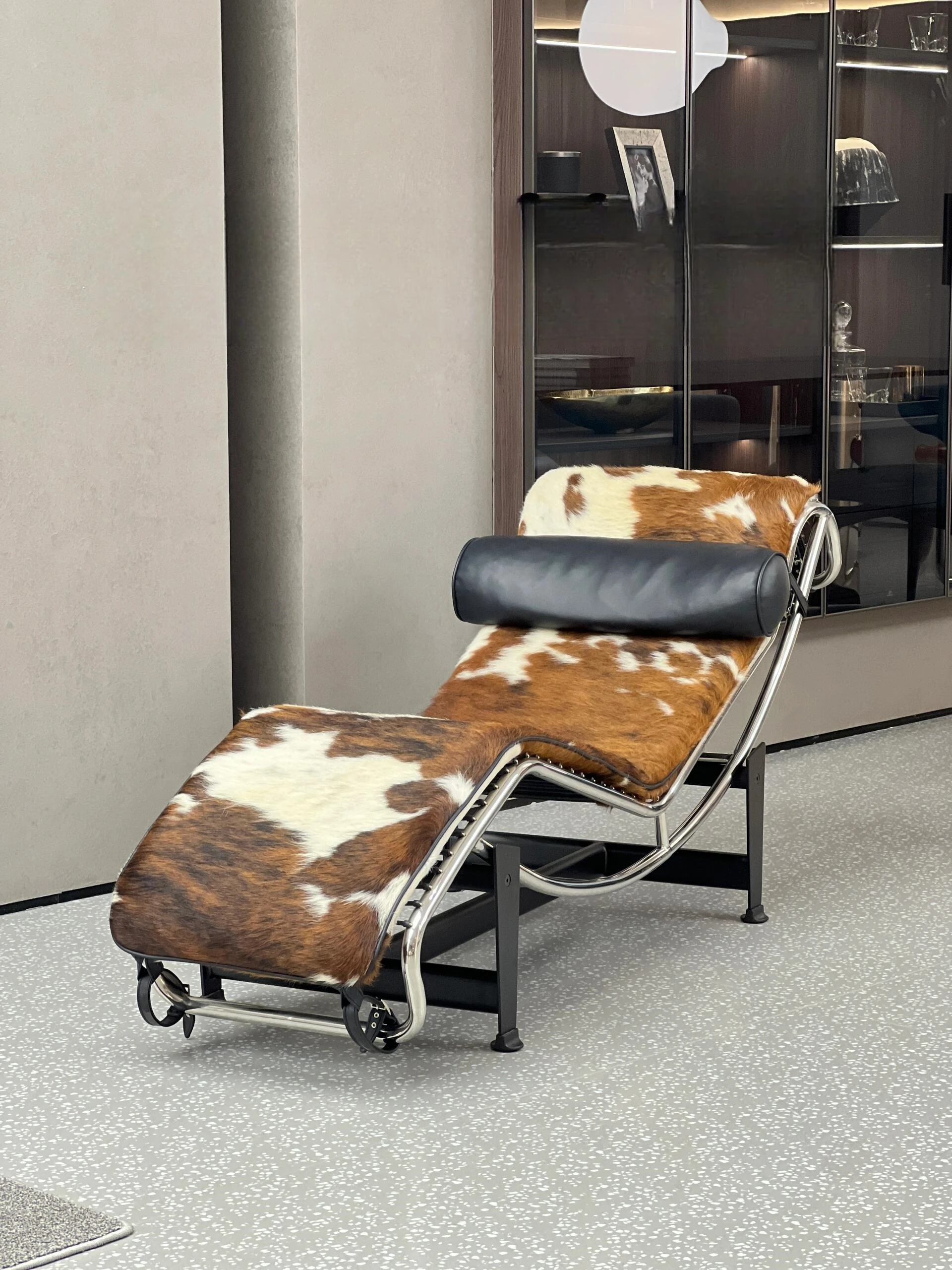 イタリアンラグジュアリー中古風デザイナーチェア!毛牛皮使用の高級リクライニングチェア、別荘や豪邸にぴったりのLC4スタイル。優雅なデザインでリラックスしたひと時をお楽しみください。
