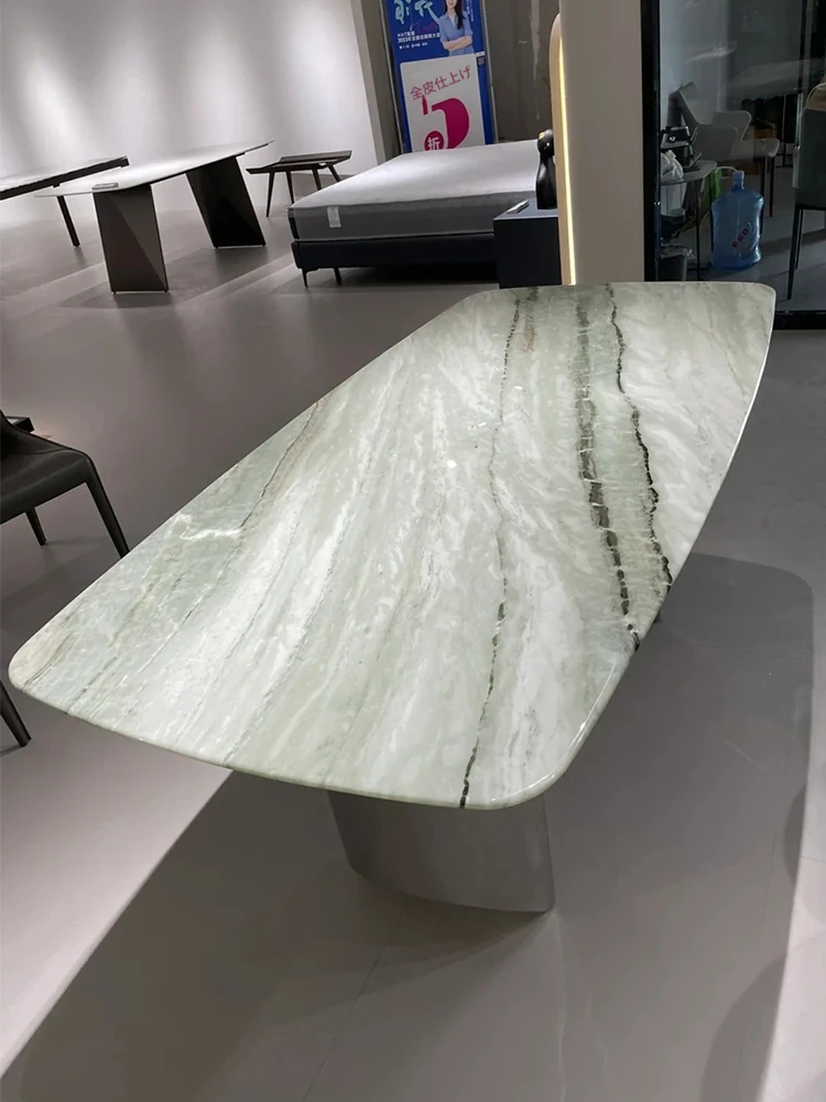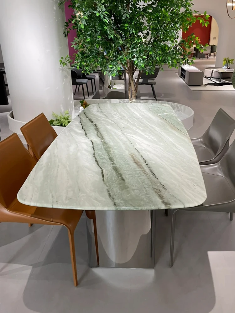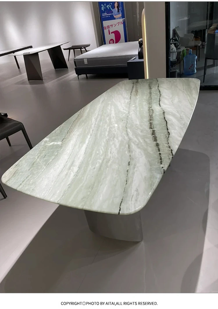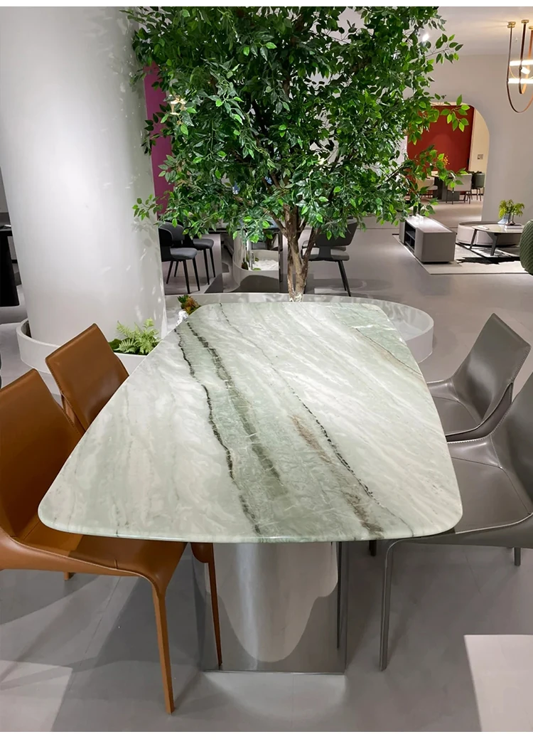イタリア輸入の天然グリーン大理石ダイニングテーブル - フォーシャンのグリーンワンダー、2メートルの高級ラグジュアリーテーブルで、特別な食事体験を演出します。