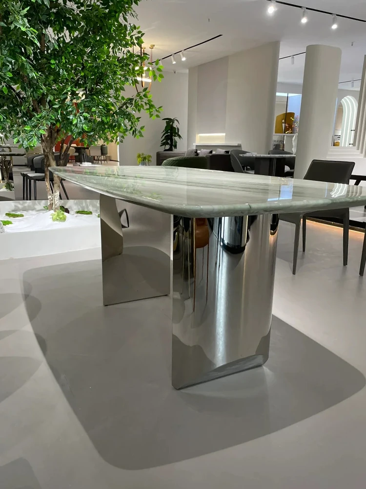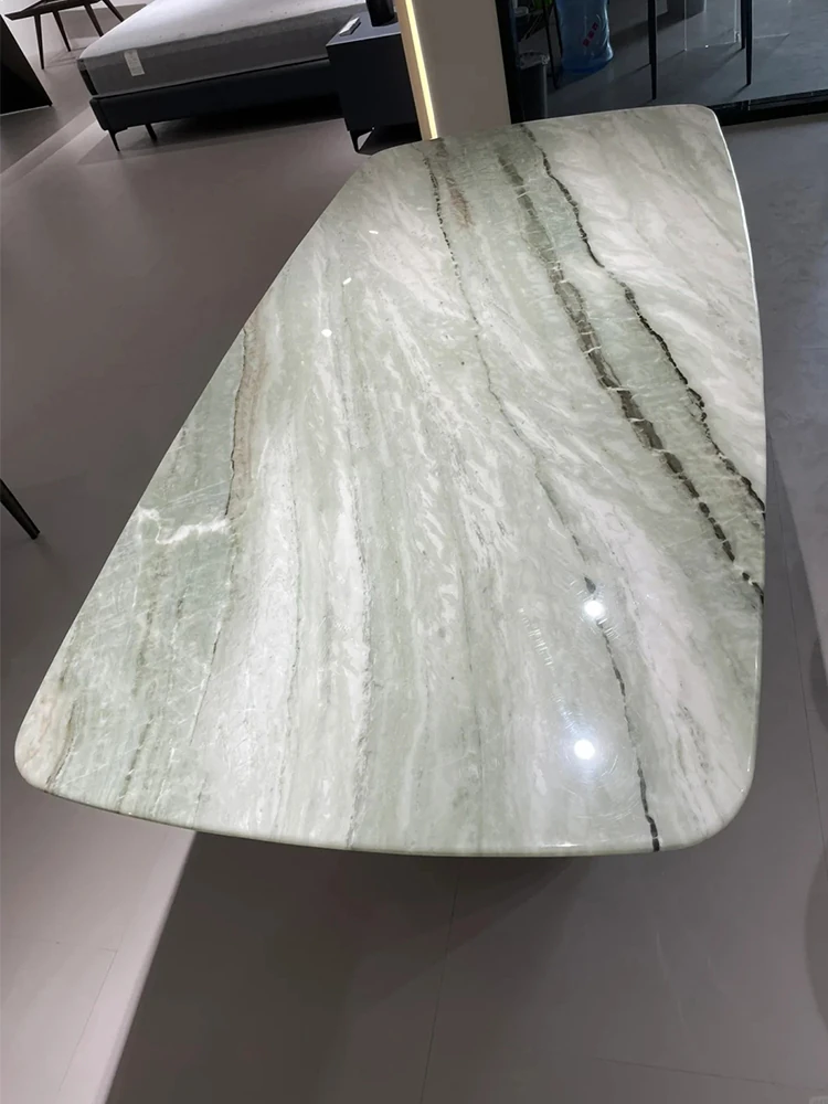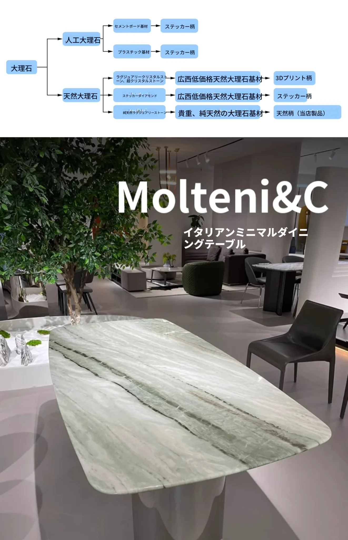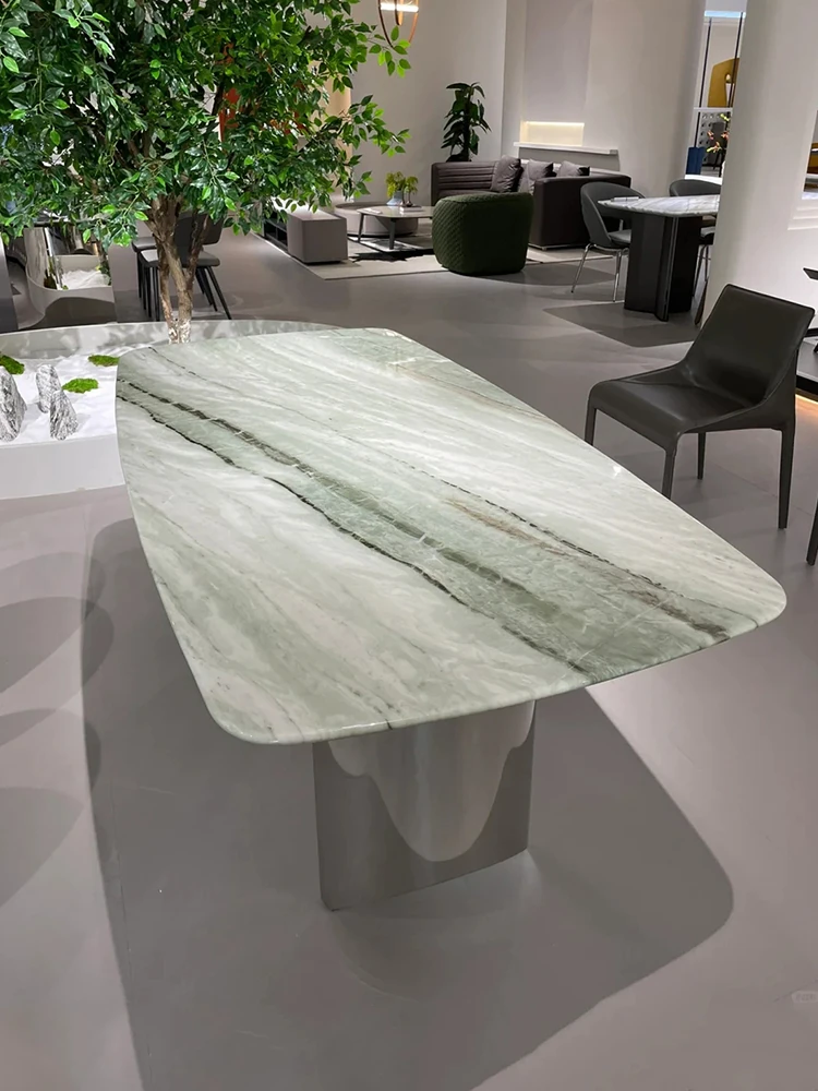 イタリア輸入の天然グリーン大理石ダイニングテーブル - フォーシャンのグリーンワンダー、2メートルの高級ラグジュアリーテーブルで、特別な食事体験を演出します。