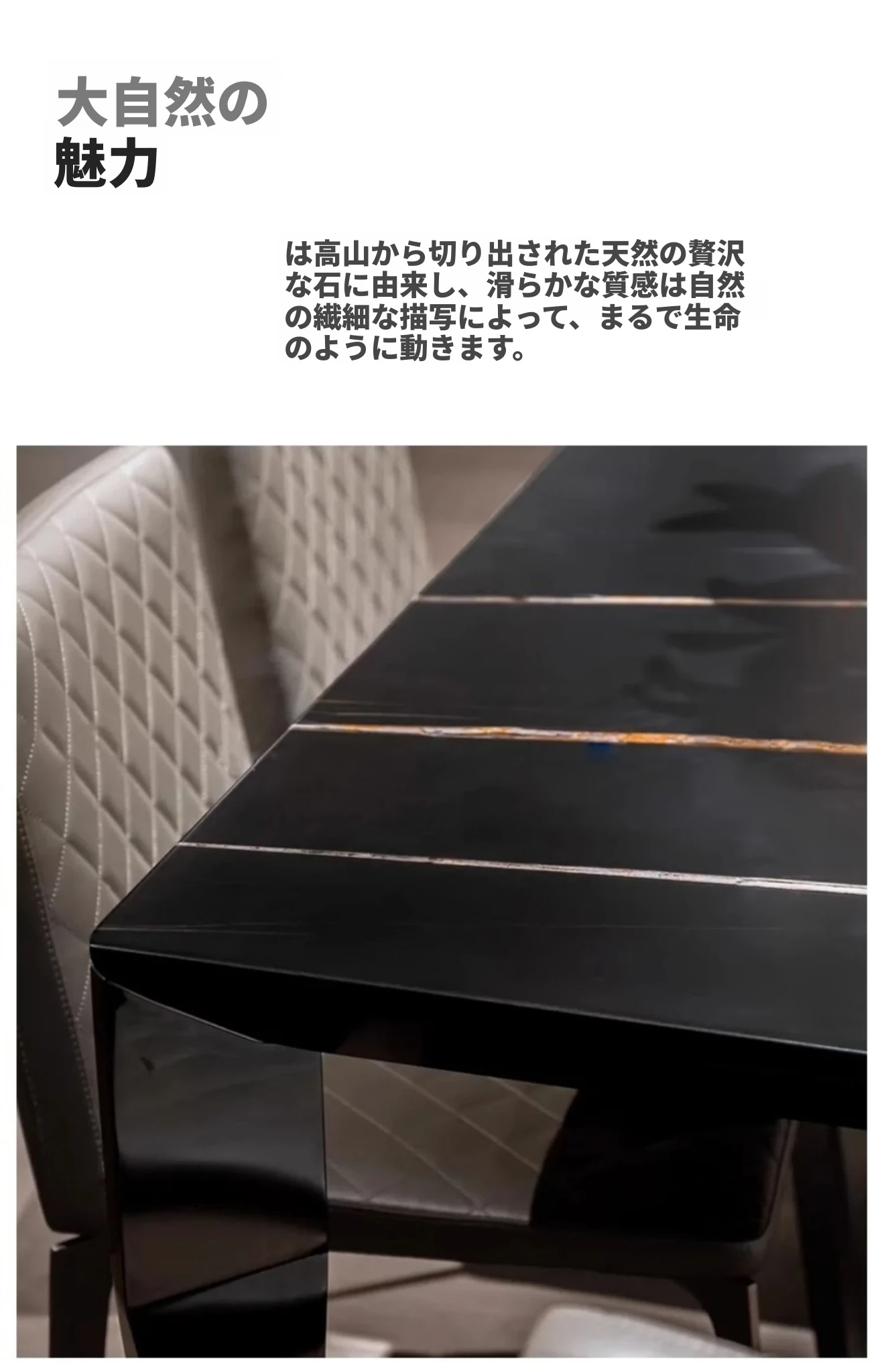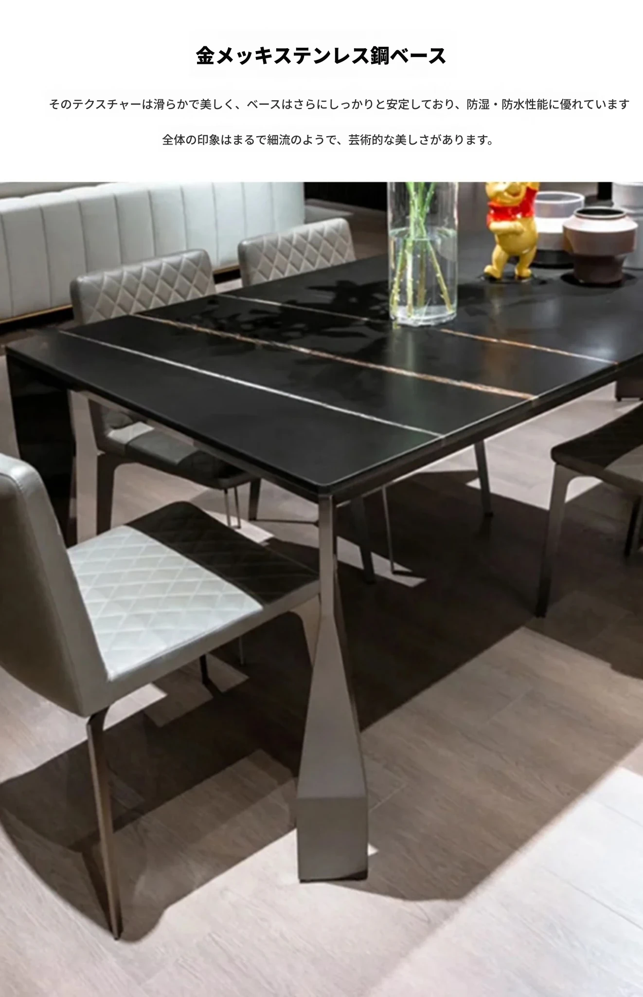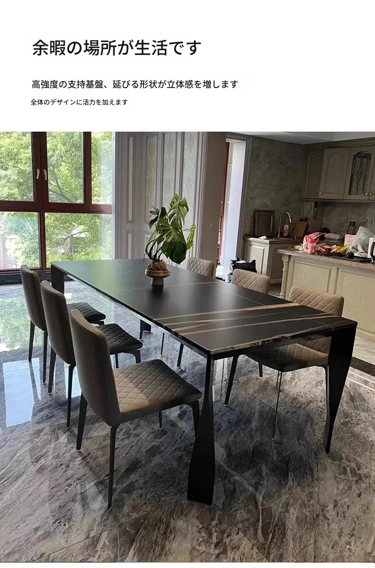 イタリア直輸入 ローレンブラックゴールド 高級天然大理石 長方形ダイニングテーブル フォーサン産 真のラグジュアリーな石のテーブル