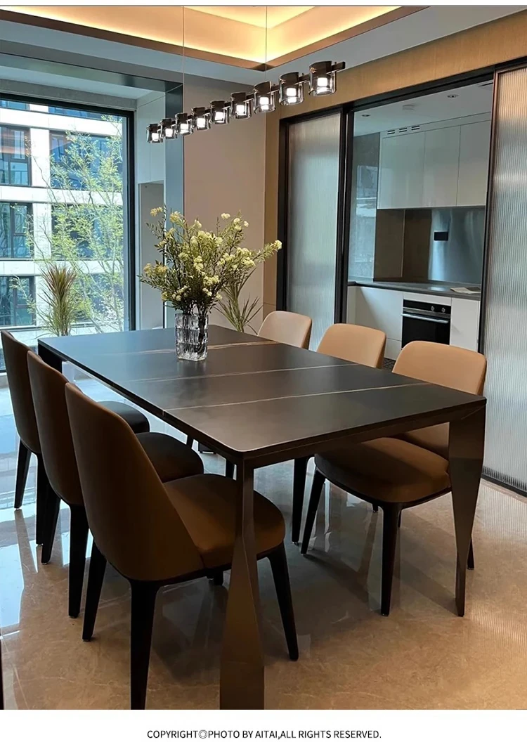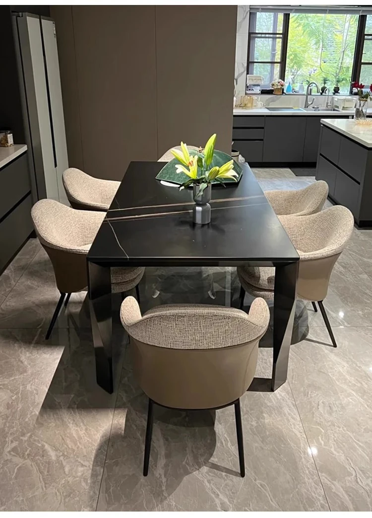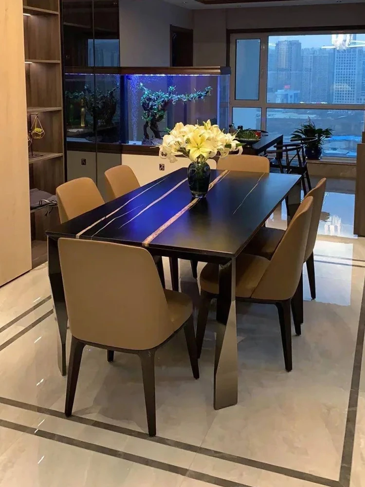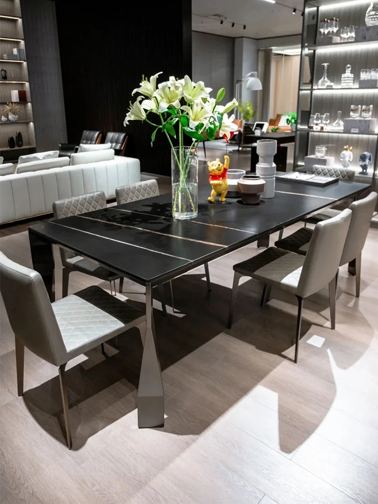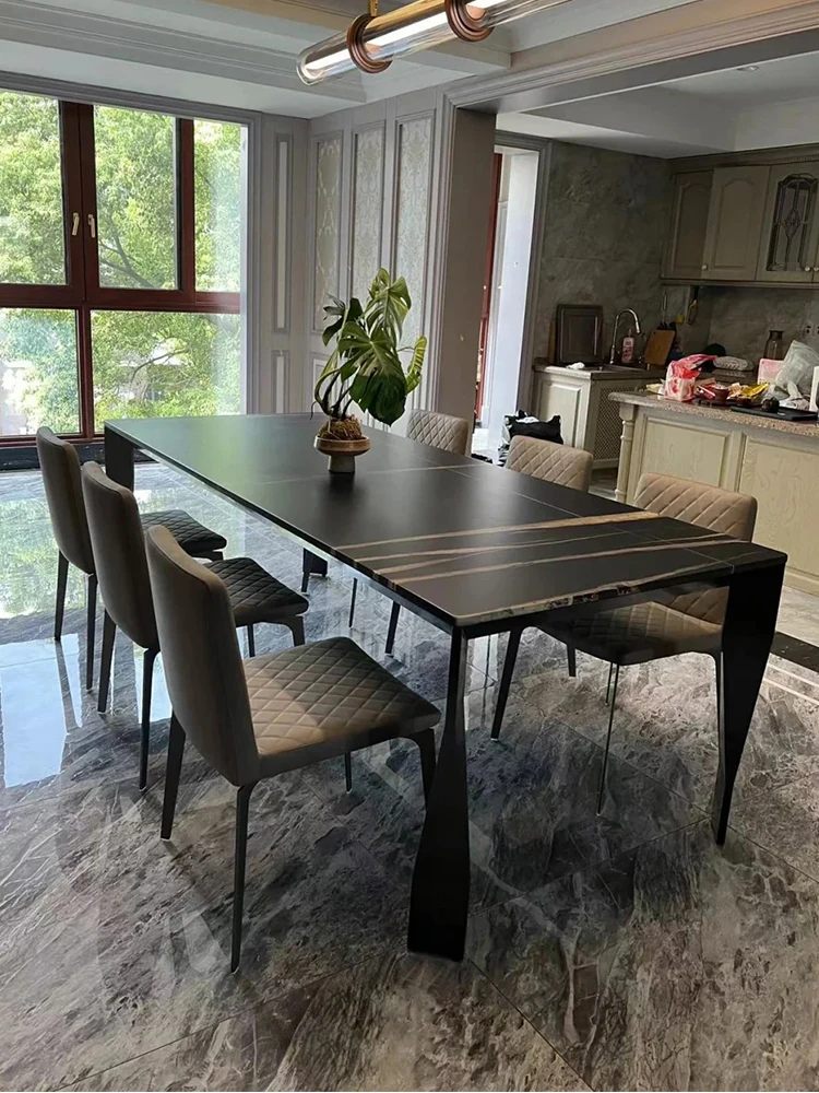 イタリア直輸入 ローレンブラックゴールド 高級天然大理石 長方形ダイニングテーブル フォーサン産 真のラグジュアリーな石のテーブル