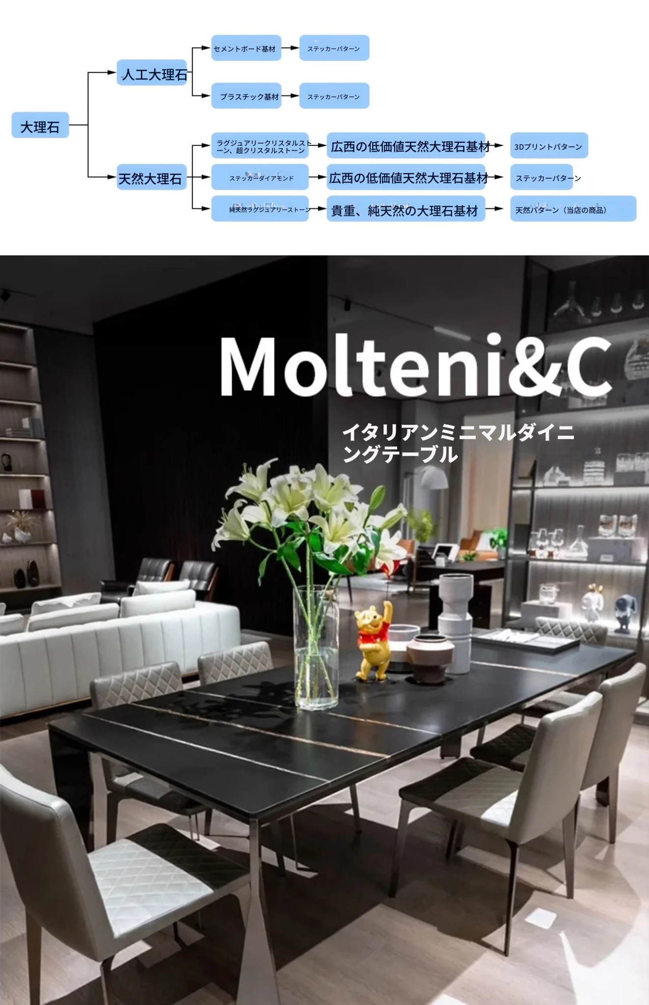 2200*1000 天然大理石ダイニングテーブル(厚手)