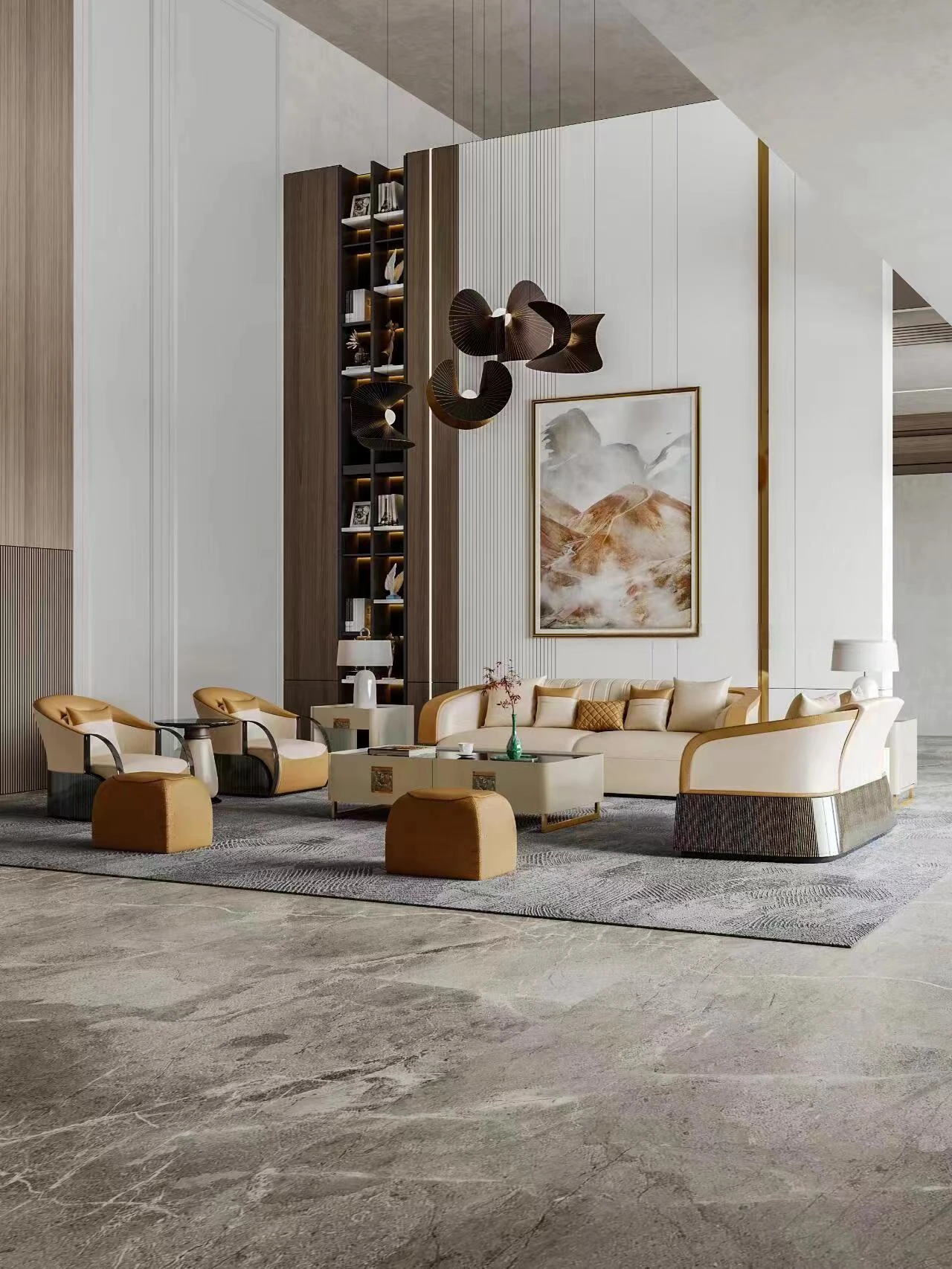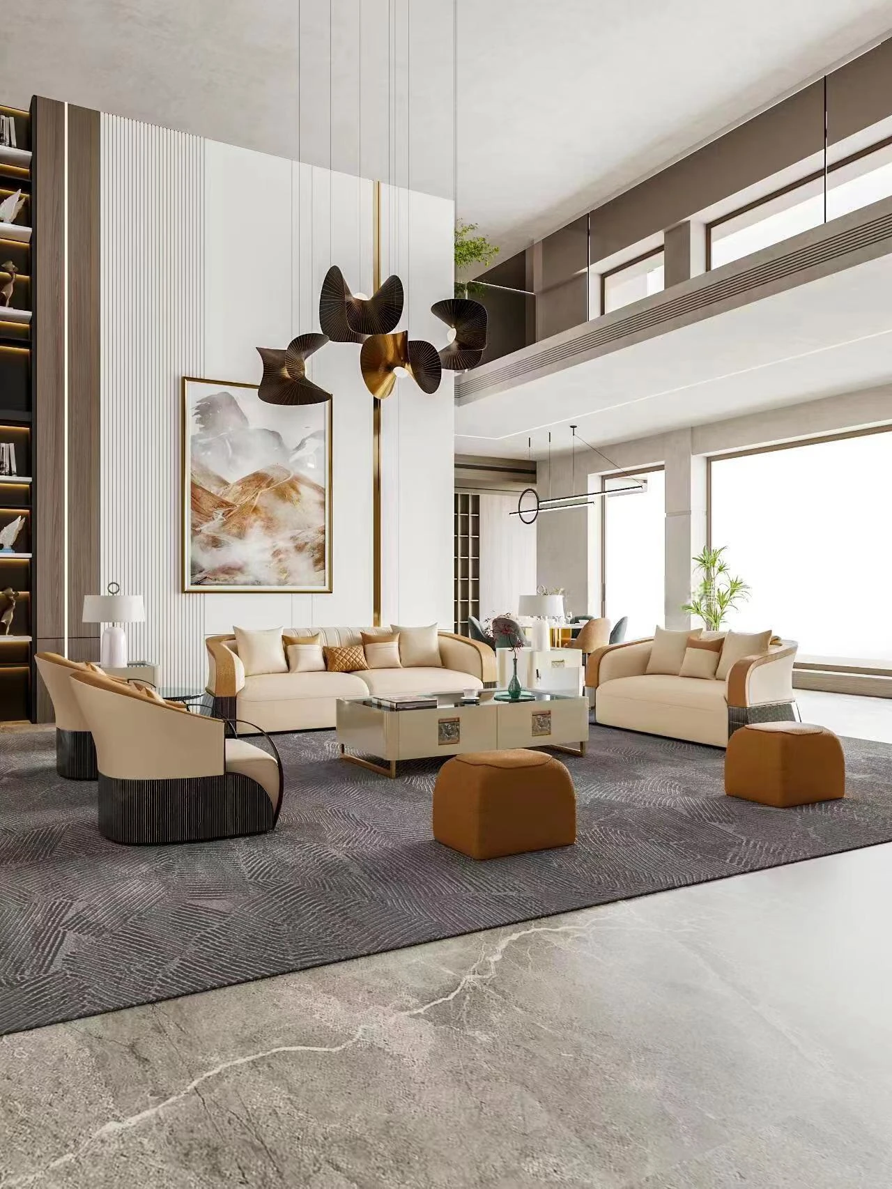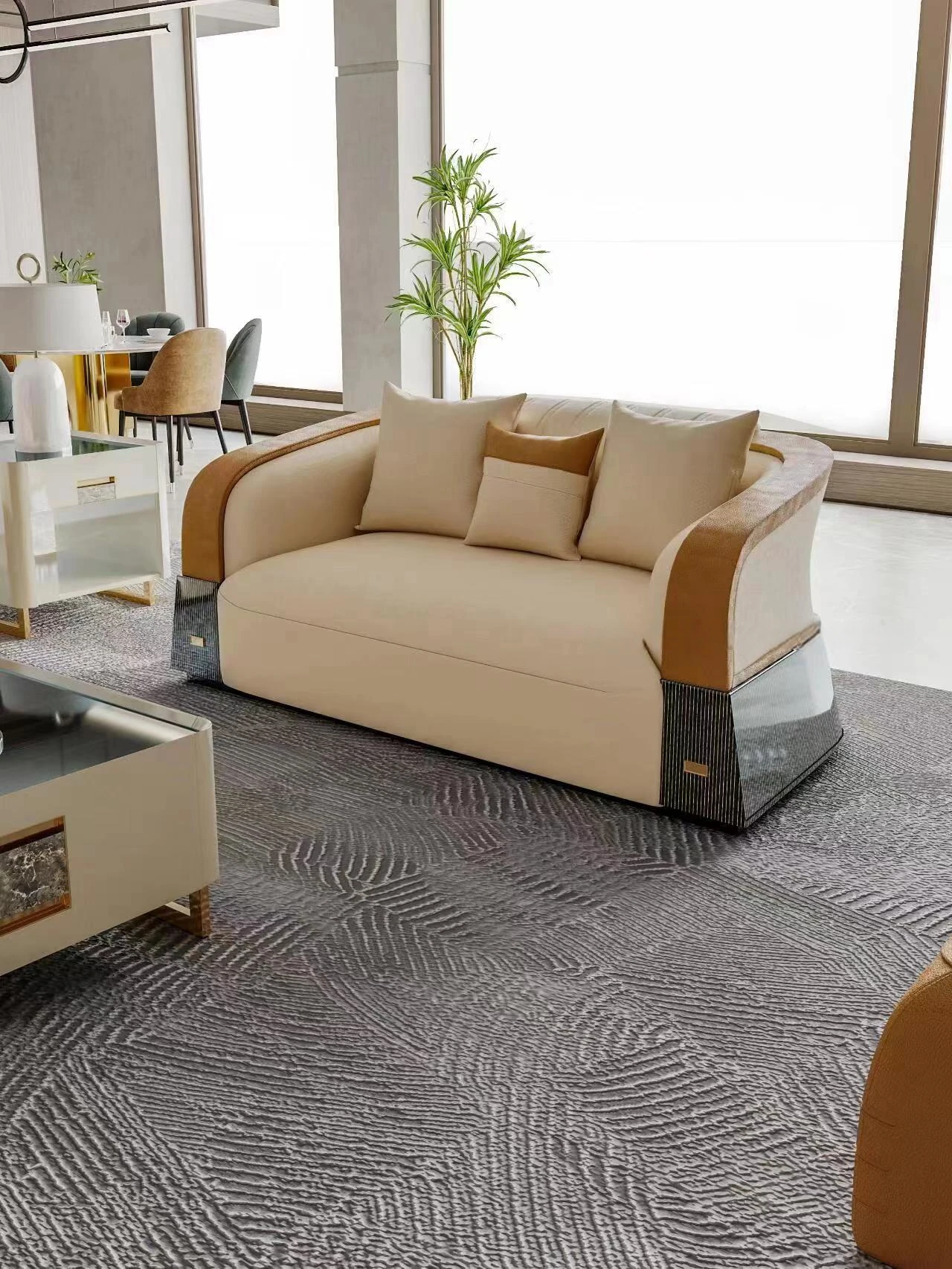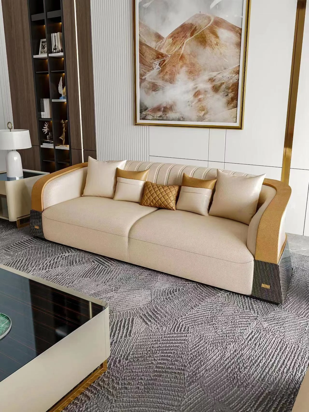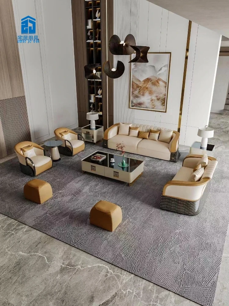 イタリアンラグジュアリー後現代的ミニマリスト高級ヴィラ向け大部屋用豪華リビング家具 本革製ストレートソファ