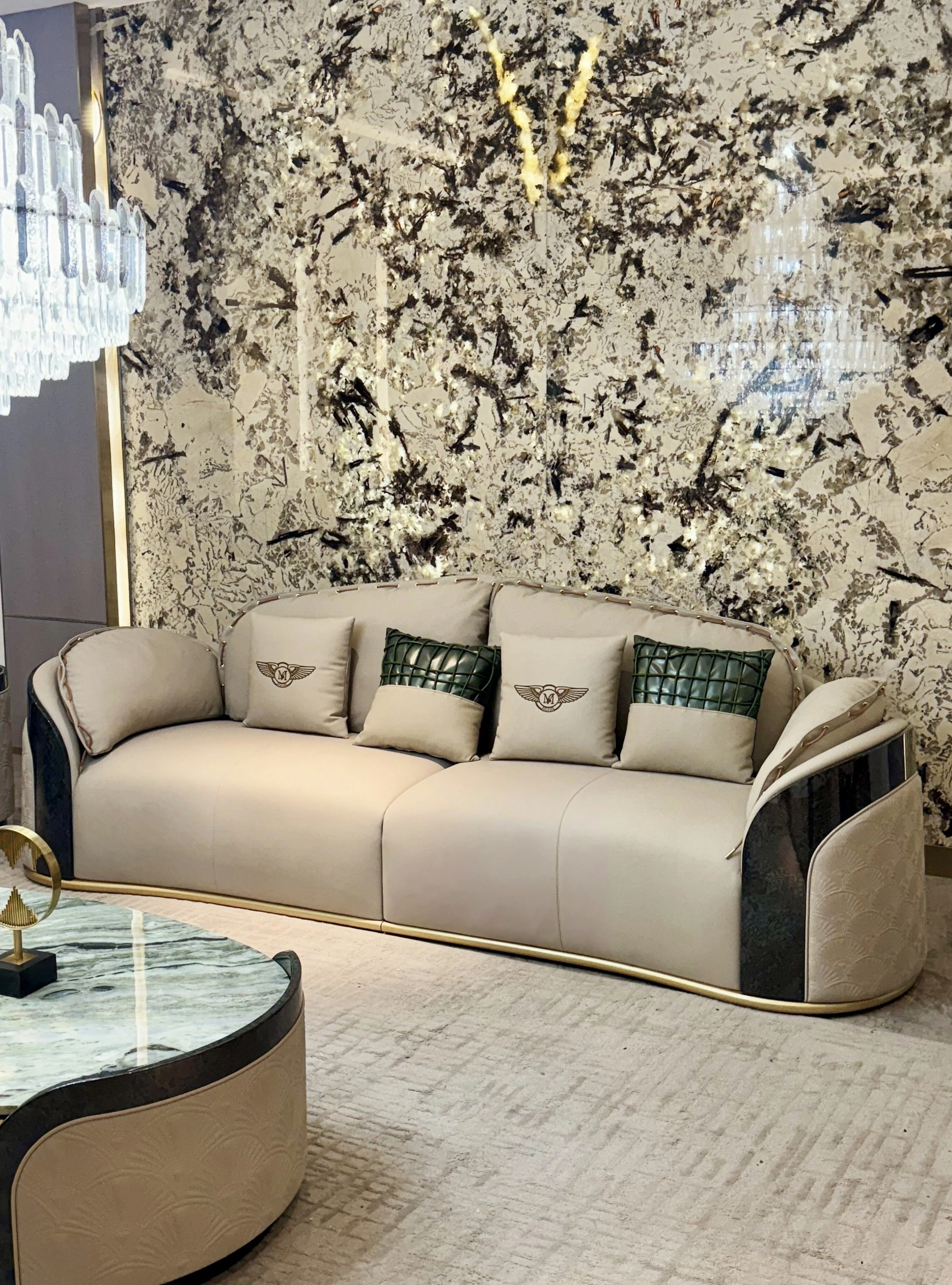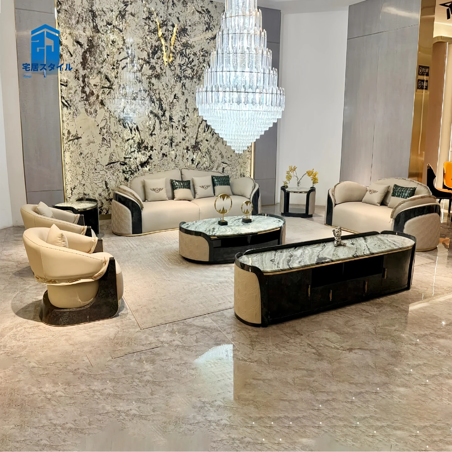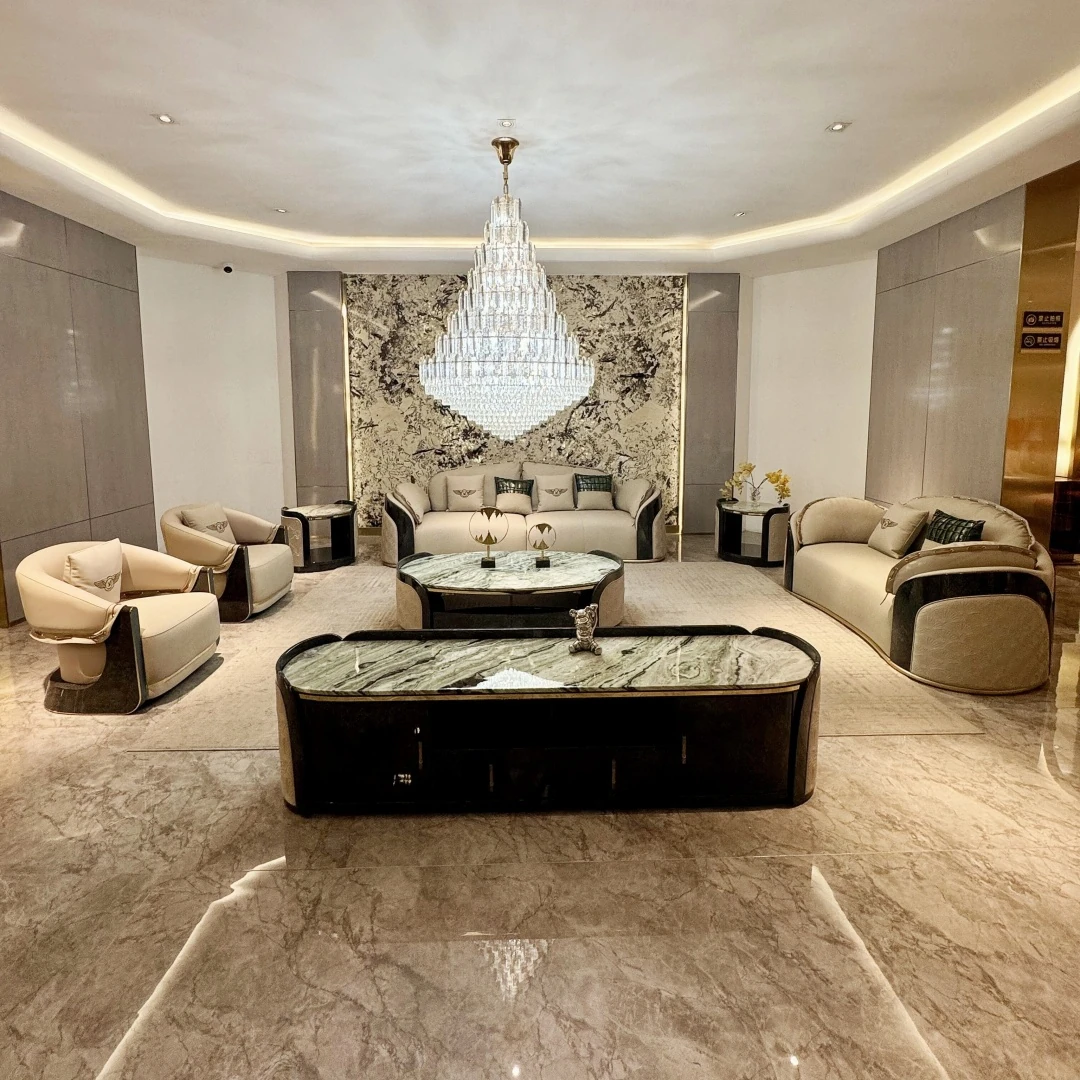 イタリアンラグジュアリー新作!ポストモダン高級別荘向け豪華リビング家具セット ベントレー直輸入の本革ソファで上質な空間を演出!
