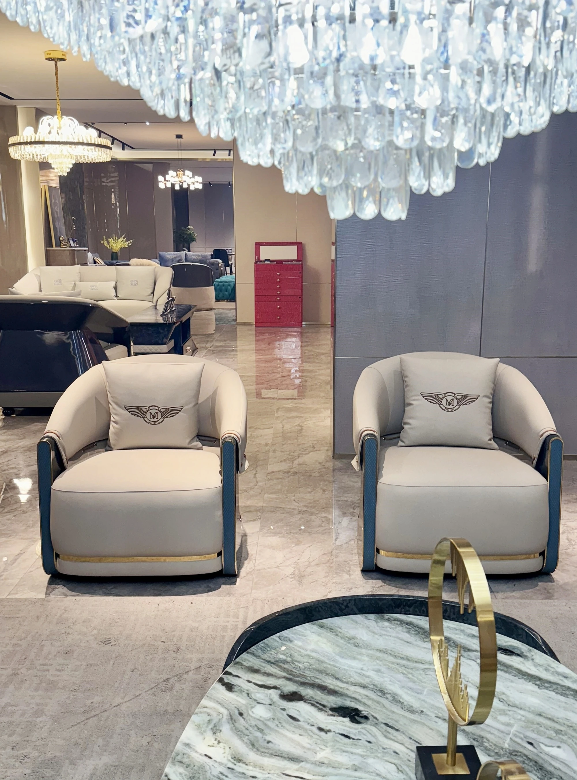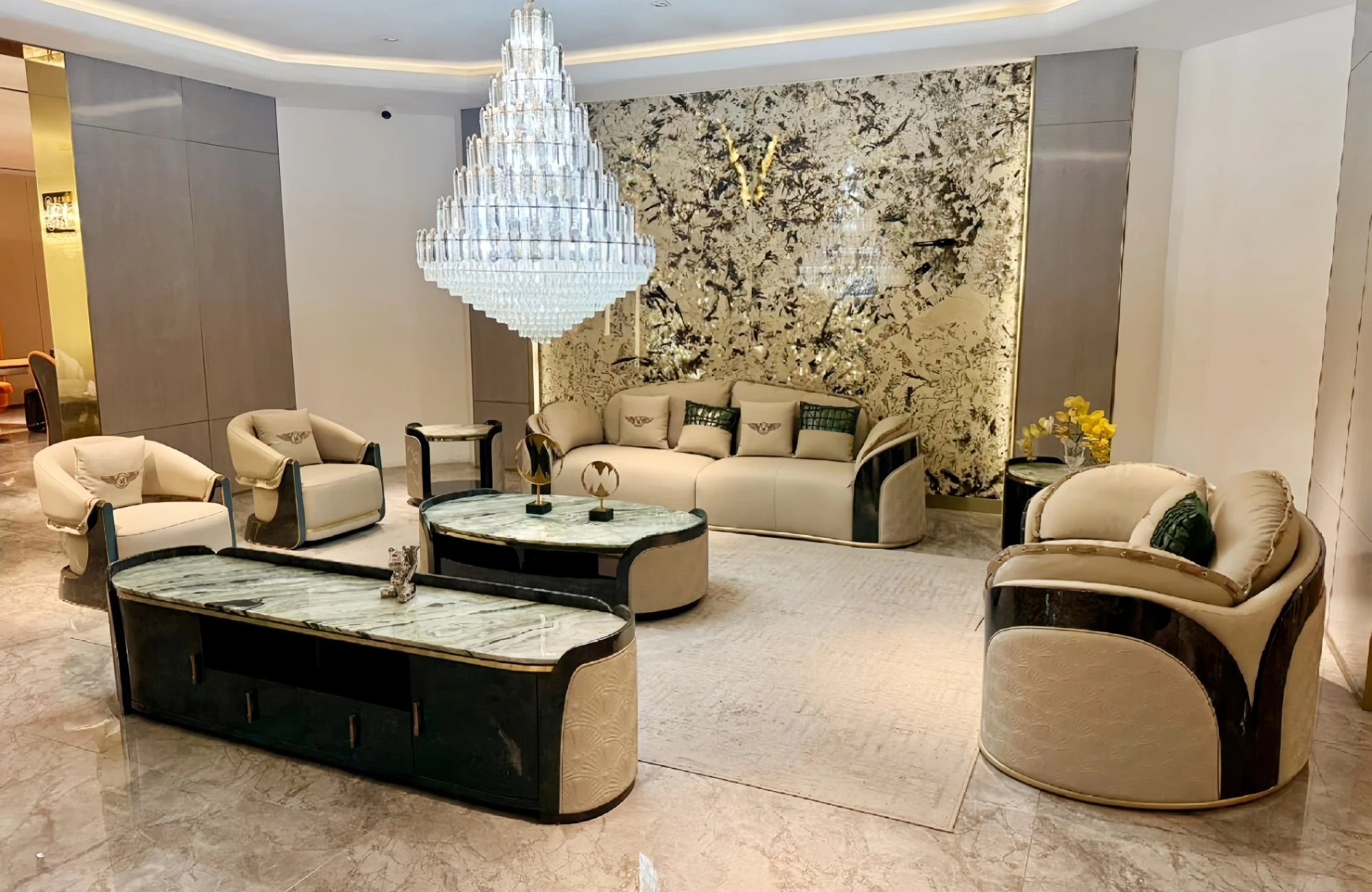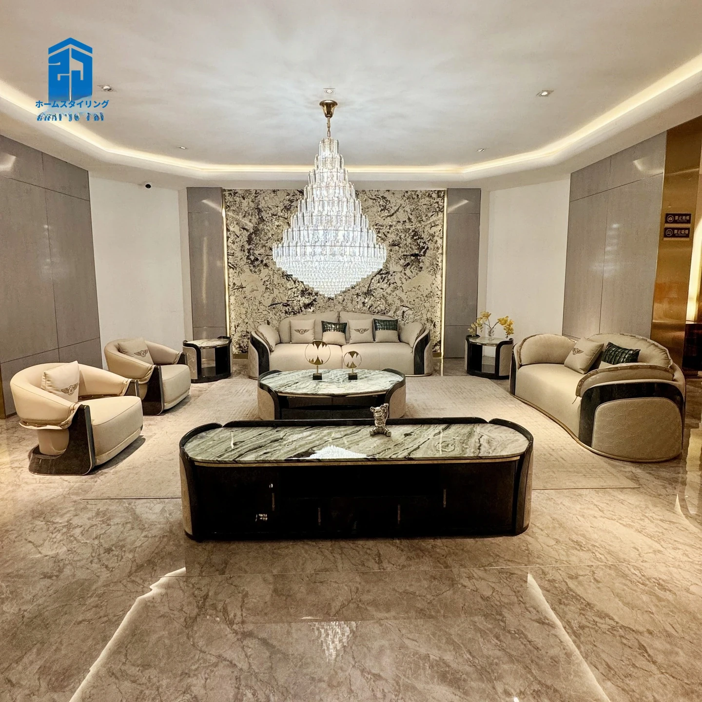 イタリアンラグジュアリー新作!ポストモダン高級別荘向け豪華リビング家具セット ベントレー直輸入の本革ソファで上質な空間を演出!