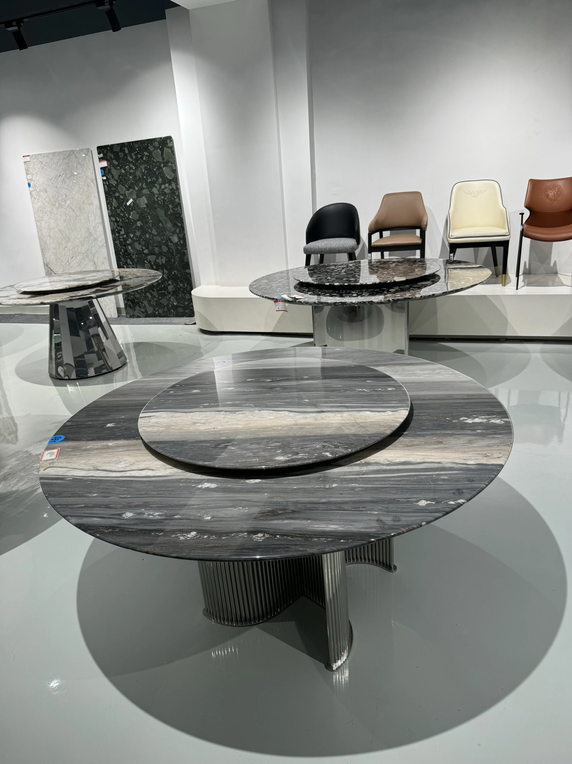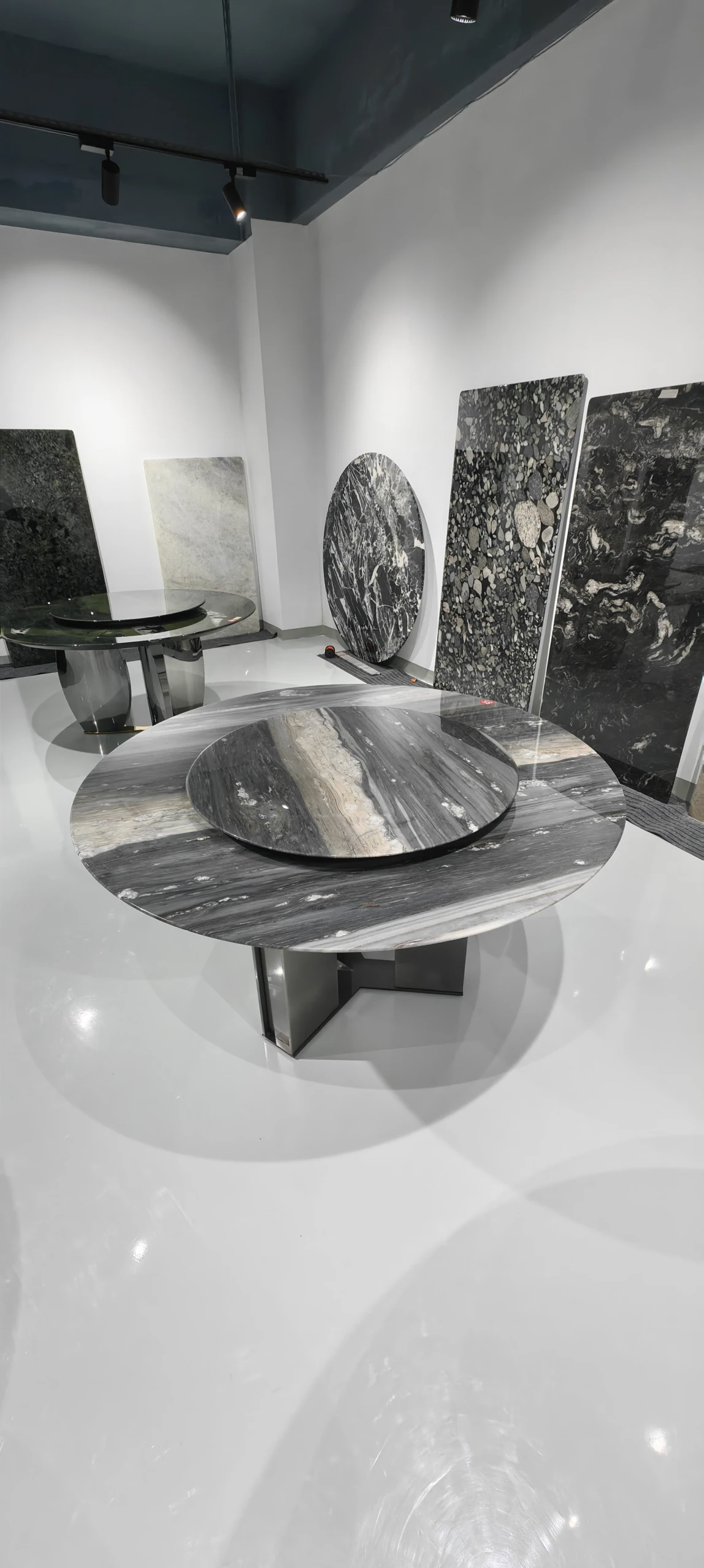 天然インポートブルーサンドストーン豪華デザイン高級ヴィラ用円形サファイアダイニングテーブル - 贅沢な空間を演出する特別な一品!