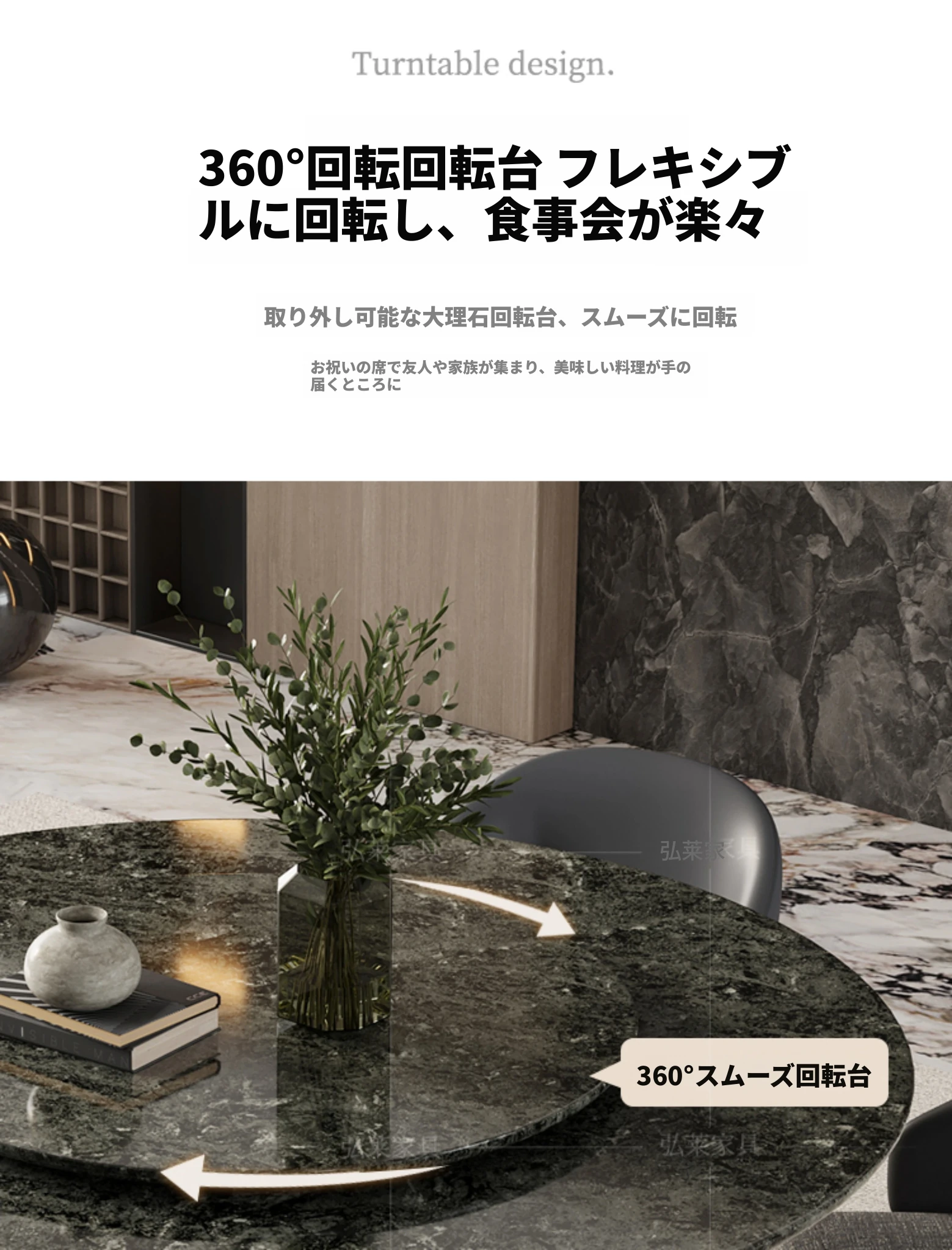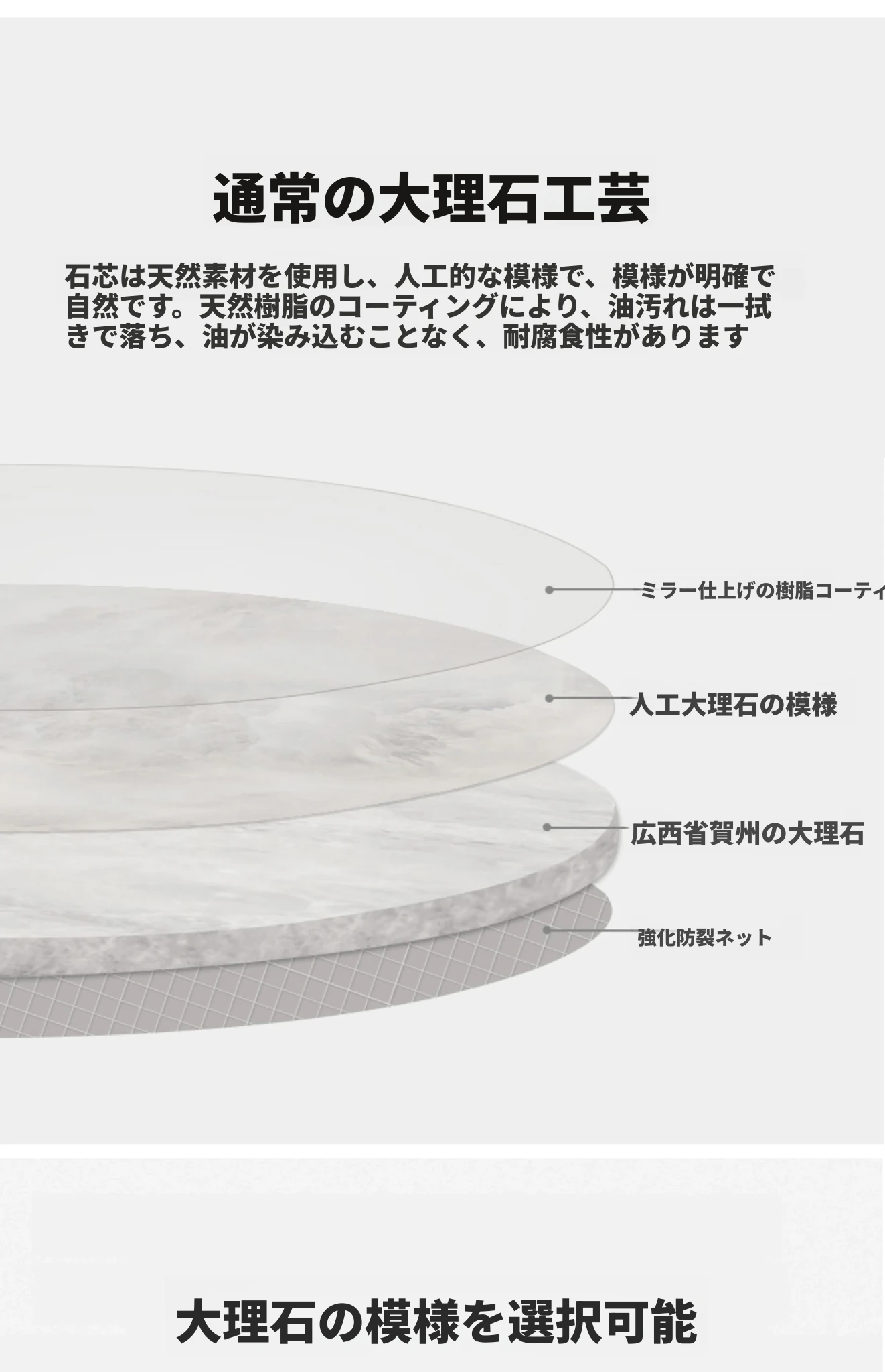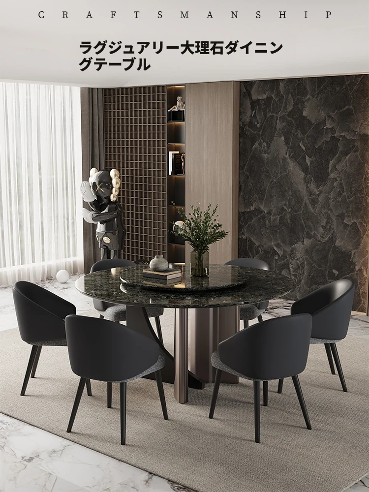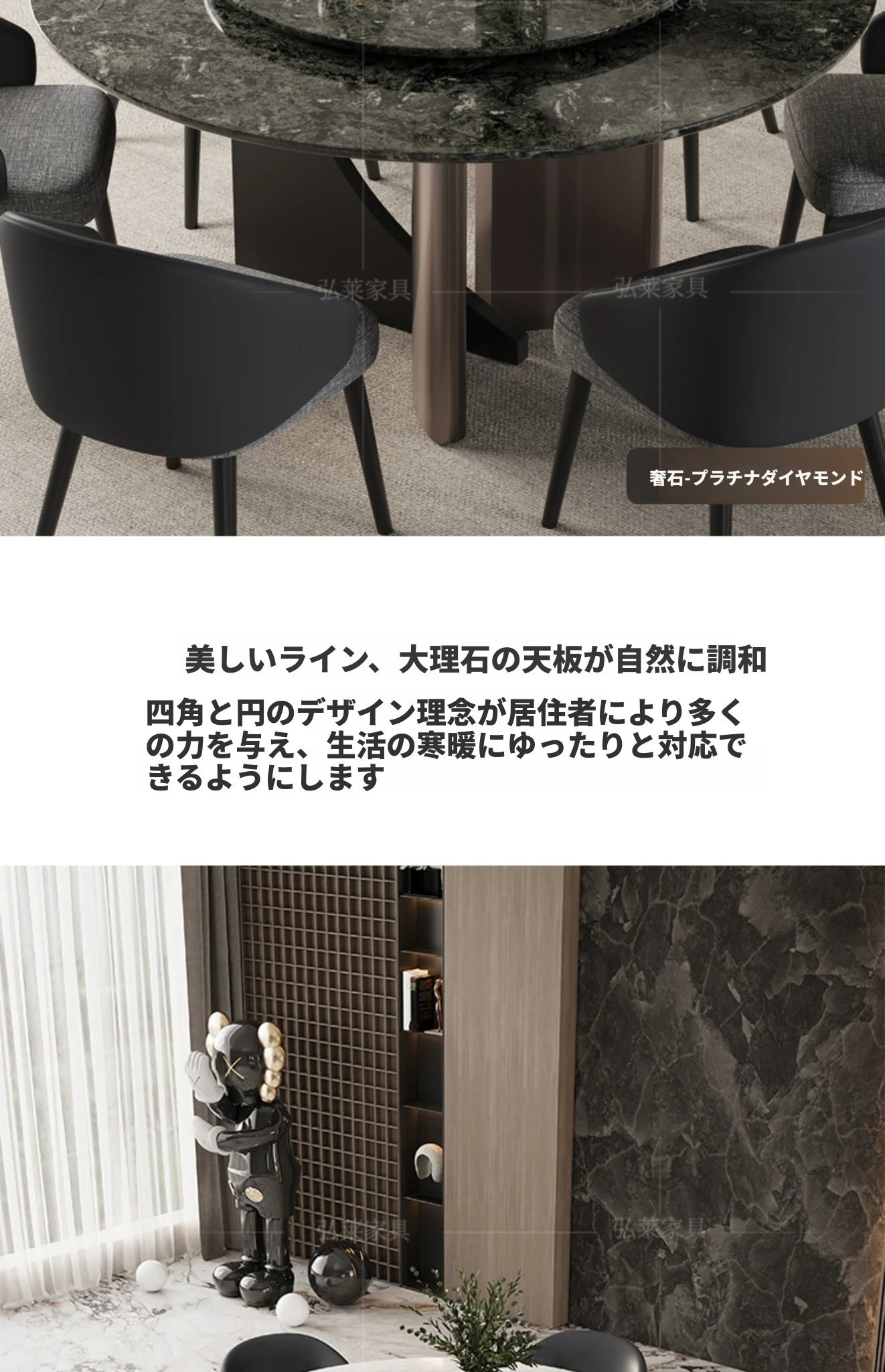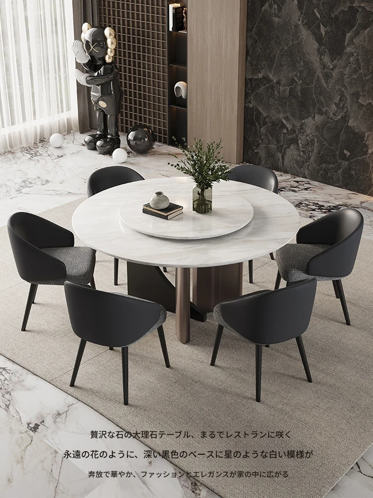 高級イタリアンデザインの大理石円形ダイニングテーブル - 回転プレート付き、モダンでシンプルな輸入ラグジュアリー、プラチナダイヤモンド仕上げの大きなテーブルで、特別なひとときを演出します!