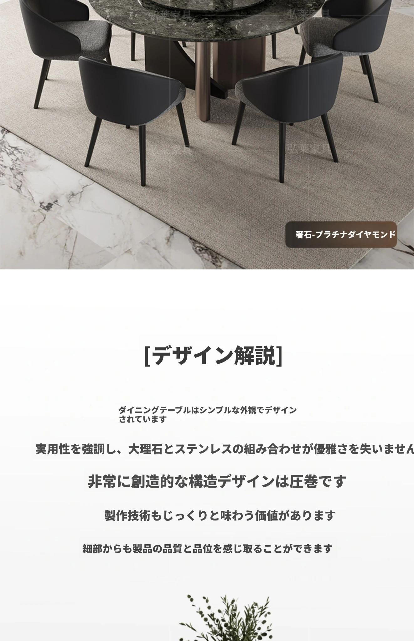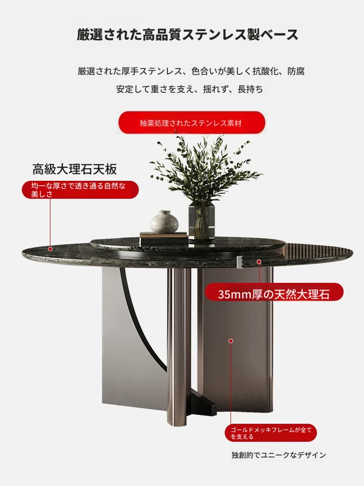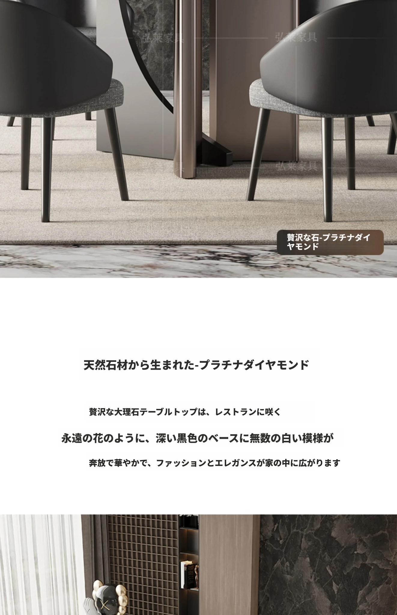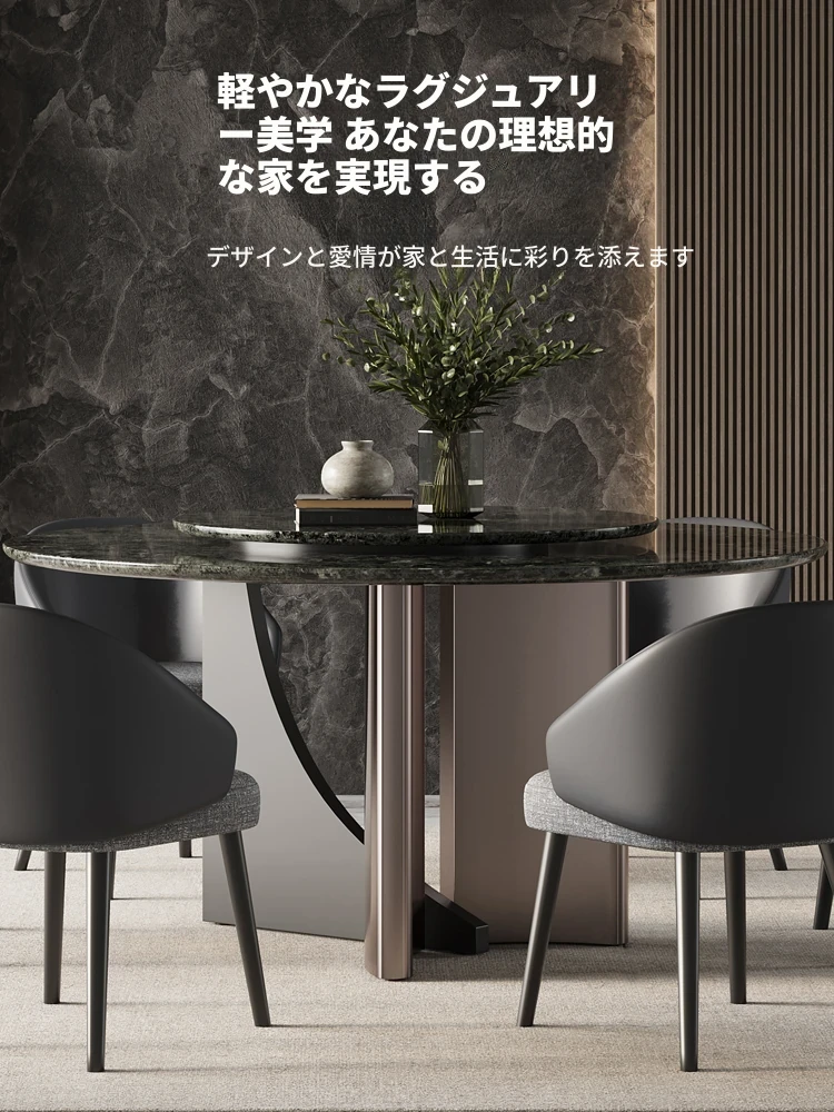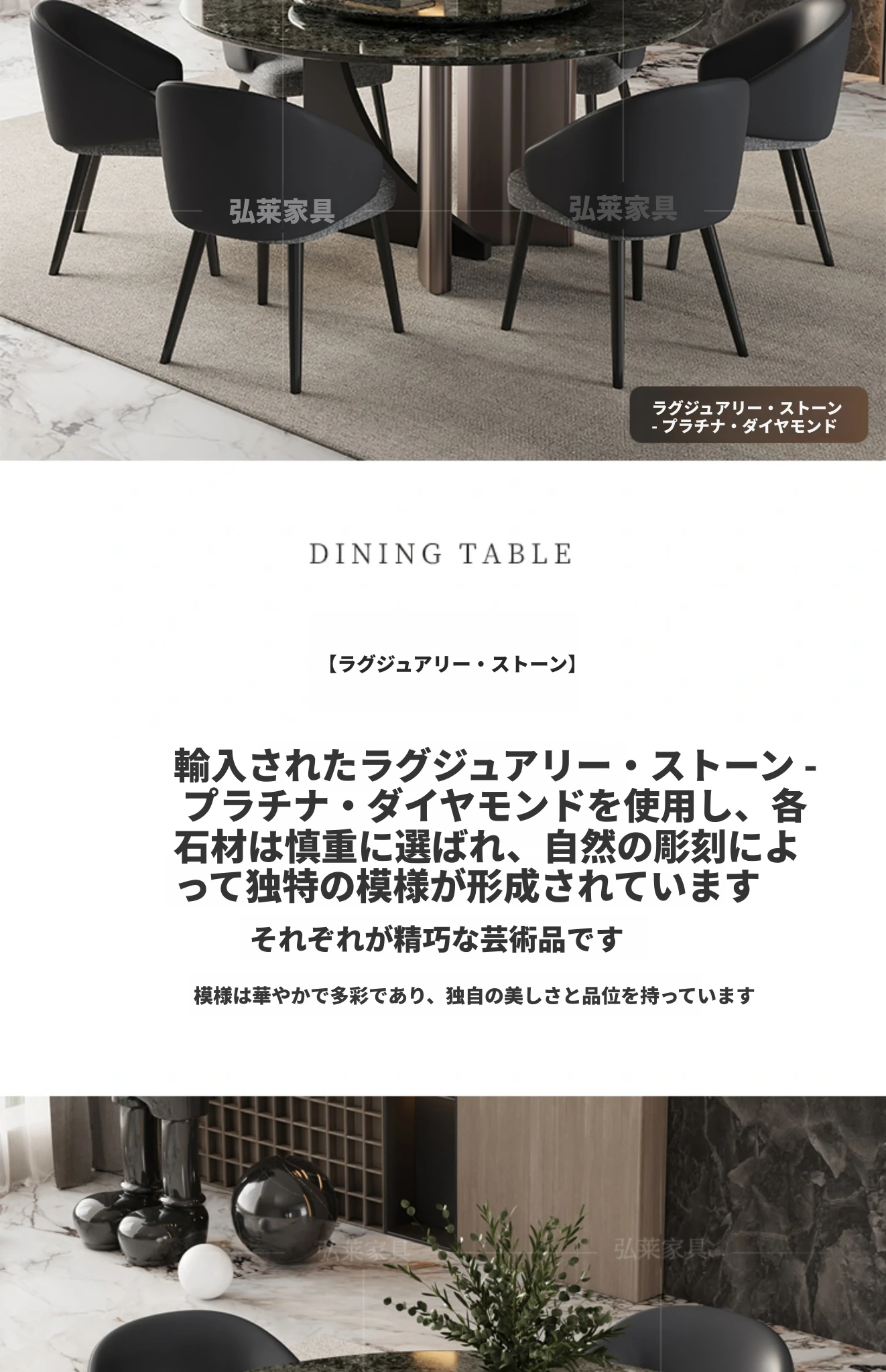 高級イタリアンデザインの大理石円形ダイニングテーブル - 回転プレート付き、モダンでシンプルな輸入ラグジュアリー、プラチナダイヤモンド仕上げの大きなテーブルで、特別なひとときを演出します!
