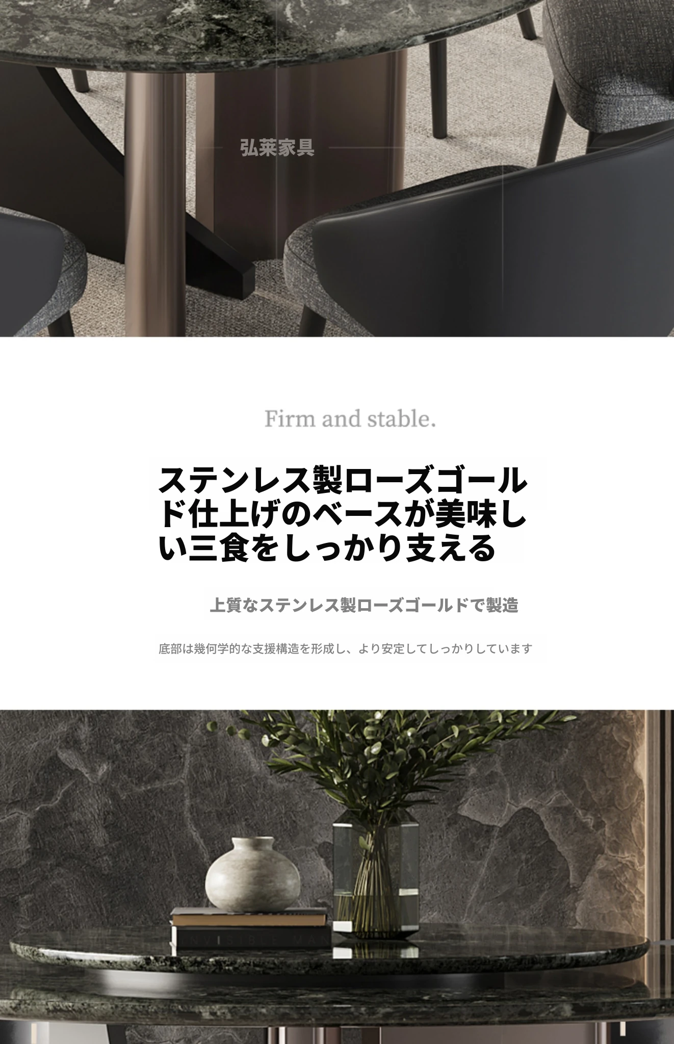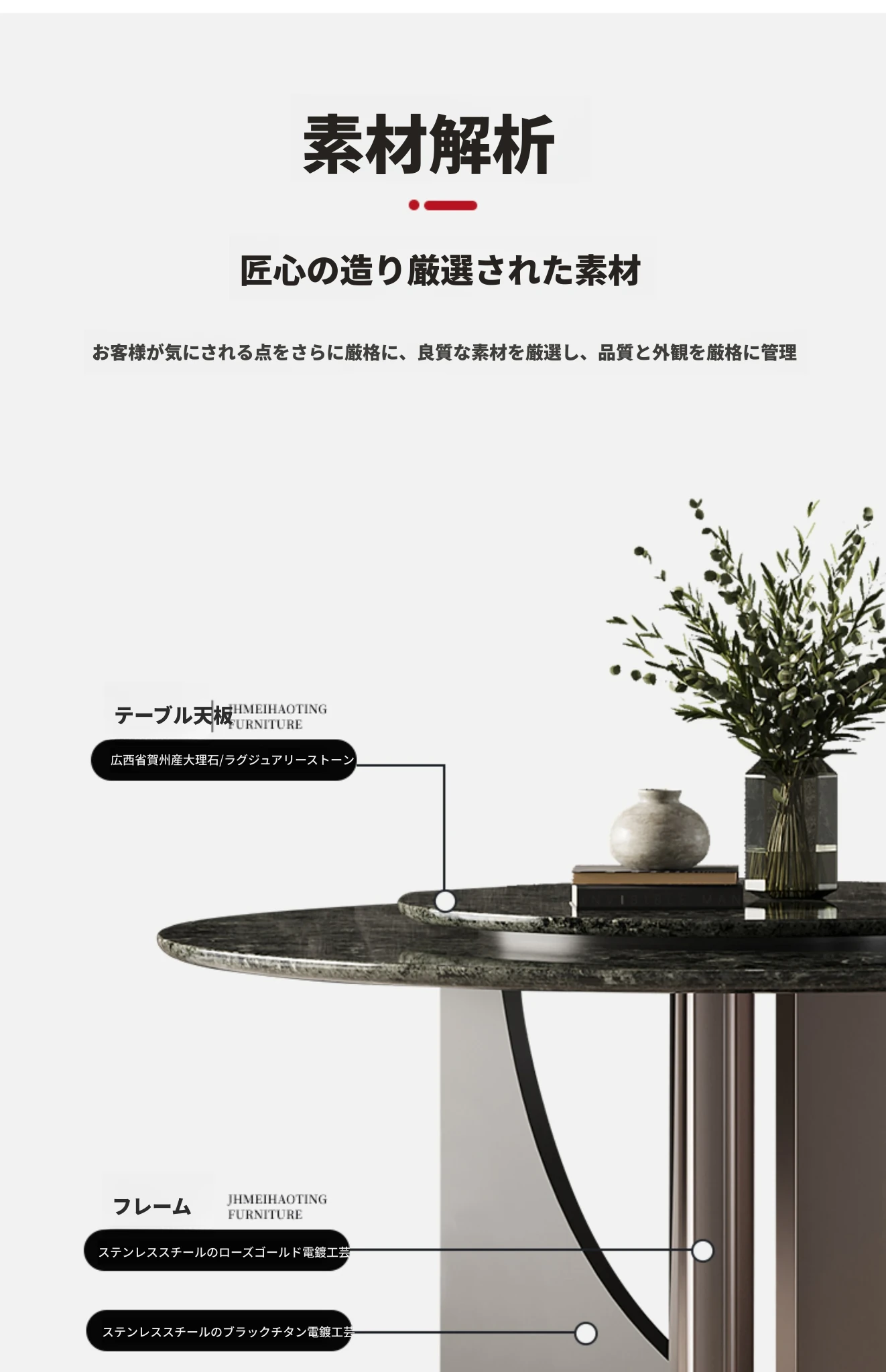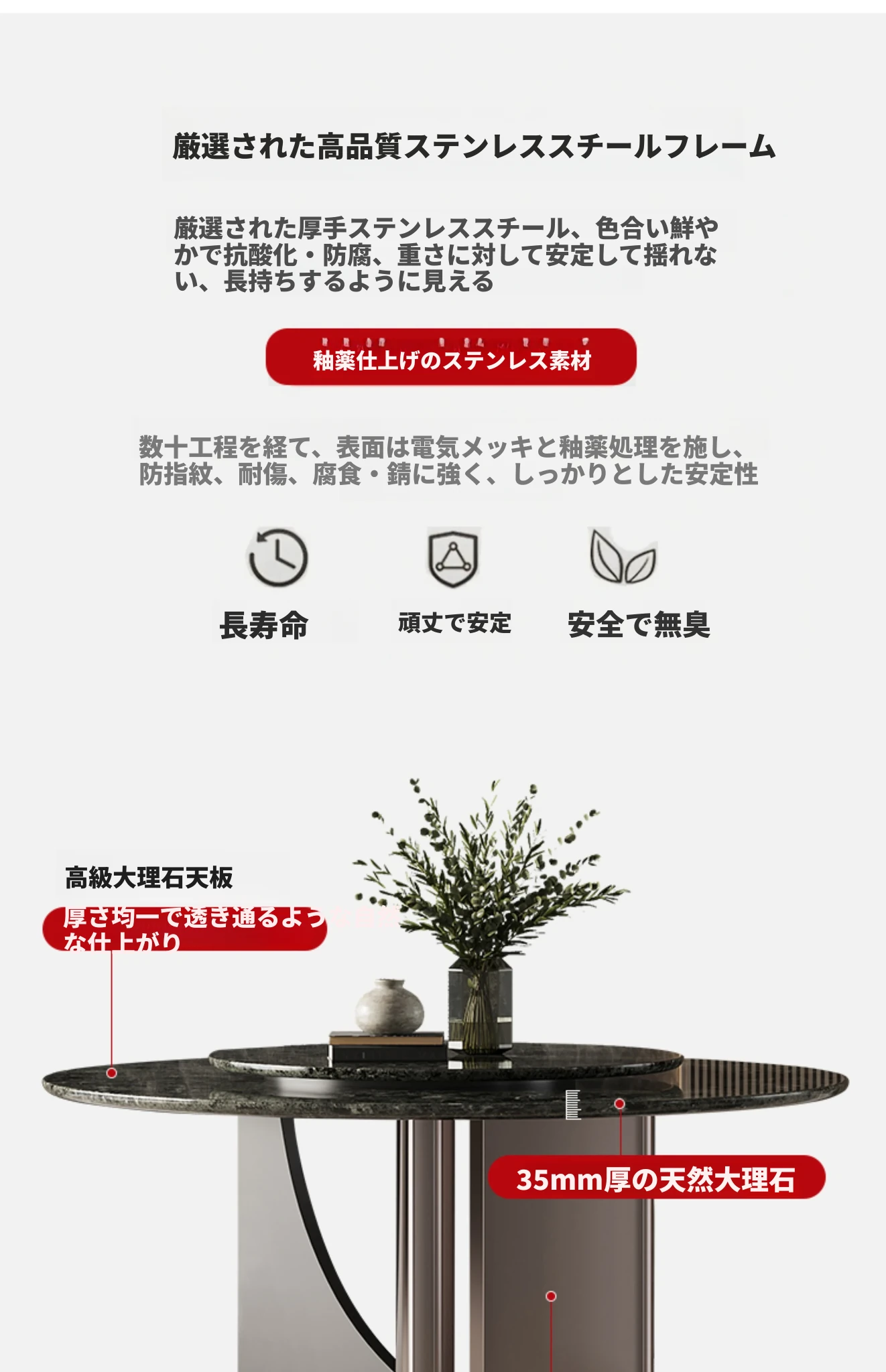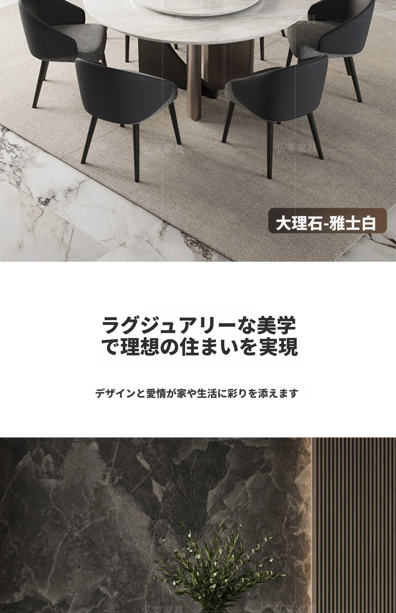 高級イタリアンデザインの大理石円形ダイニングテーブル - 回転プレート付き、モダンでシンプルな輸入ラグジュアリー、プラチナダイヤモンド仕上げの大きなテーブルで、特別なひとときを演出します!