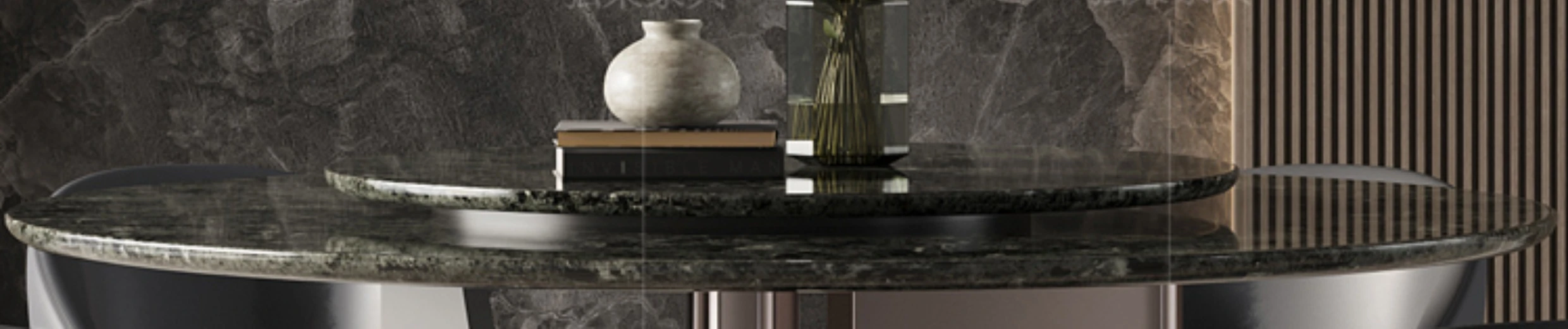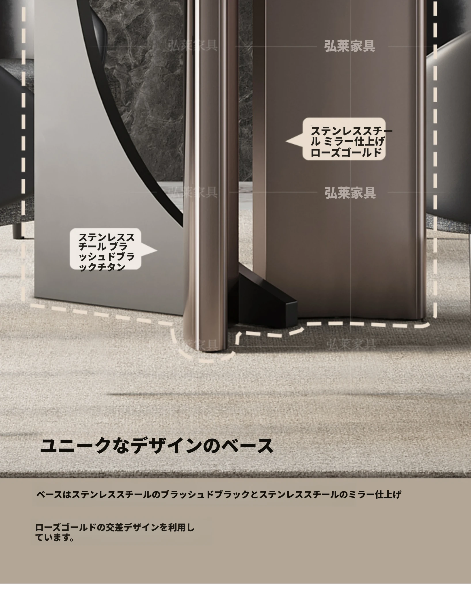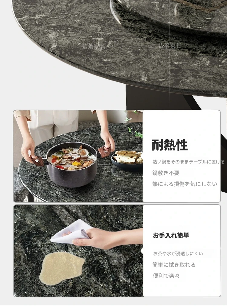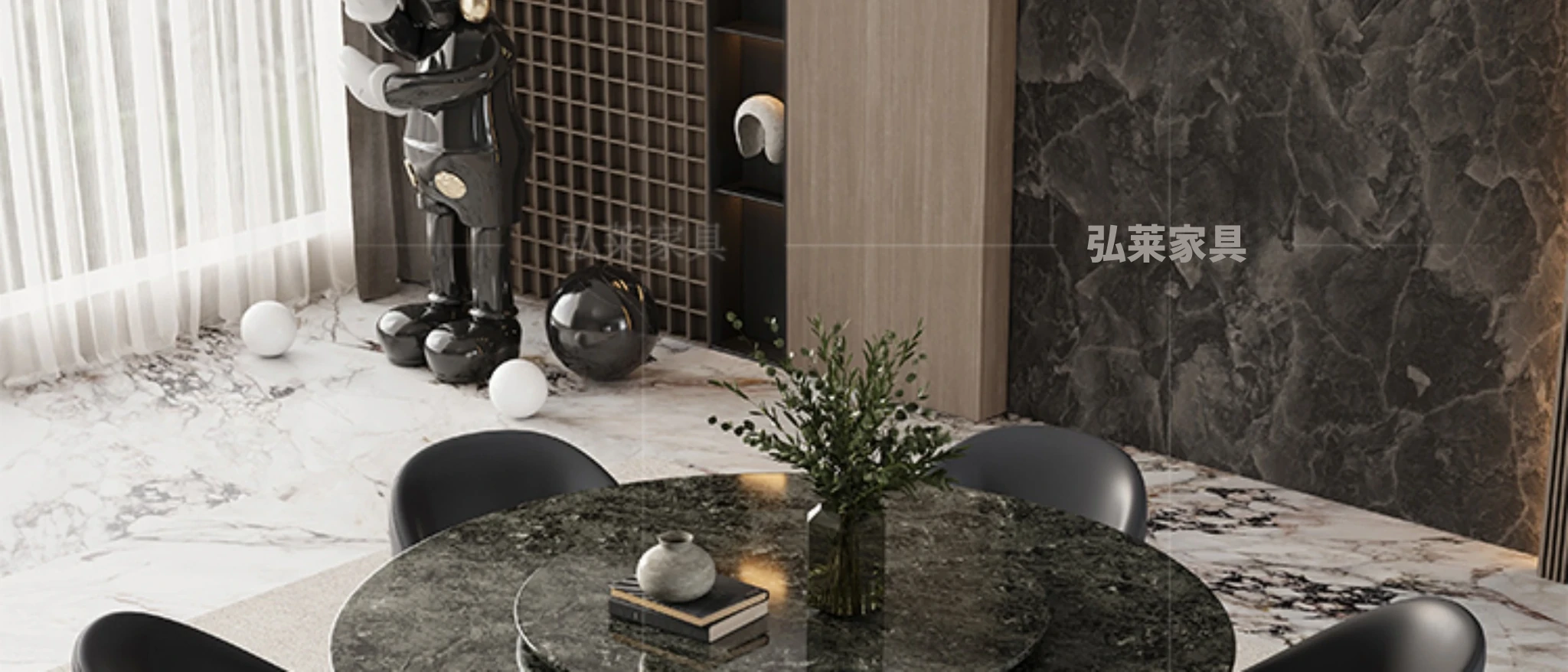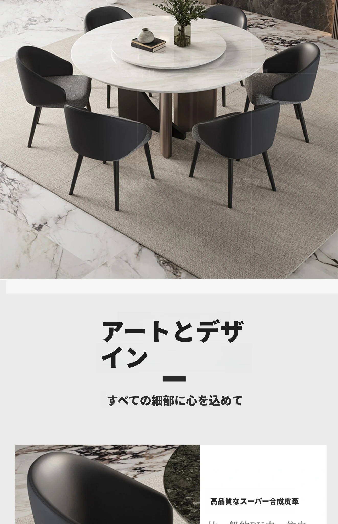 高級イタリアンデザインの大理石円形ダイニングテーブル - 回転プレート付き、モダンでシンプルな輸入ラグジュアリー、プラチナダイヤモンド仕上げの大きなテーブルで、特別なひとときを演出します!