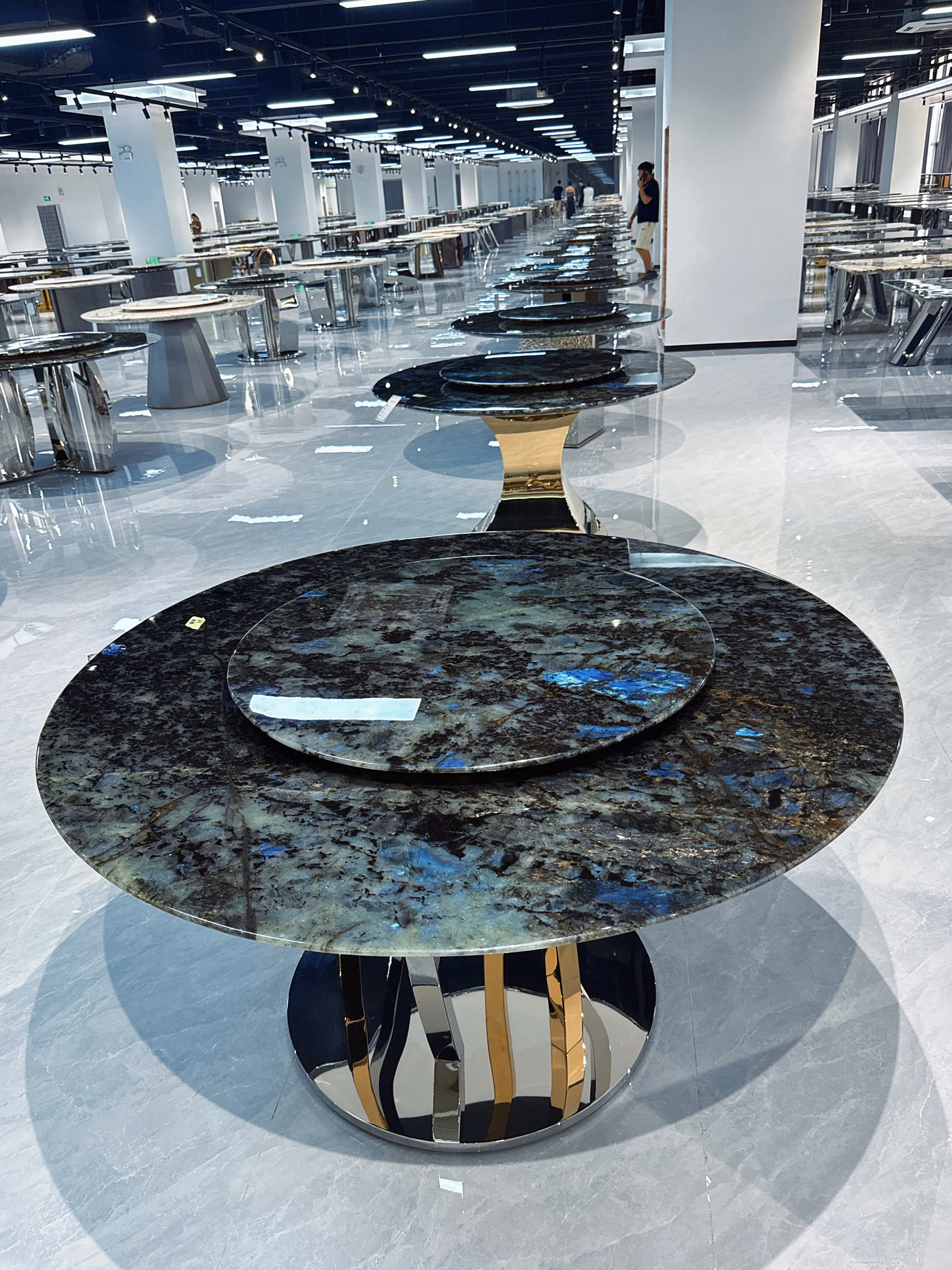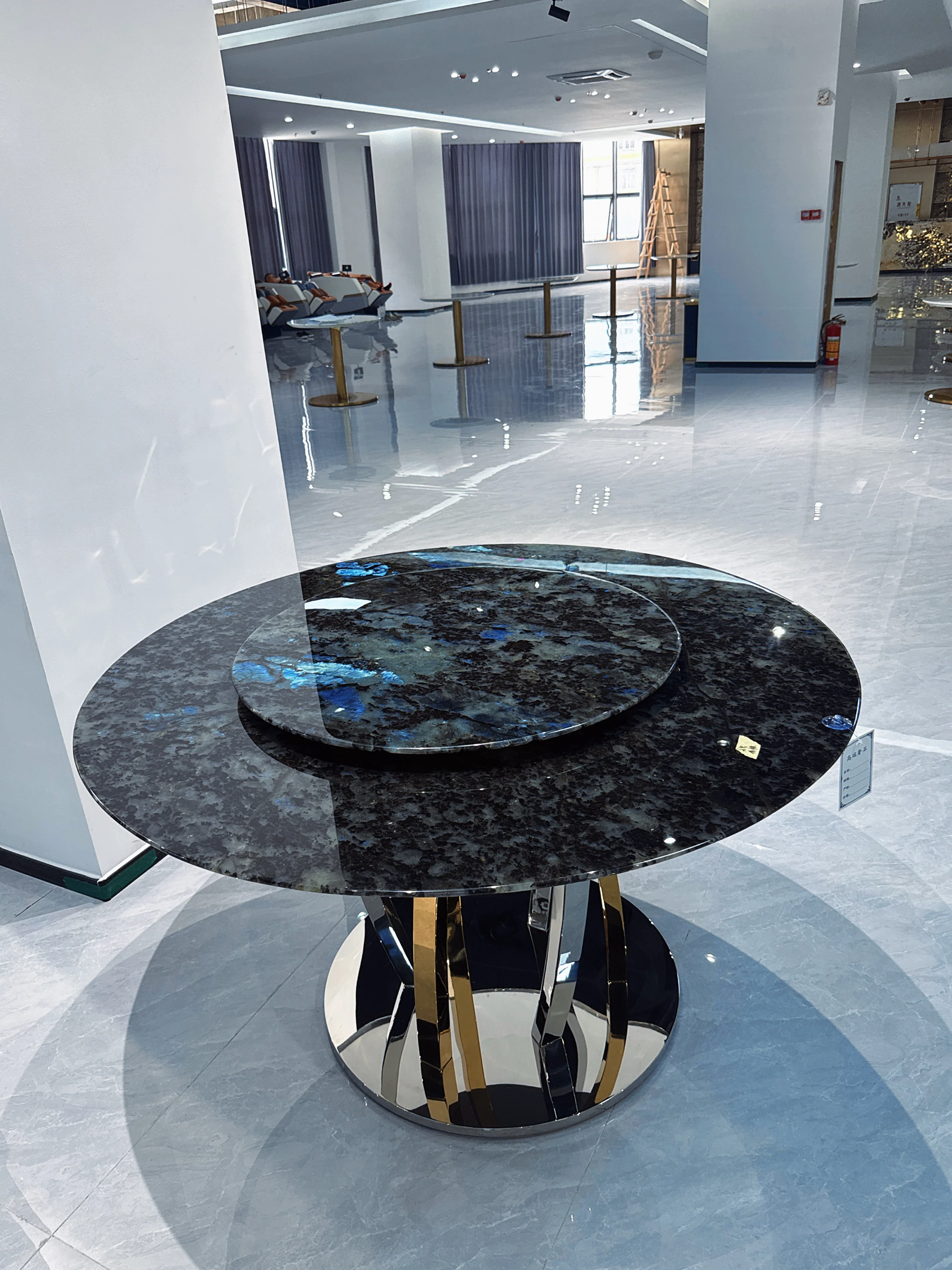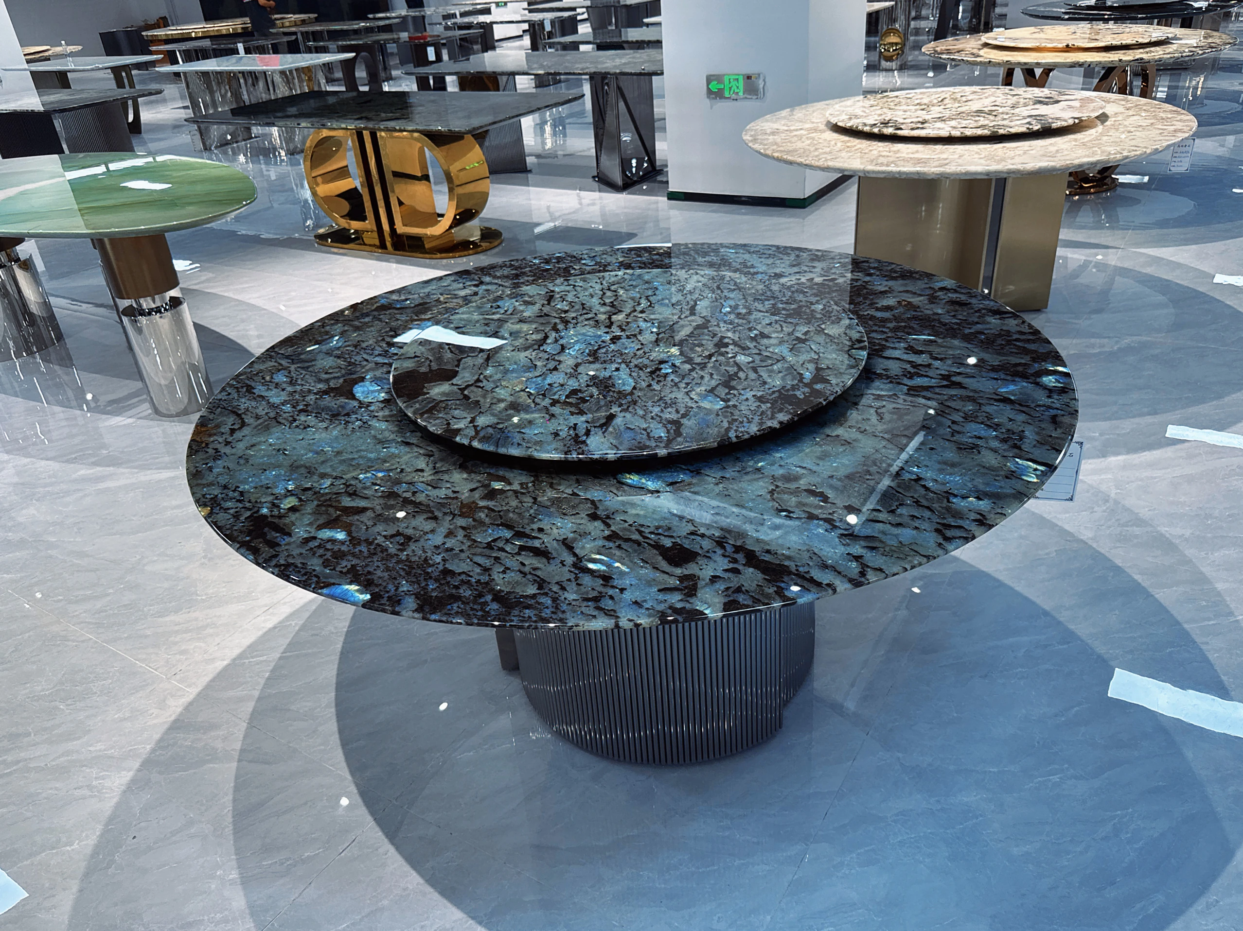 天然ブルージェイドのラグジュアリー石内蔵ラウンドテーブル 高級ヴィラ向け 極簡素プラチナダイヤモンド フェンディ ホワイト大理石ダイニングテーブル