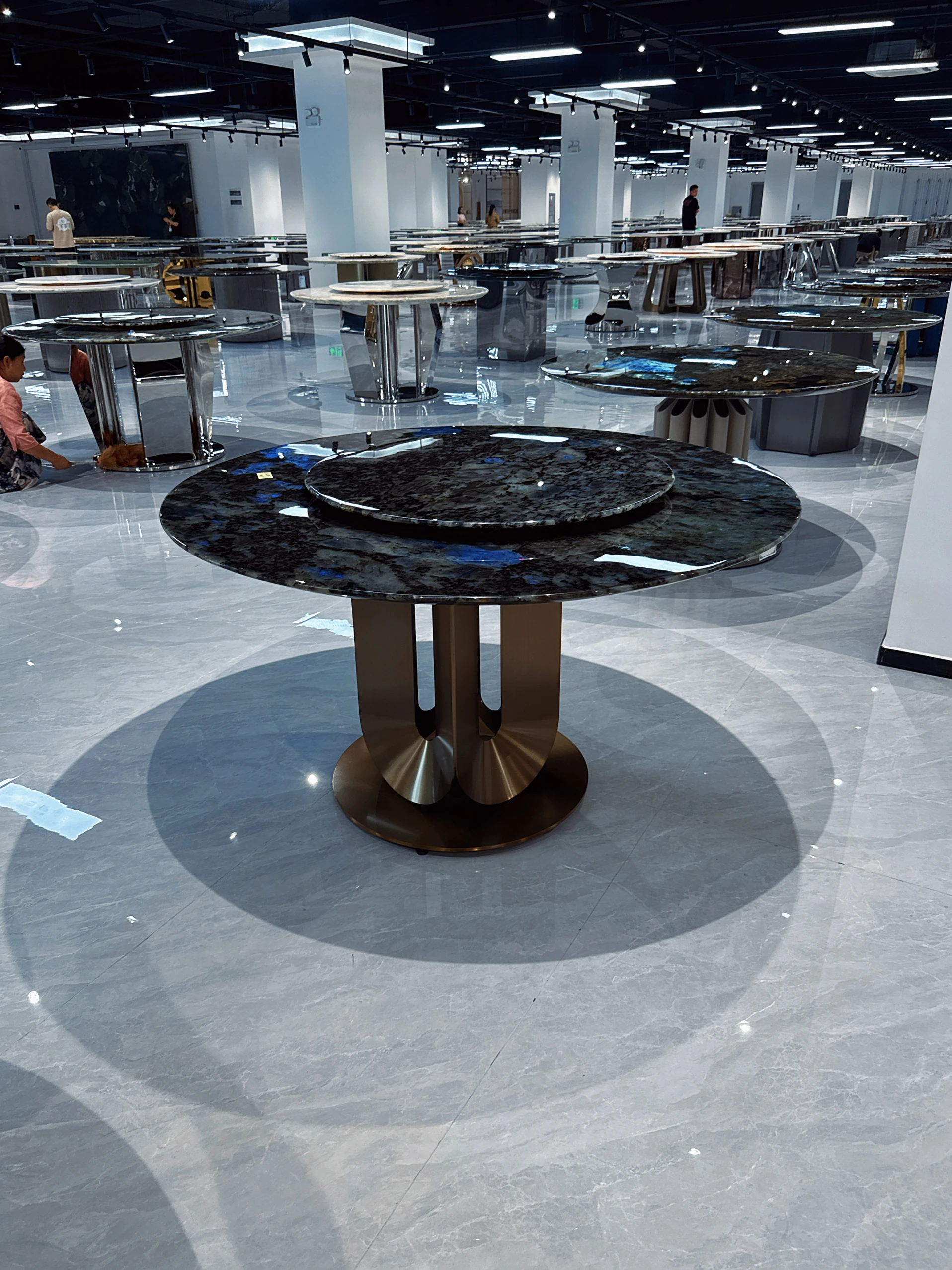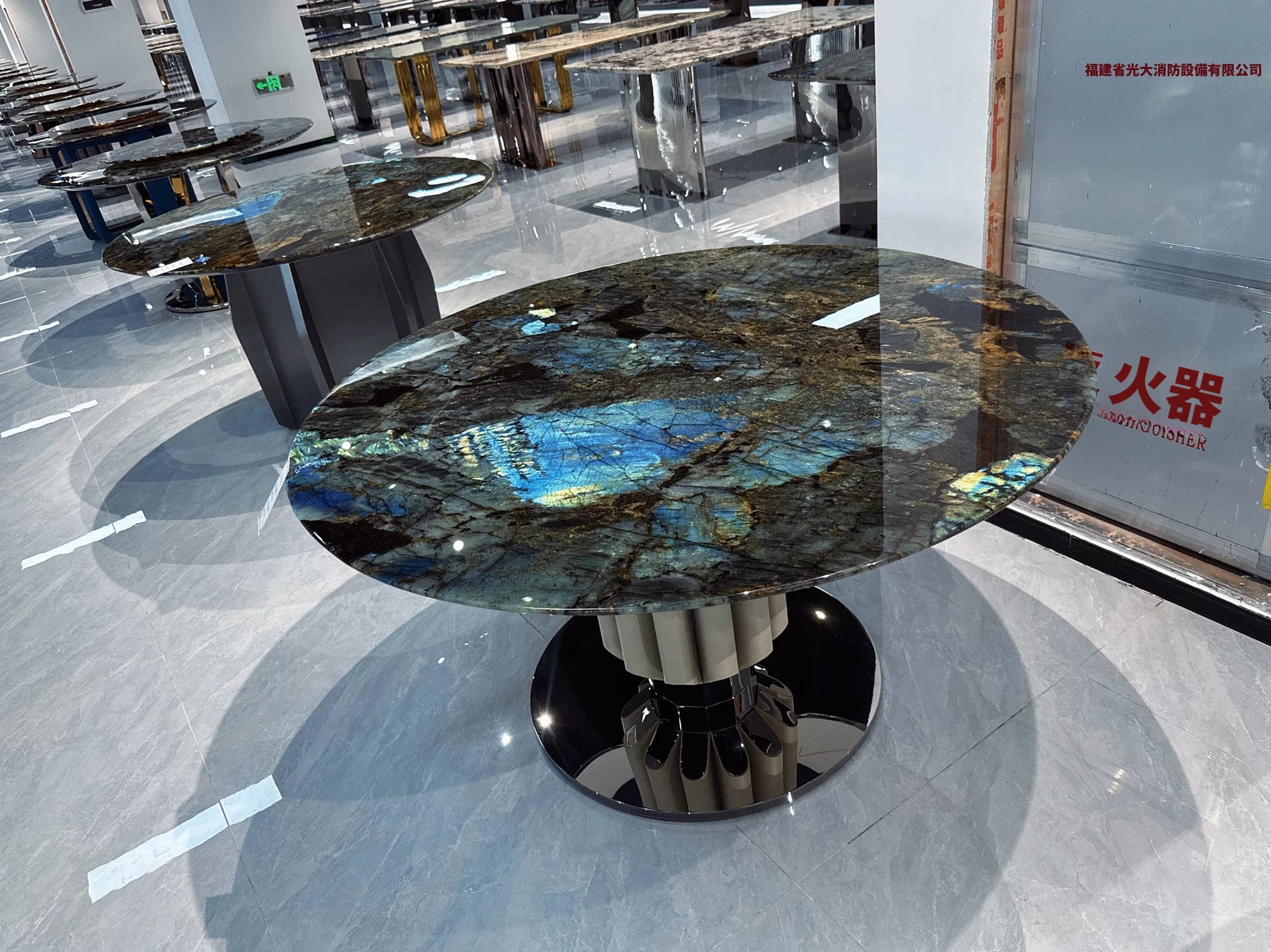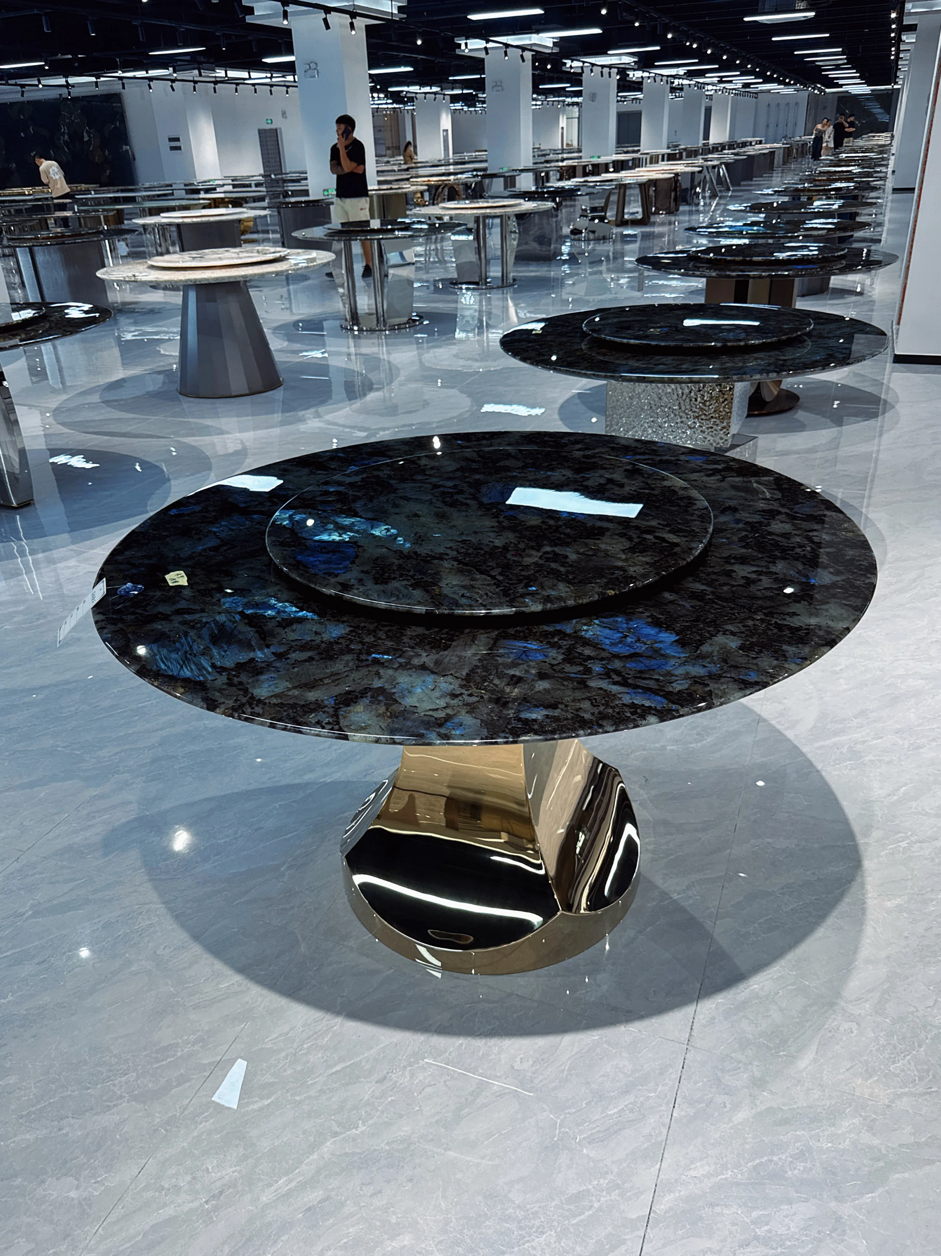 天然ブルージェイドのラグジュアリー石内蔵ラウンドテーブル 高級ヴィラ向け 極簡素プラチナダイヤモンド フェンディ ホワイト大理石ダイニングテーブル