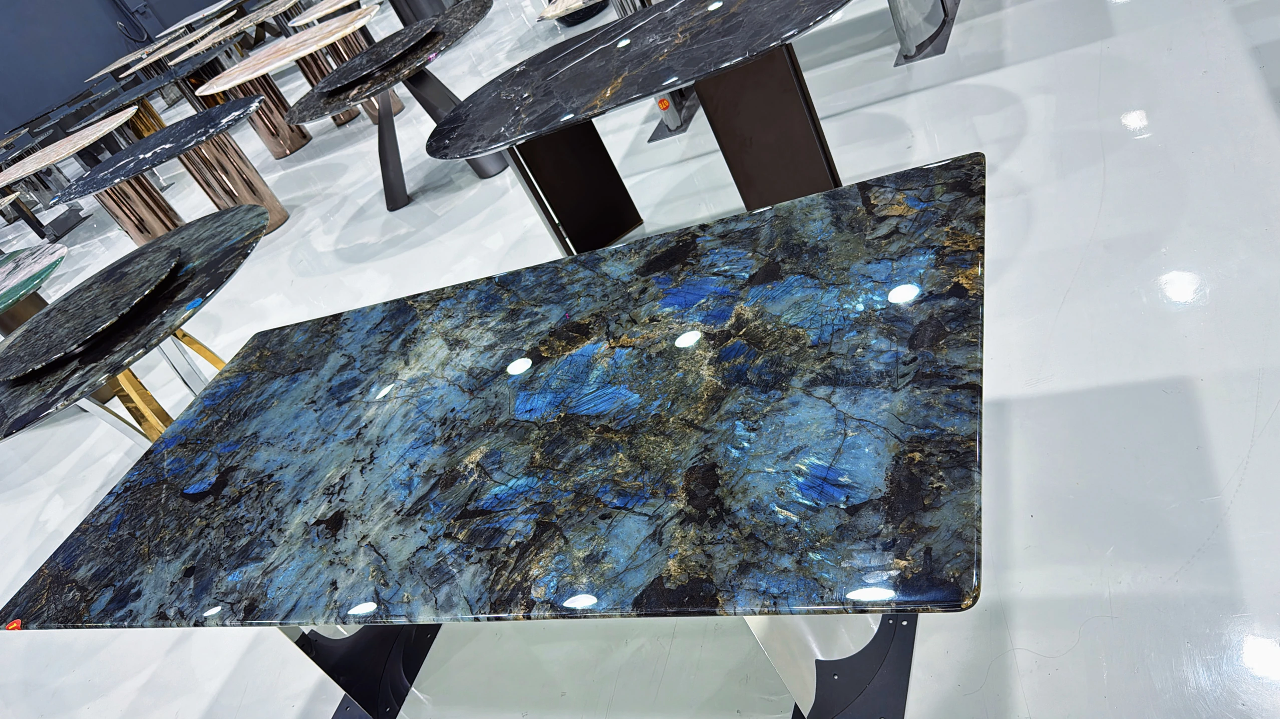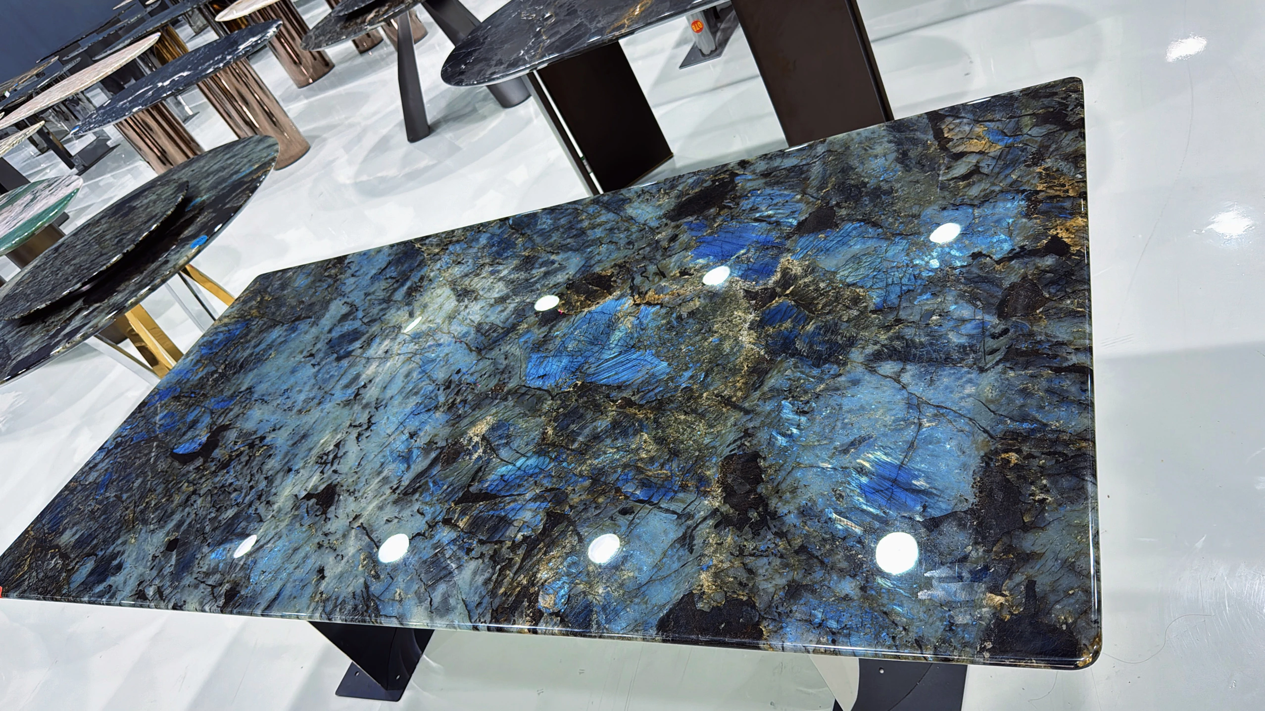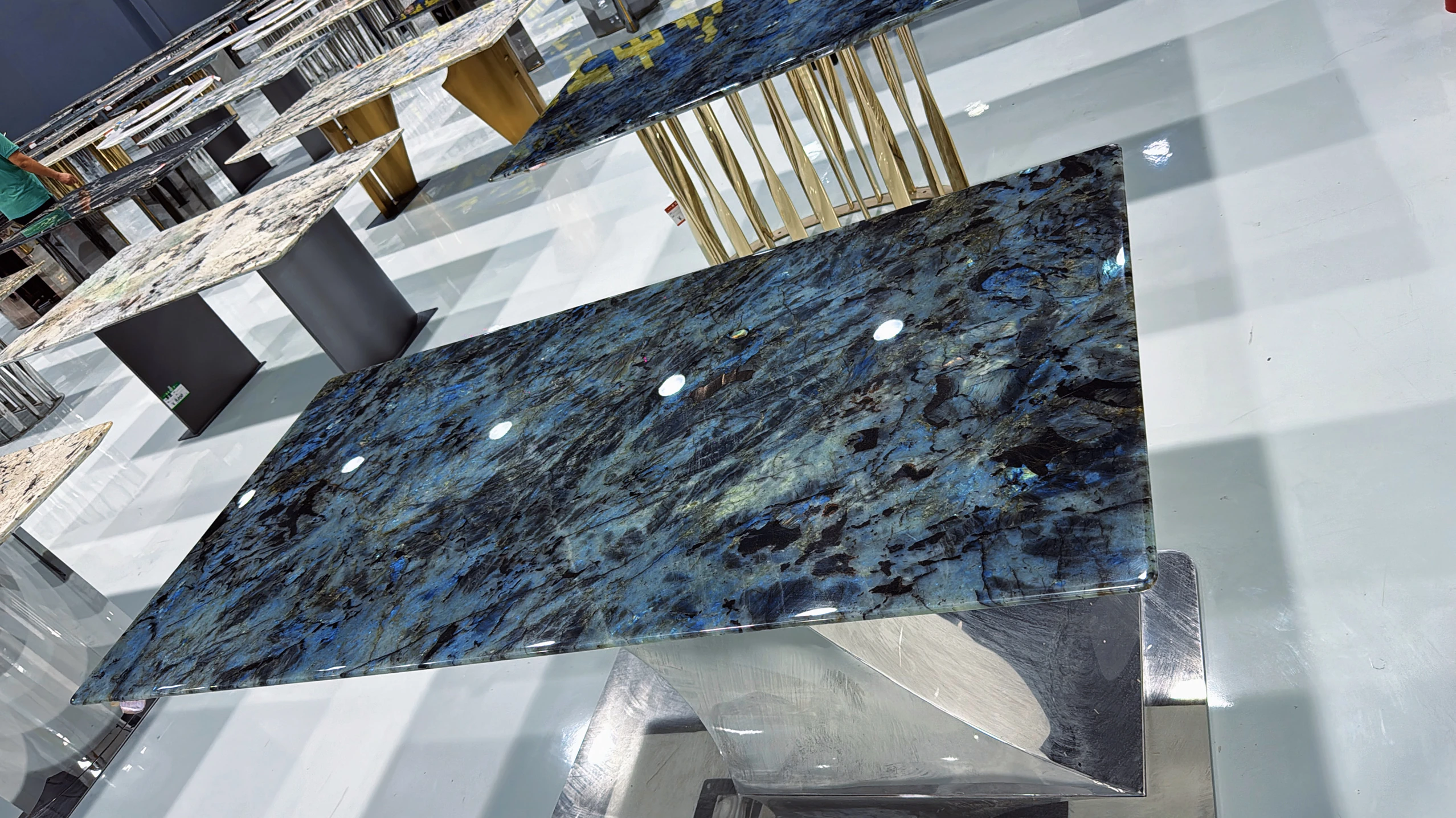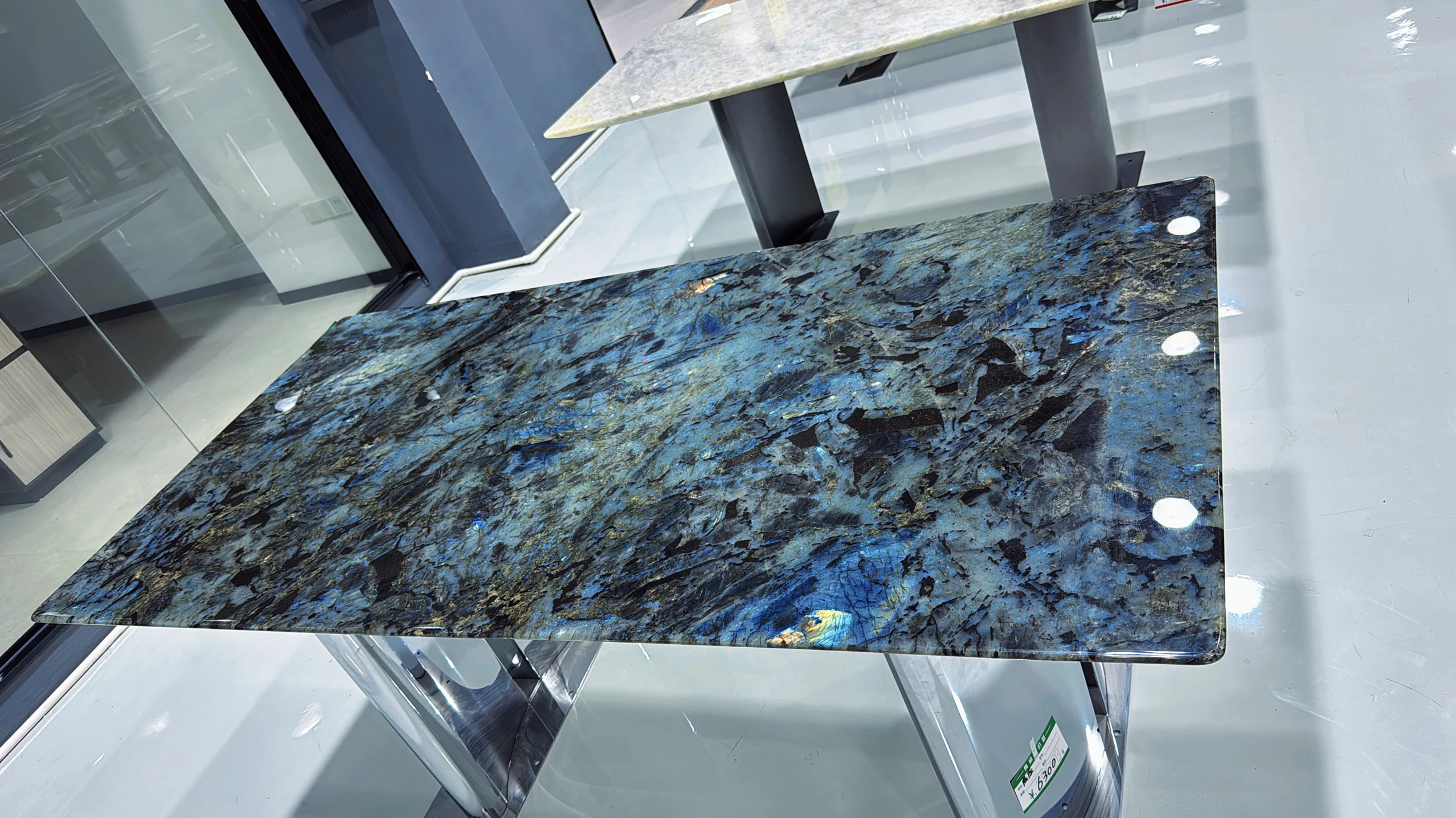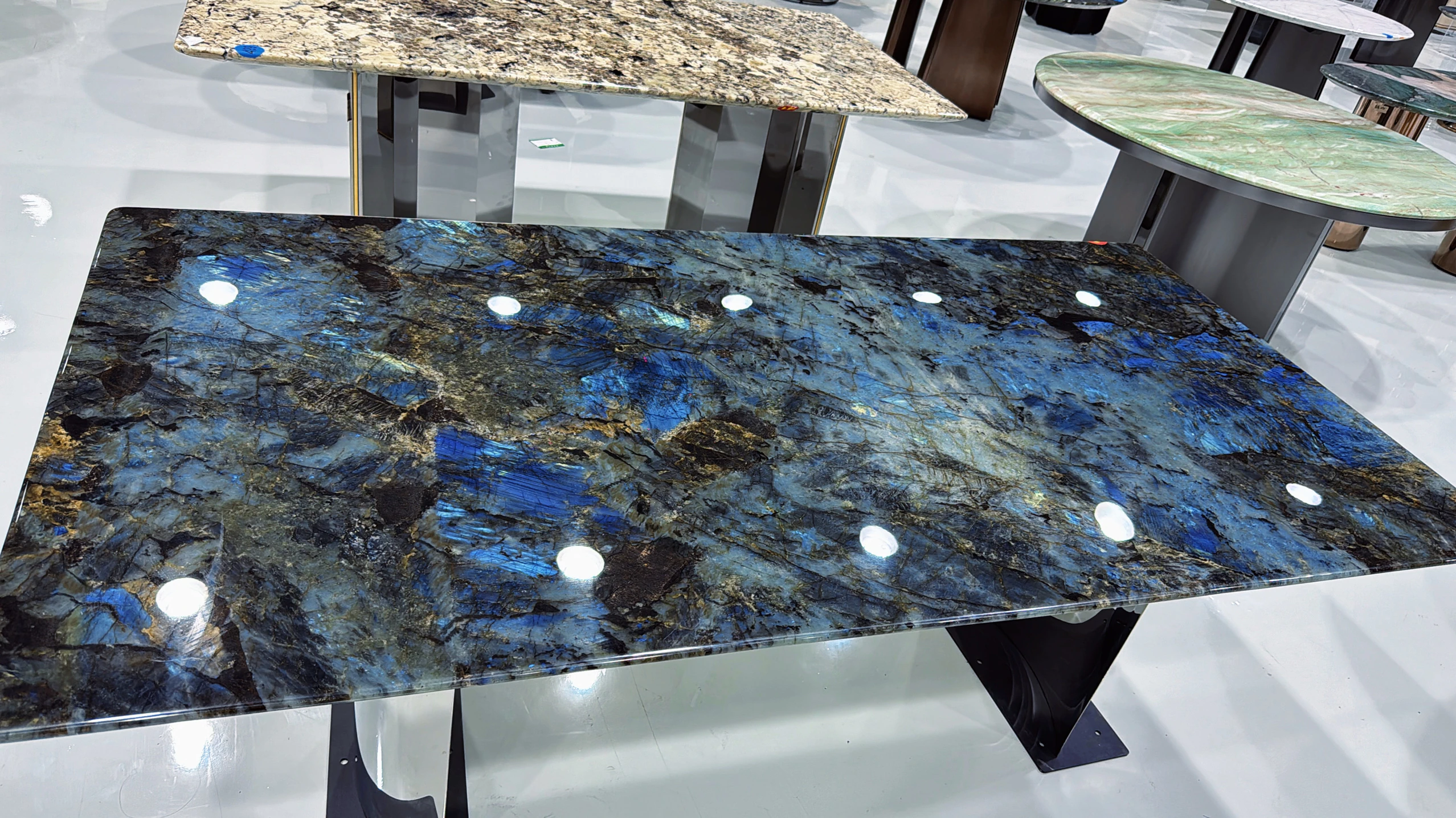 ブラジル輸入天然ブルー翡翠ラグジュアリー石ロングテーブル品位別/平方メートル
