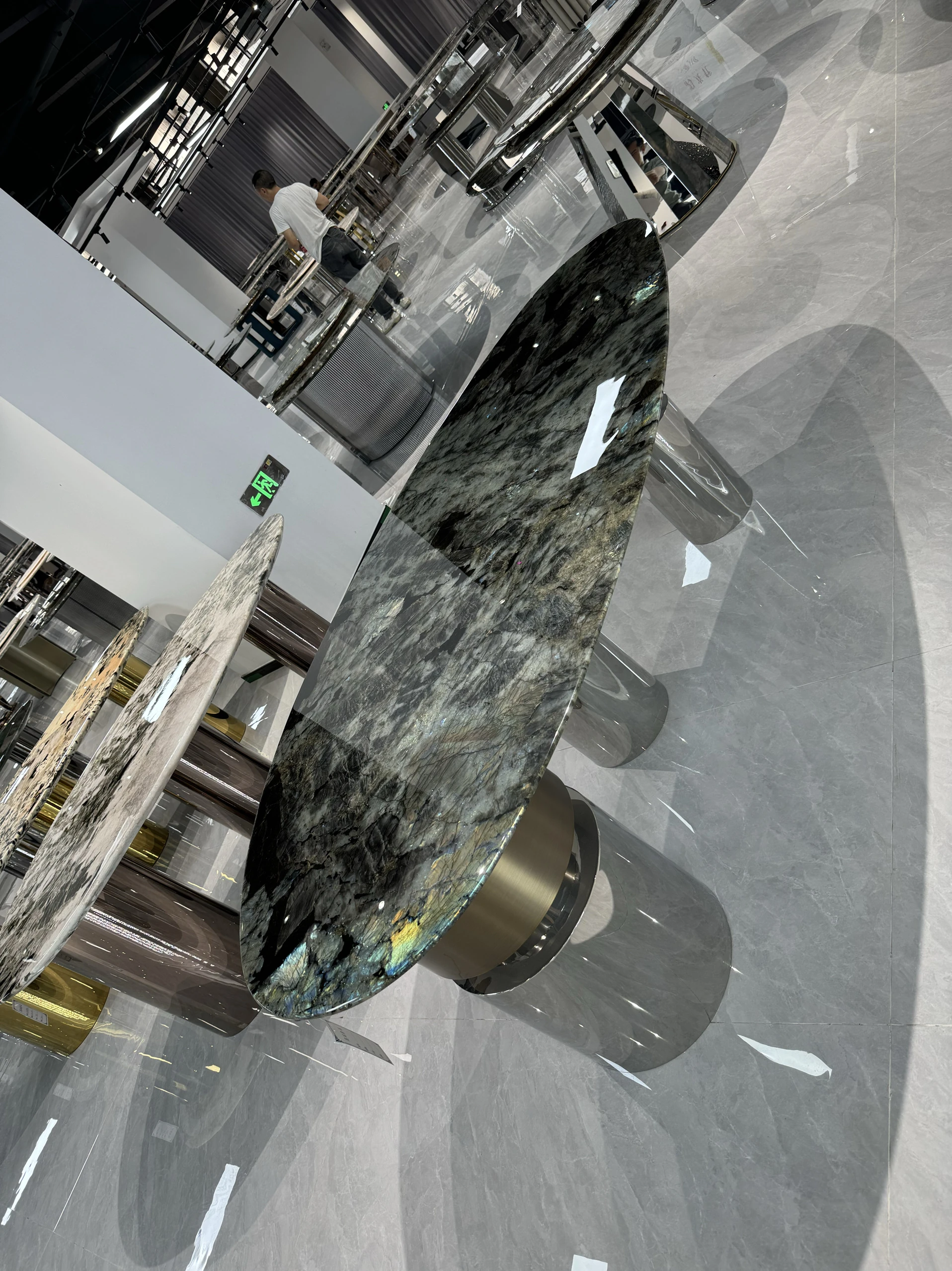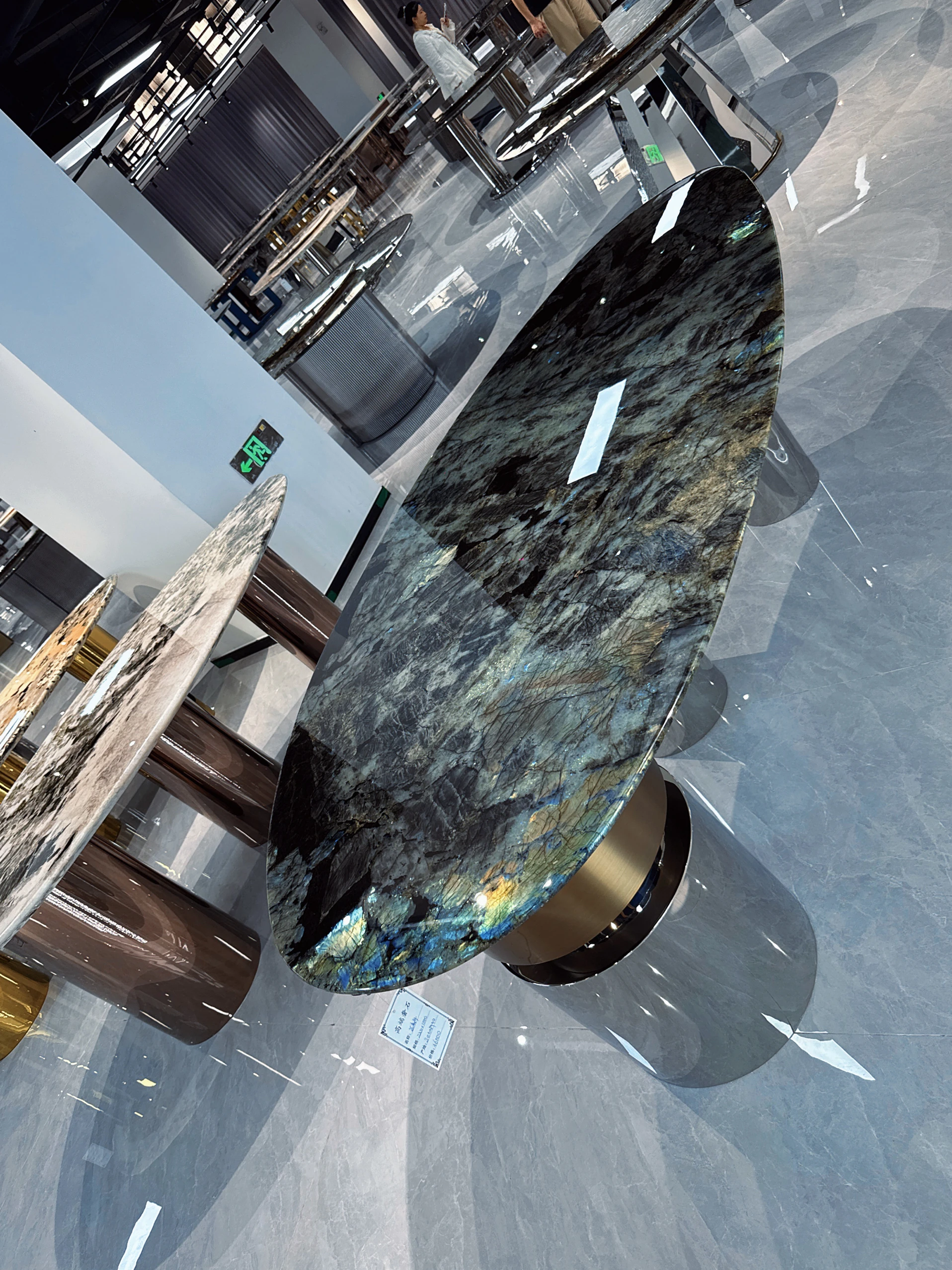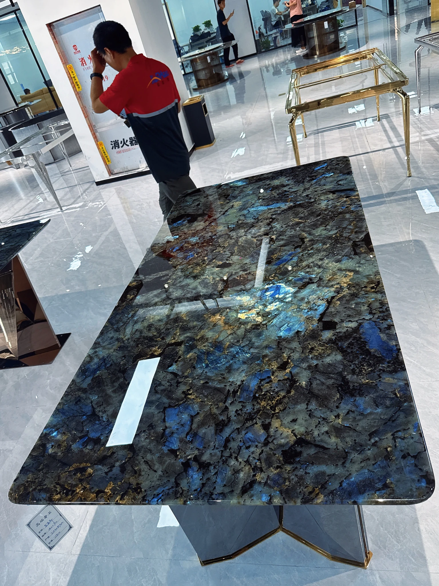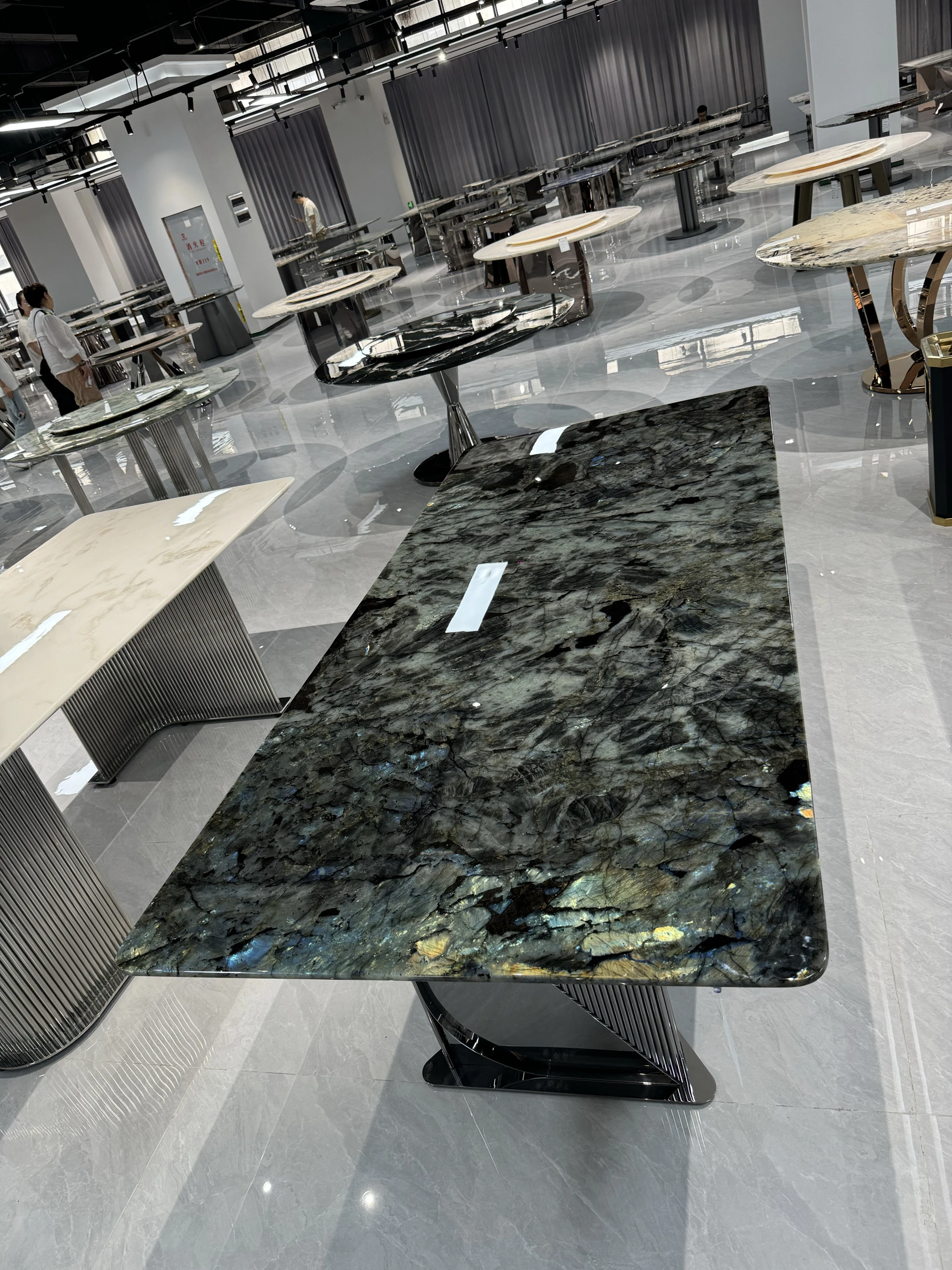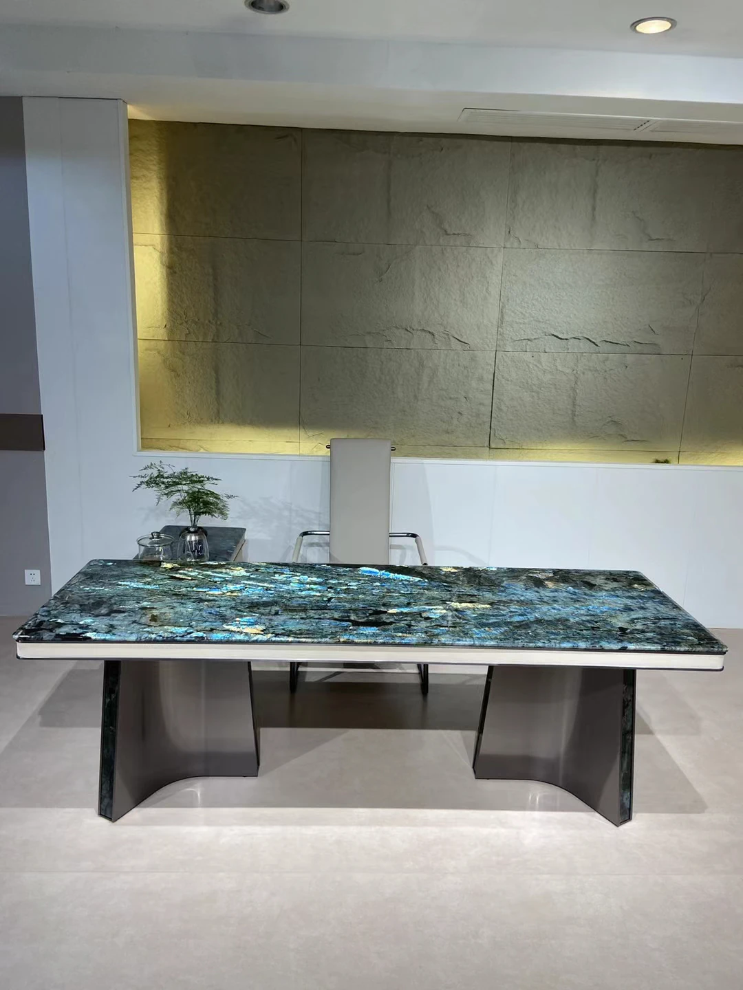 ブラジル輸入天然ブルー翡翠ラグジュアリー石ロングテーブル品位別/平方メートル