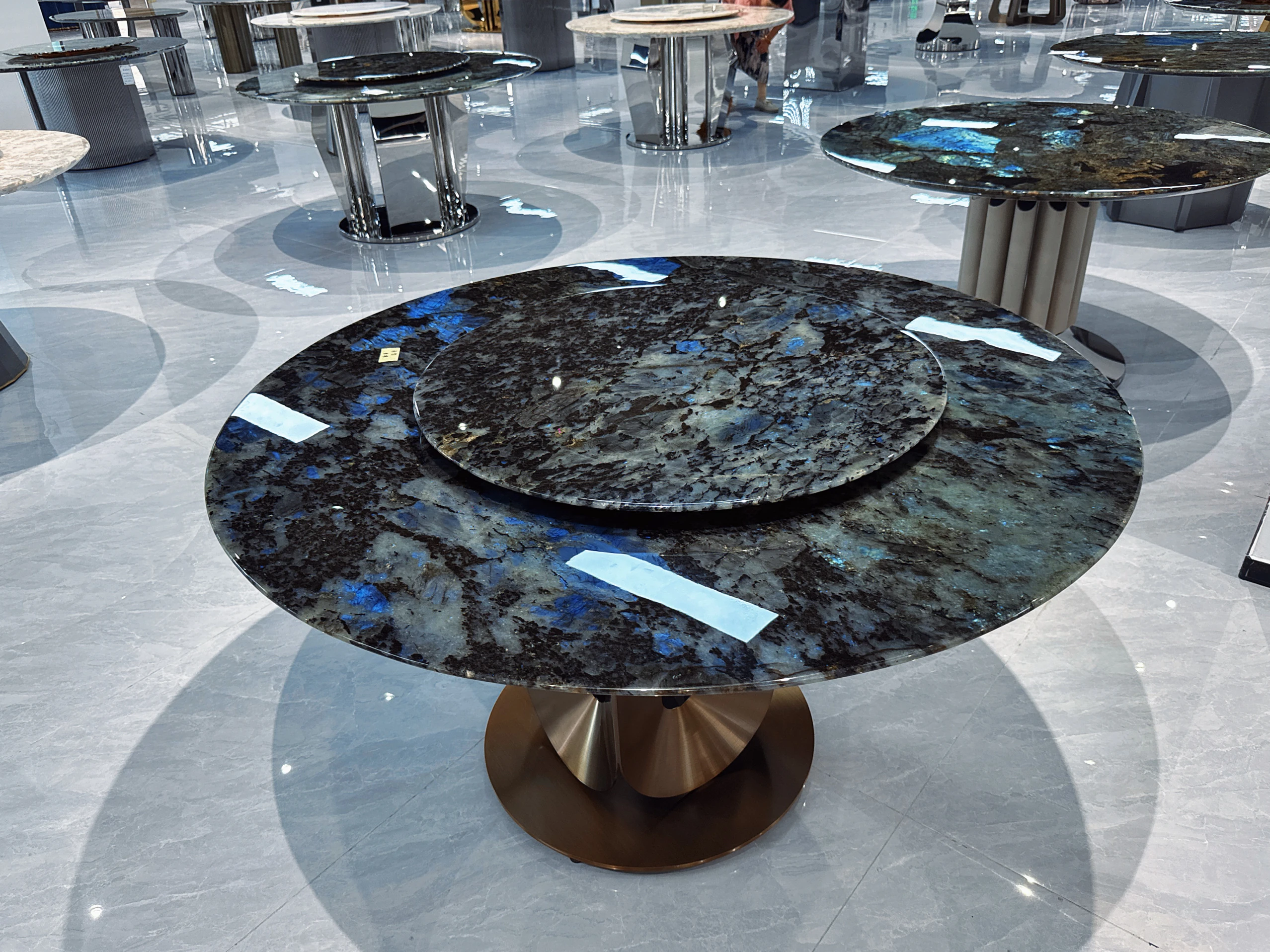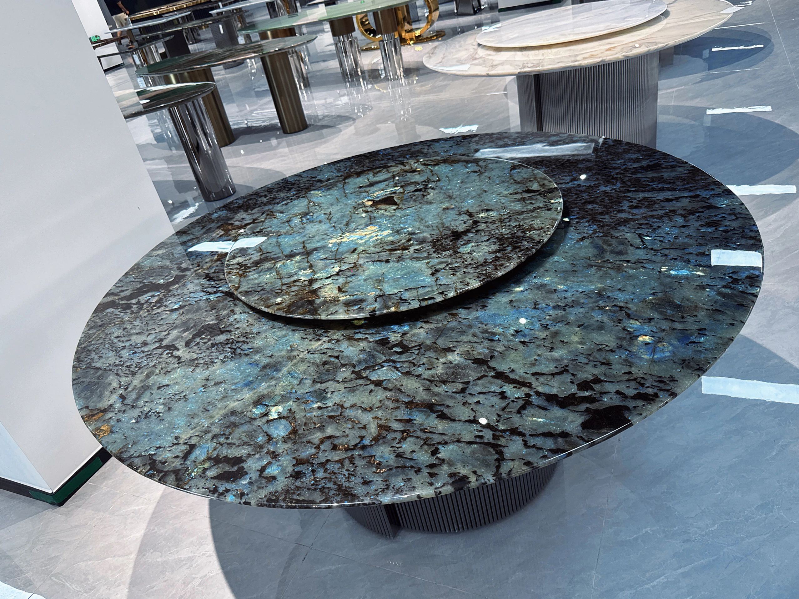 ブラジル輸入天然ブルー翡翠ラグジュアリー石ラウンドテーブル品位別/平方メートル
