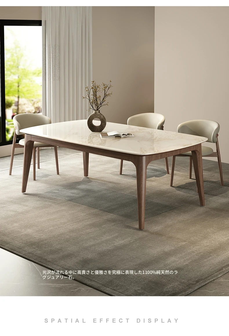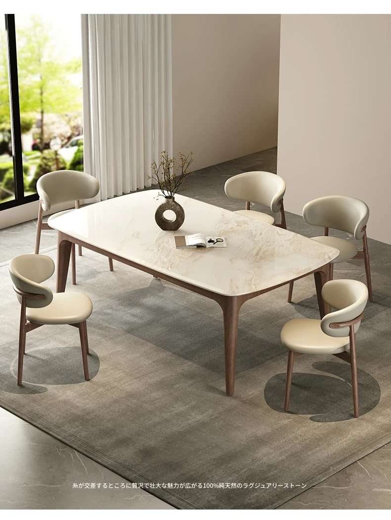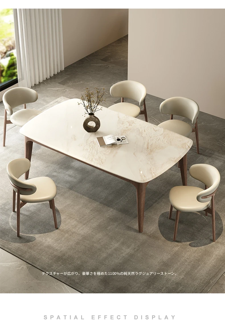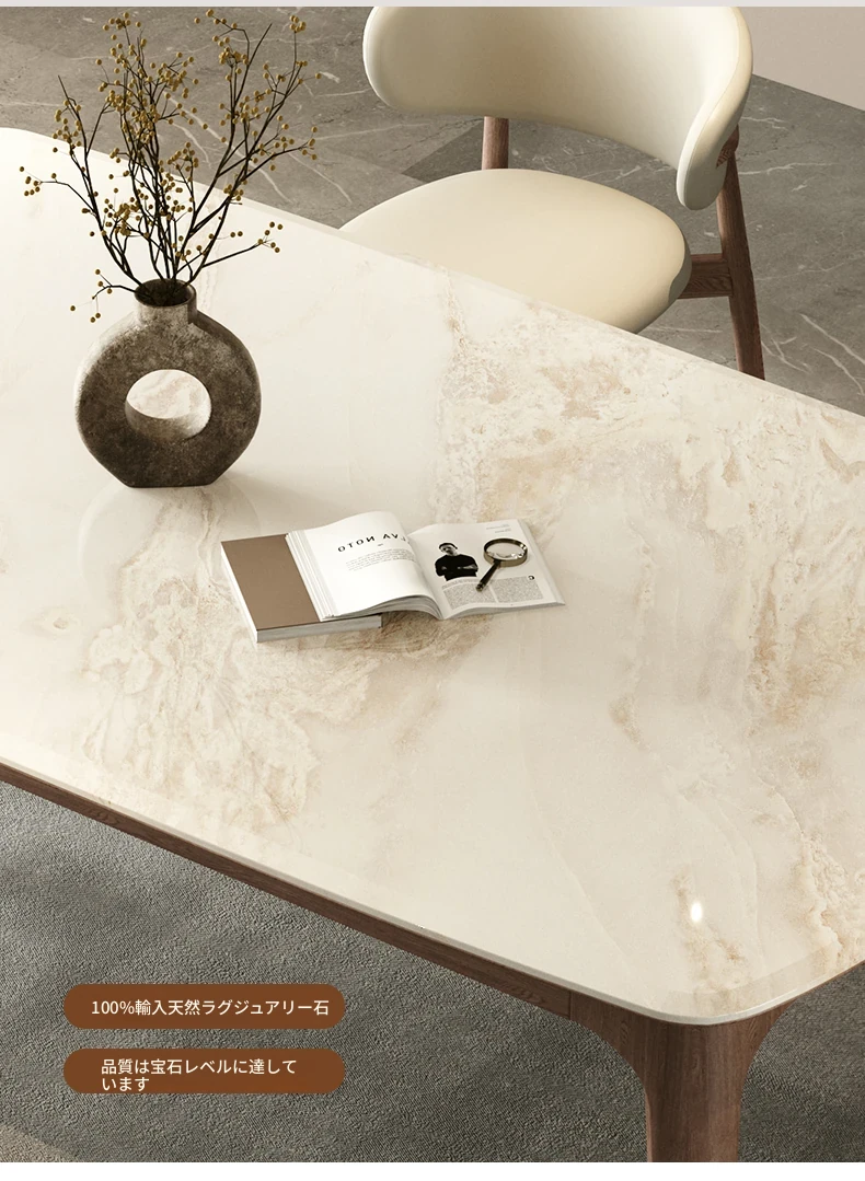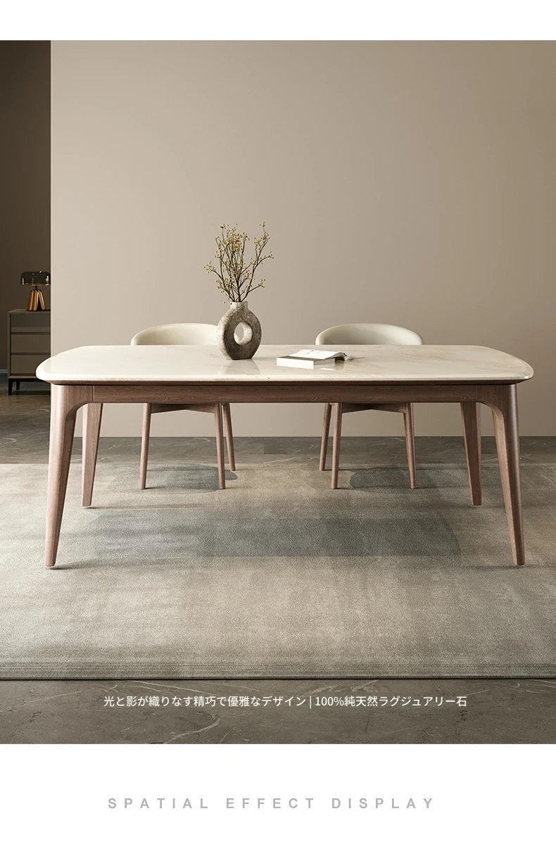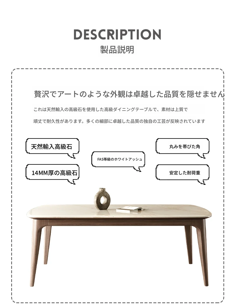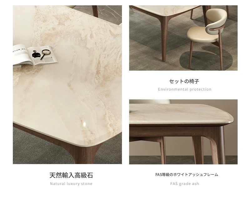 純天然ラグジュアリー石製ダイニングテーブル|モダンでシンプルなデザイン|大理石とホワイトアッシュの高級素材を使用した食卓|上質なひとときを提供するダイニングセット。