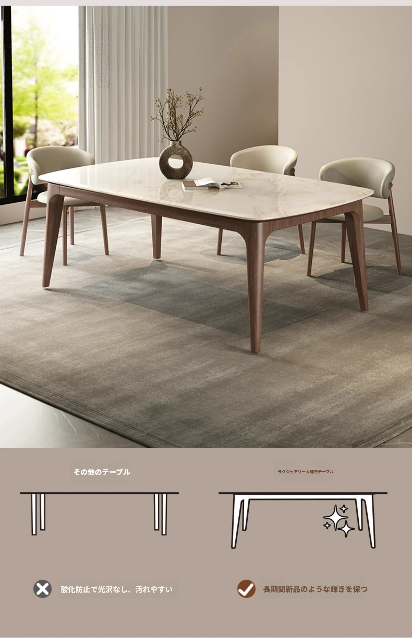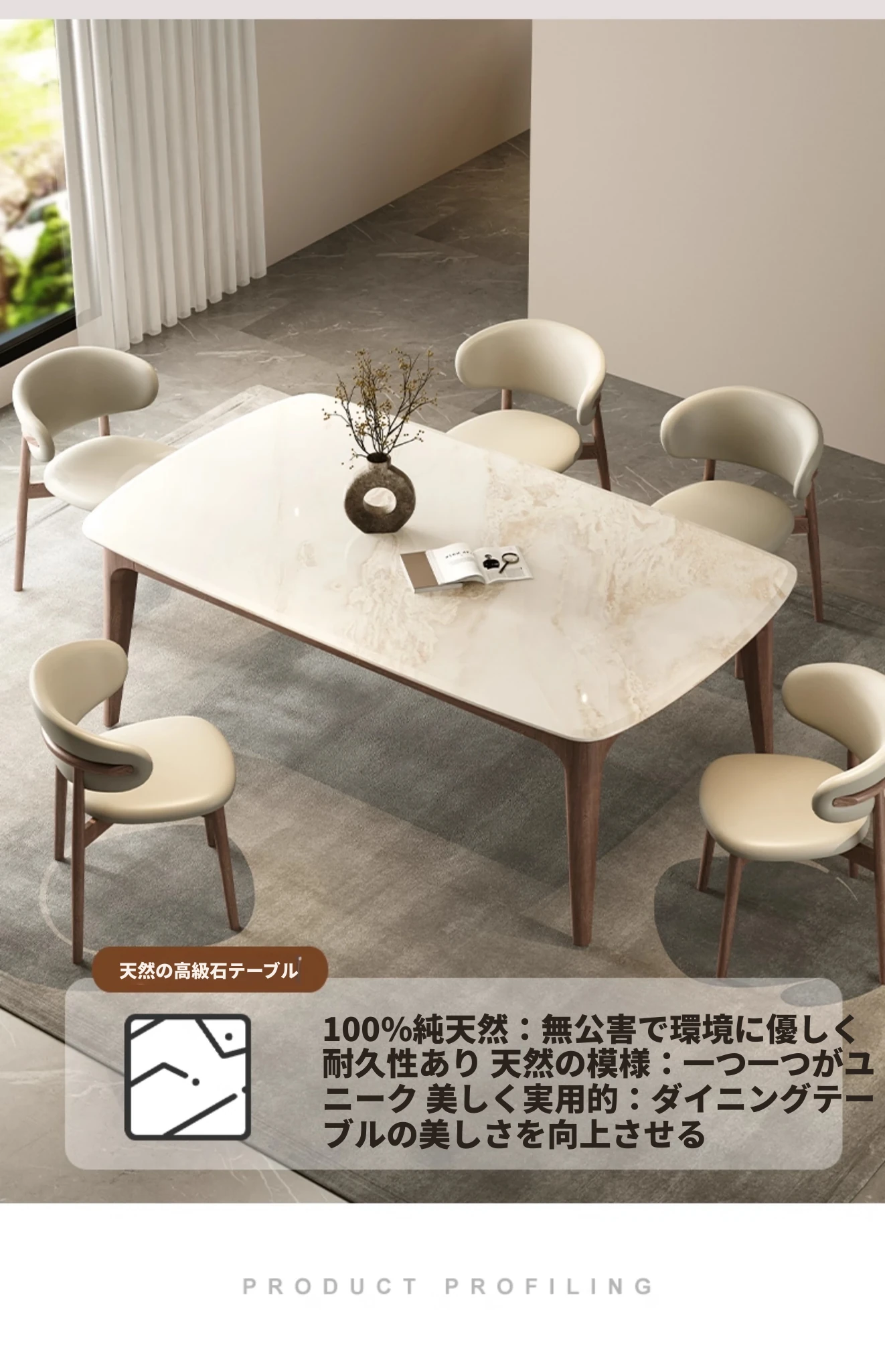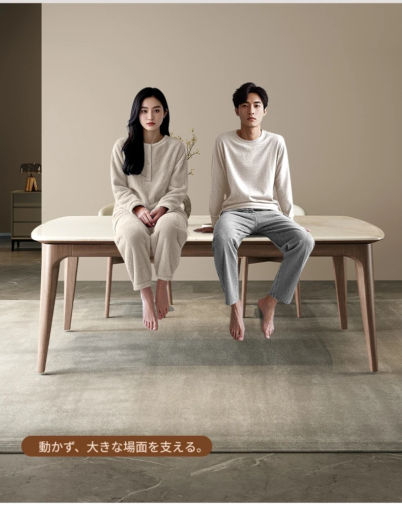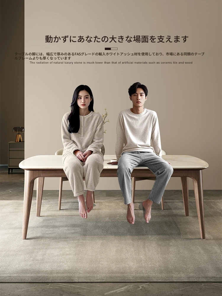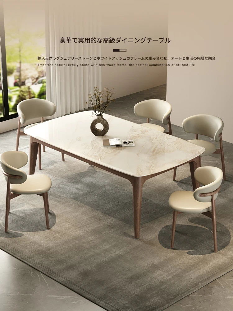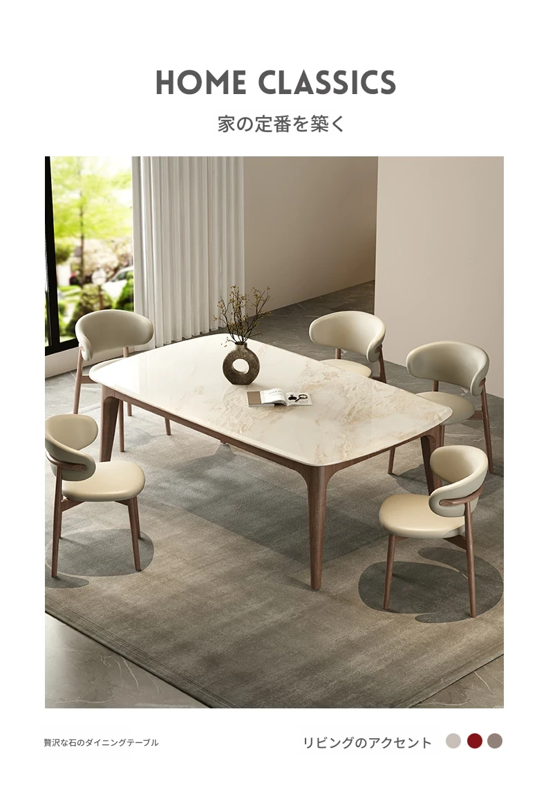 純天然ラグジュアリー石製ダイニングテーブル|モダンでシンプルなデザイン|大理石とホワイトアッシュの高級素材を使用した食卓|上質なひとときを提供するダイニングセット。