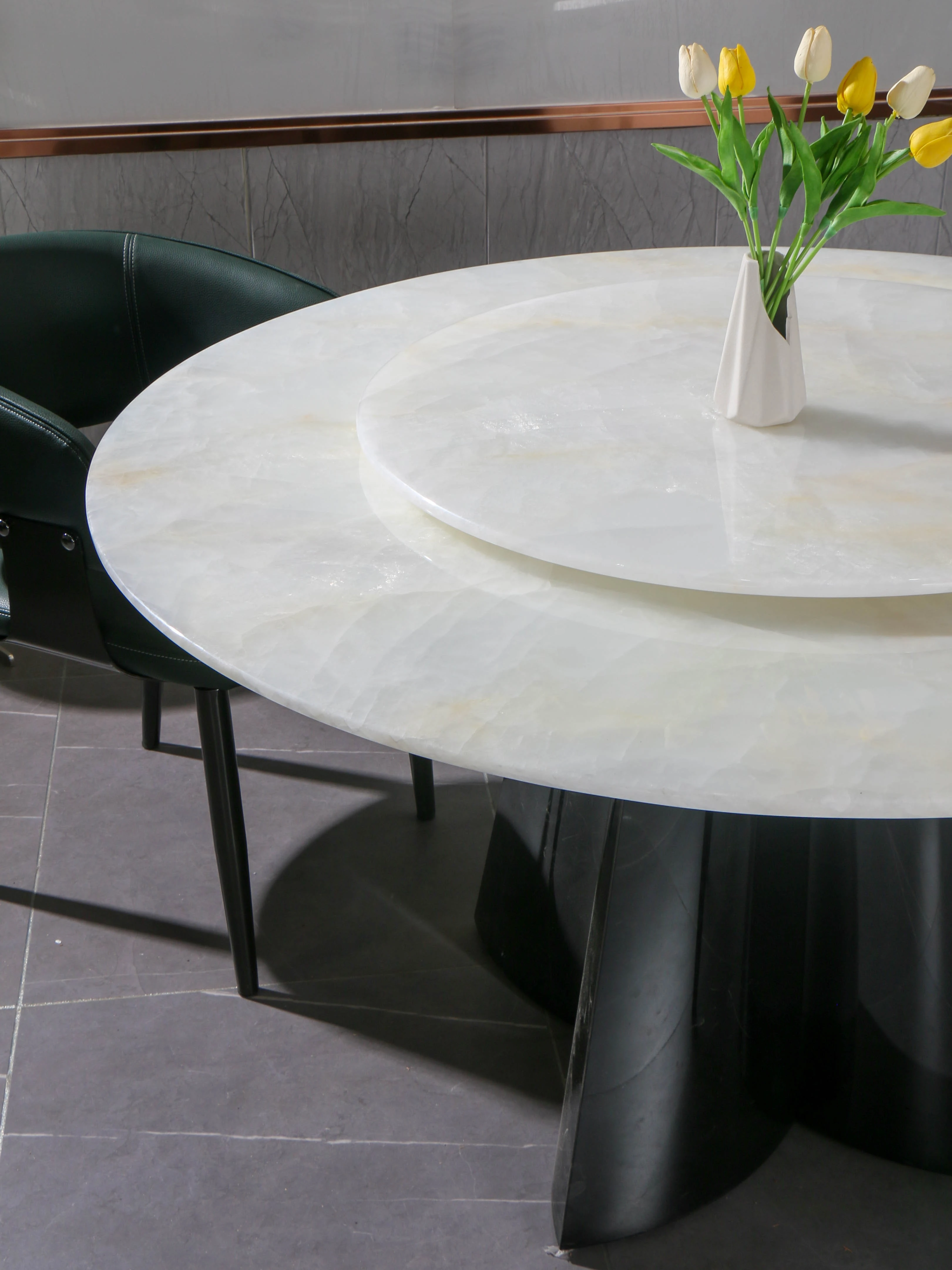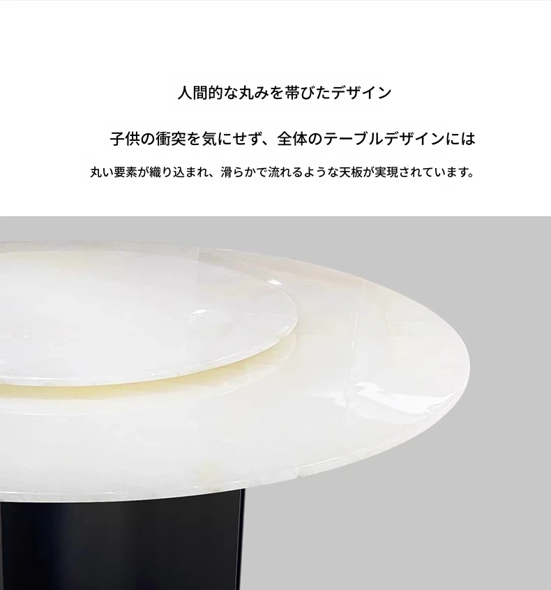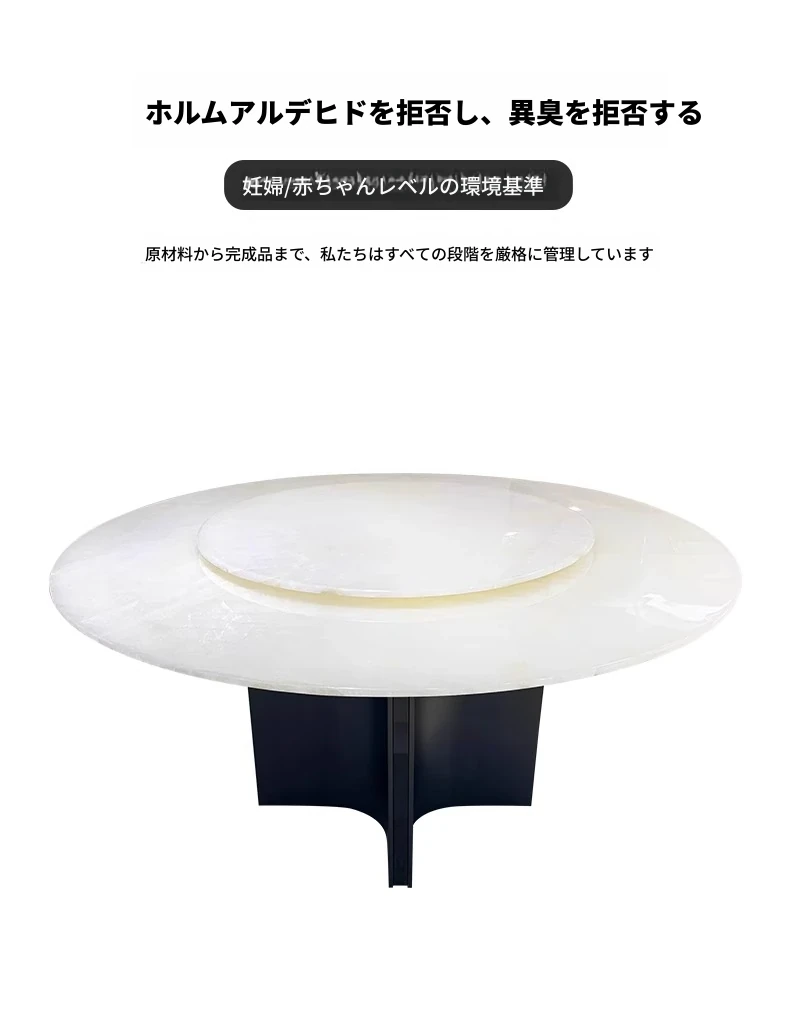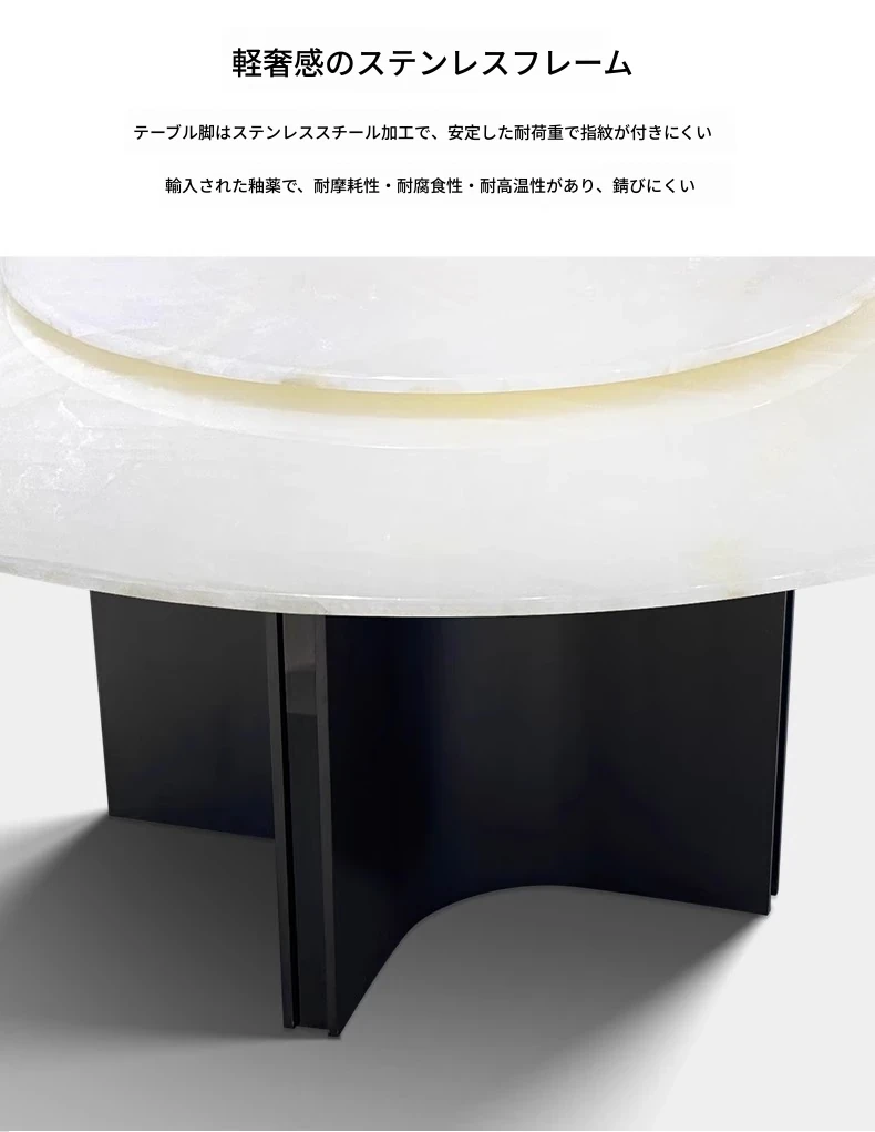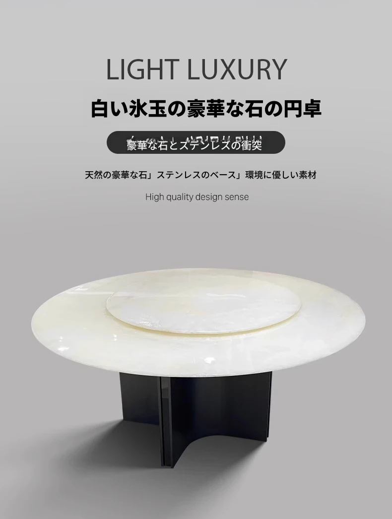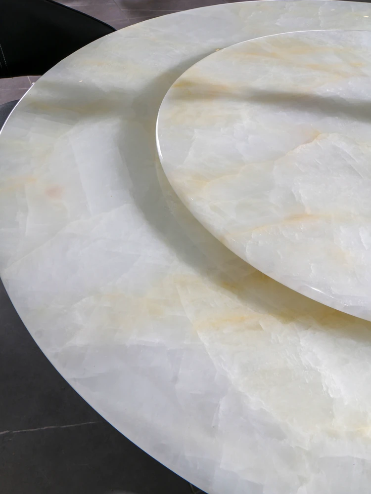 天然白冰玉贅沢石製ダイニングテーブル【回転盤付き】