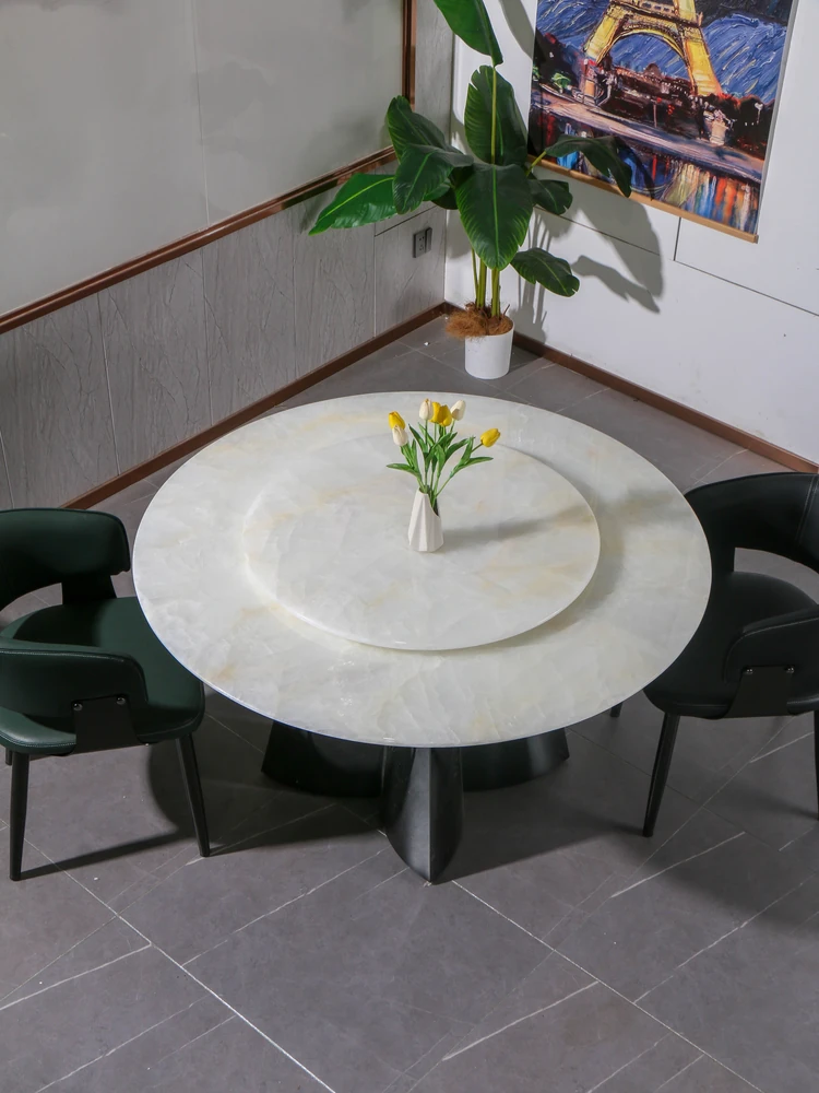 天然白玉翡翠贅沢石製ダイニングテーブル【回転盤付き】