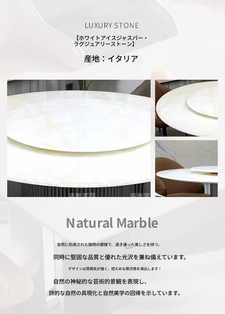 天然白玉翡翠贅沢石製ダイニングテーブル【回転盤付き】+ ラグジュアリーなダイニングチェア*8