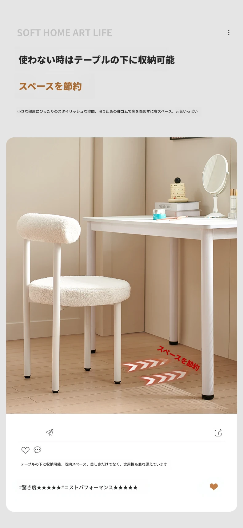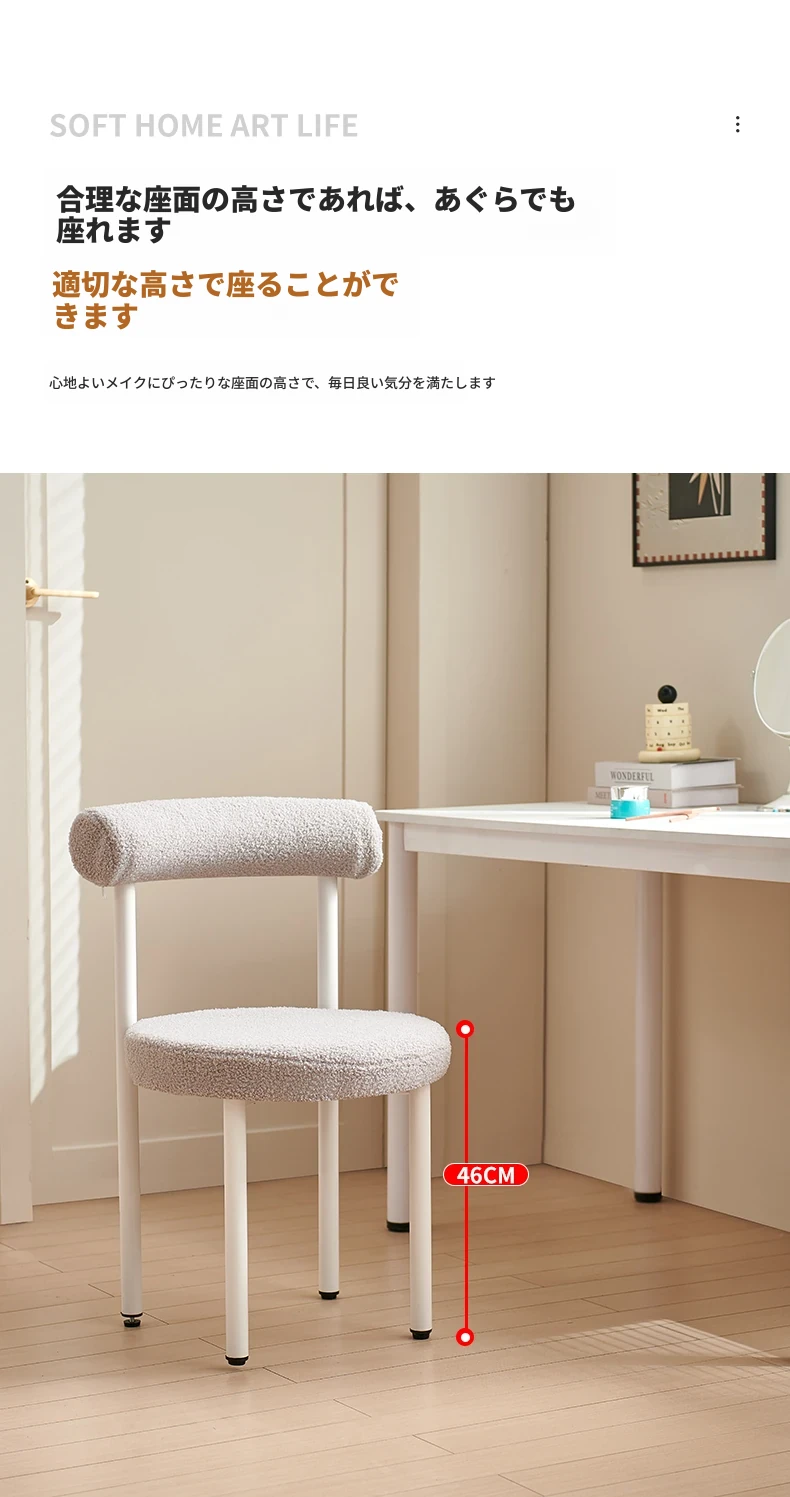 シンプルでおしゃれなクリーム風化粧椅子!金属製の快適な化粧スツール、長時間座っても疲れにくい!お家での贅沢なひとときを演出する、インスタ映え必至のアイテムです。
