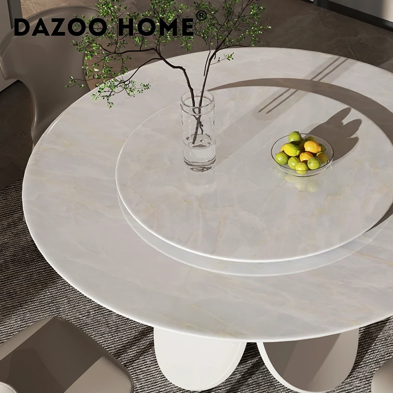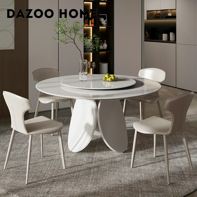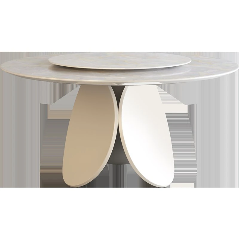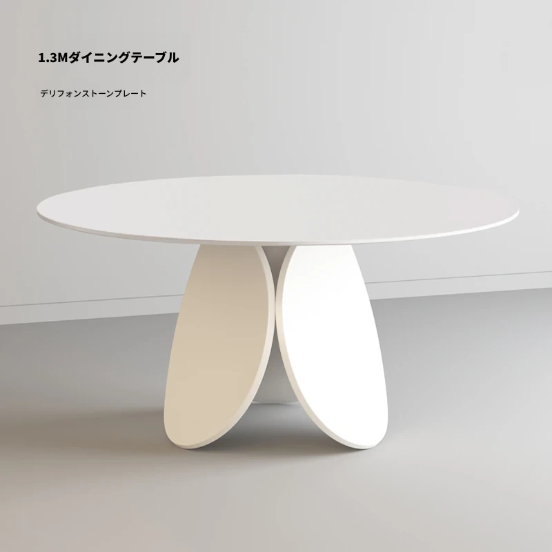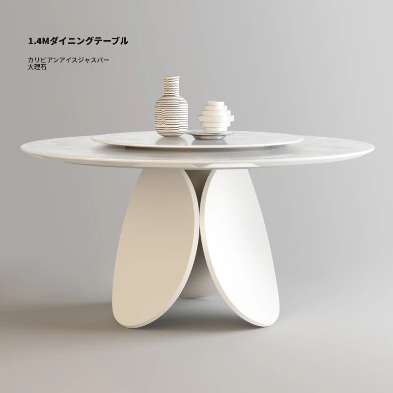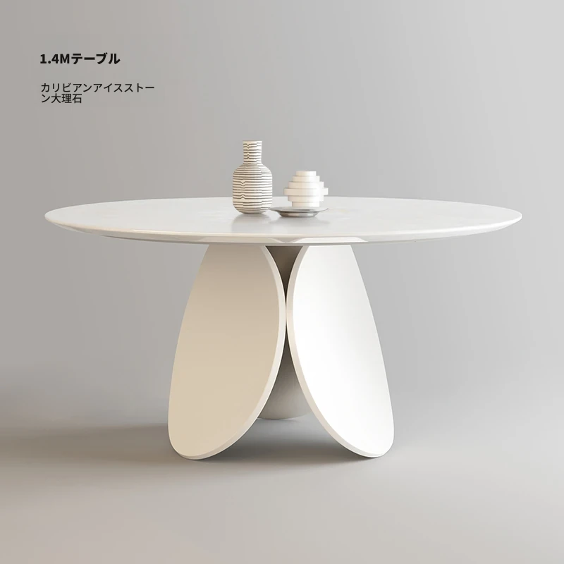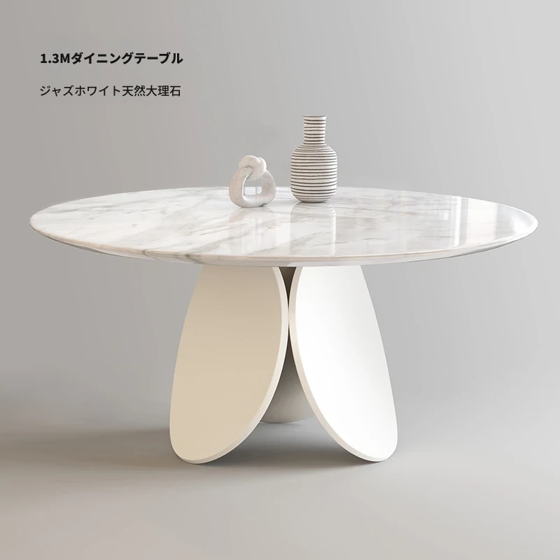 イタリアンモダンミニマリスト天然大理石ラウンドダイニングテーブル - シンプルで洗練されたデザイン、贅沢な住空間にぴったりな花びら型の食卓。大平層や別荘に最適な一品です!