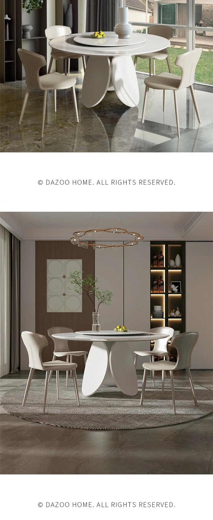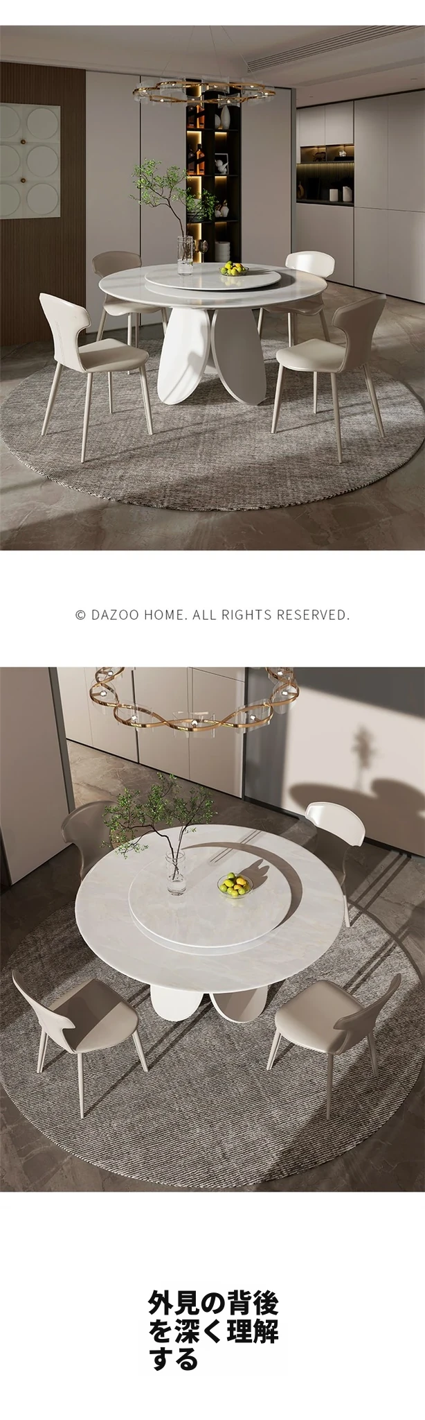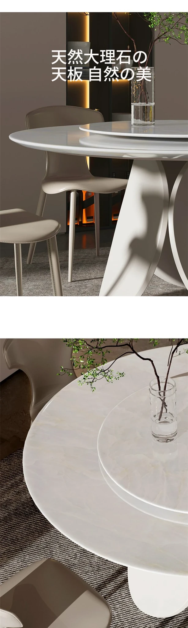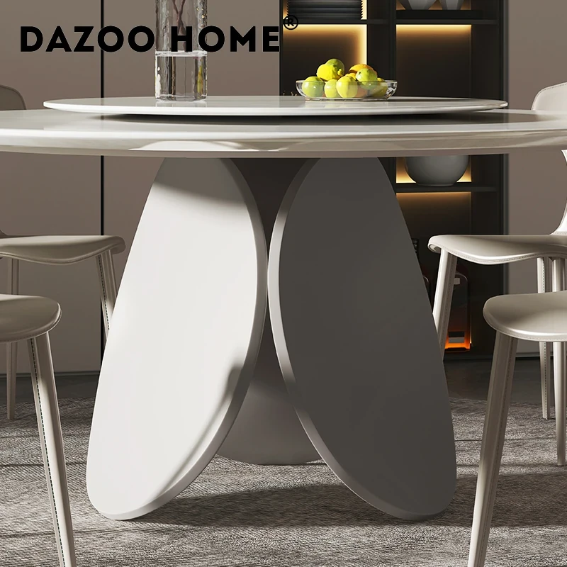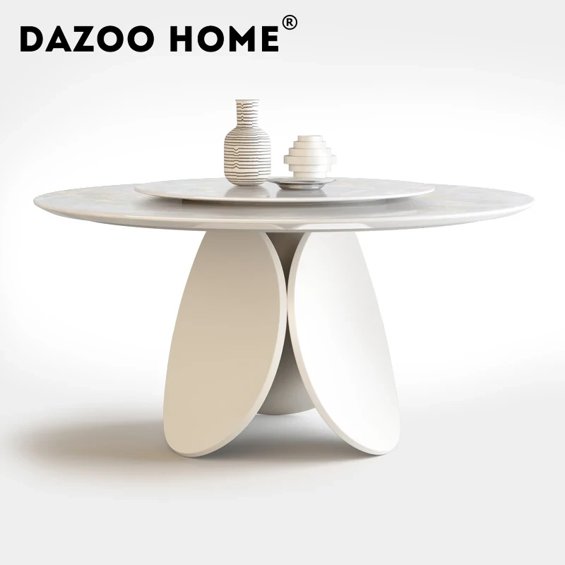 イタリアンモダンミニマリスト天然大理石ラウンドダイニングテーブル - シンプルで洗練されたデザイン、贅沢な住空間にぴったりな花びら型の食卓。大平層や別荘に最適な一品です!