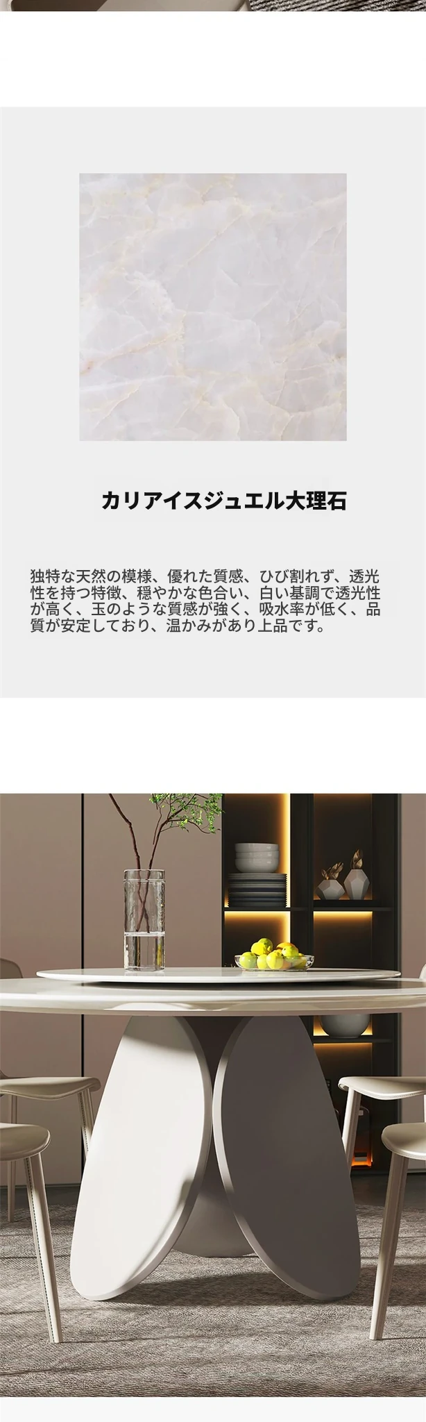 1.4Mカリアイス玉天然大理石【クリームホワイト花びら脚】回転盤付き