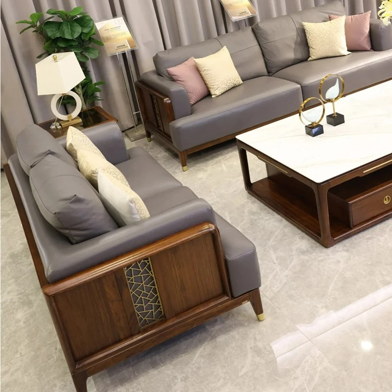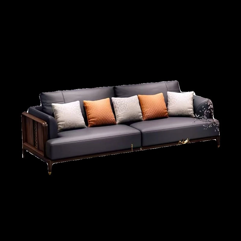 新中式スタイルの本黒胡桃無垢材ソファ - 小型リビングに最適!真のF皮を使用した高級感あふれるデザイン、モダンで洗練された別荘スタイルの家具。あなたの空間にぴったりの選択です!