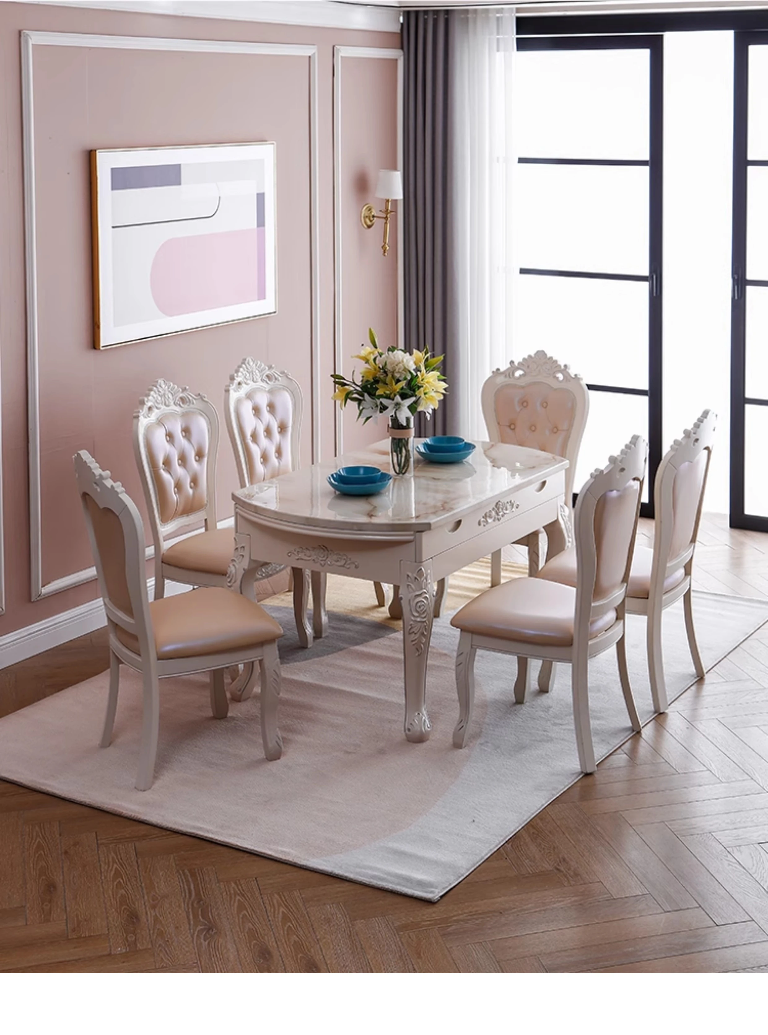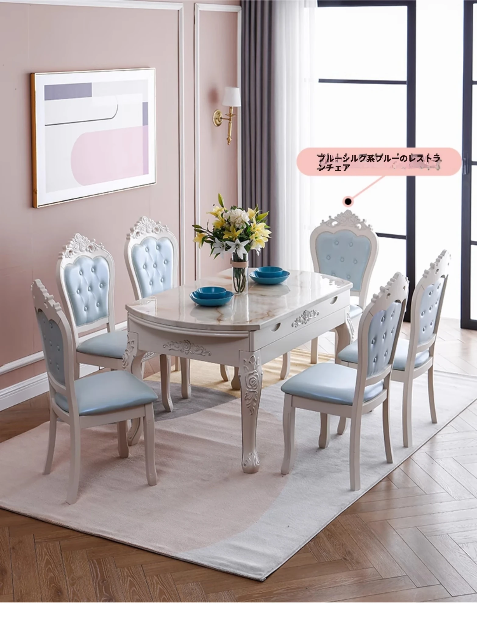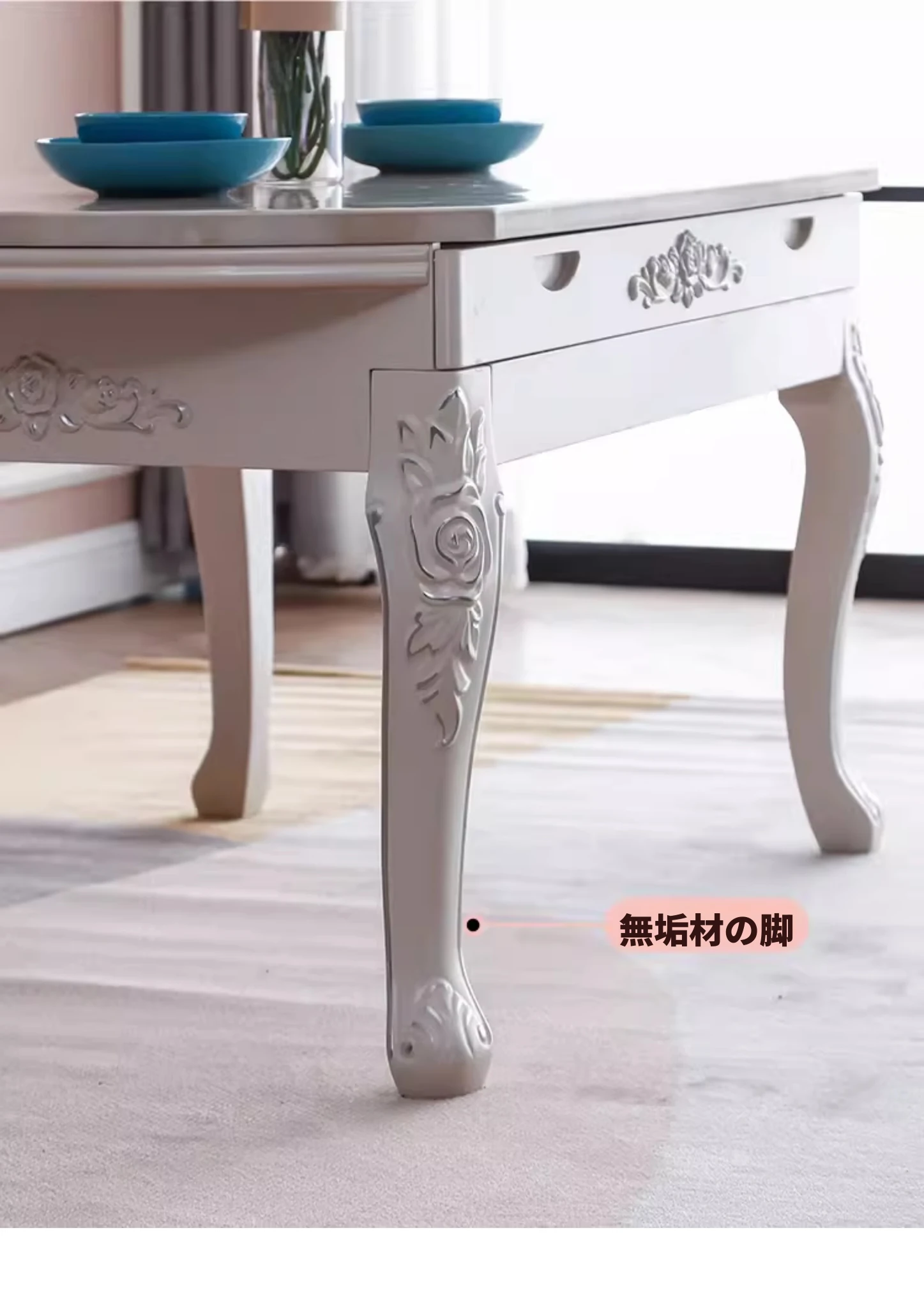 モダンでシンプルな欧式ダイニングテーブルセット!小さなスペースにもぴったりな実木と大理石の組み合わせ。伸縮式・折りたたみ可能な多機能ラウンドテーブルで、家族や友人との食事をより楽しく演出します!