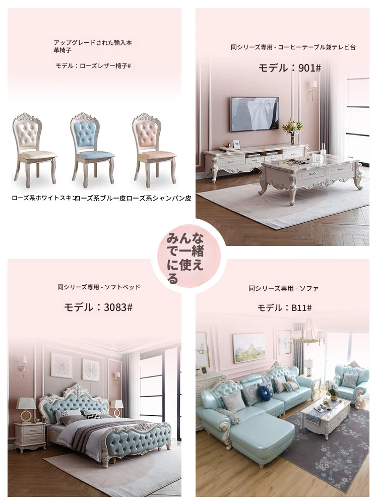 1.5メートルダイニングテーブル+6椅子(ローズ本革)