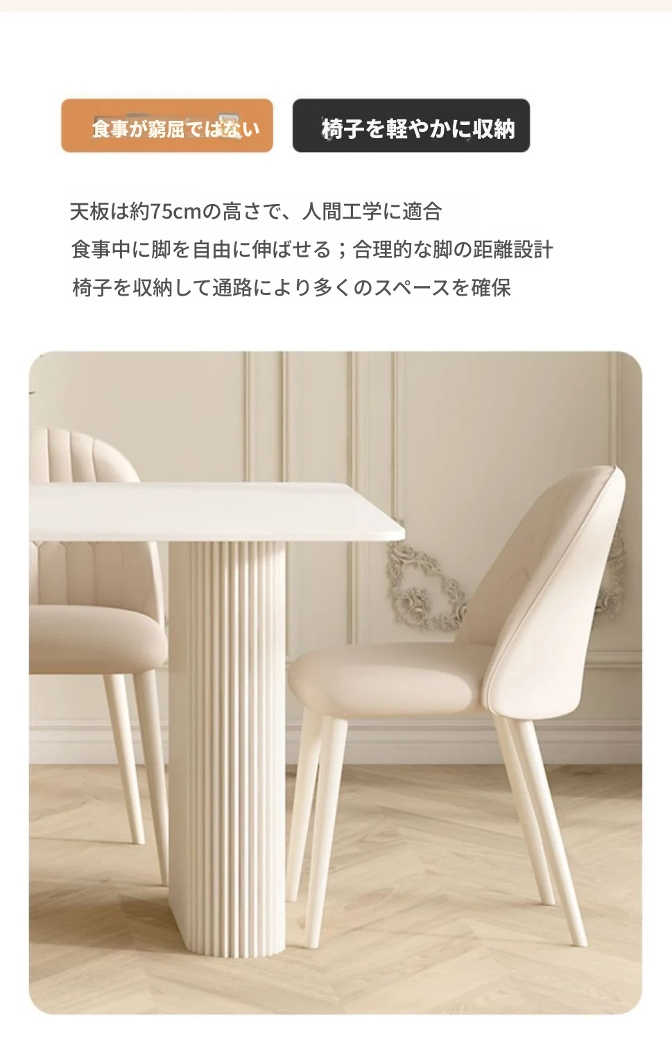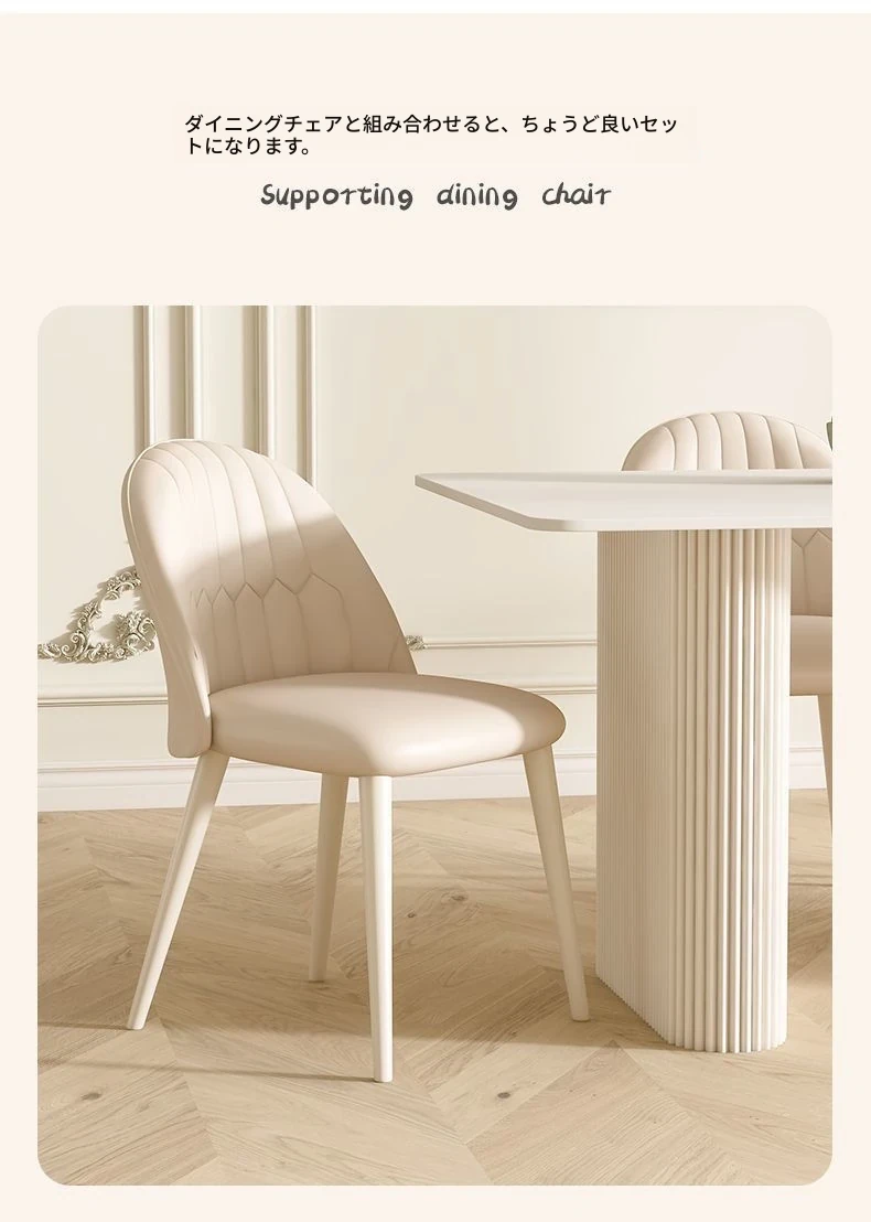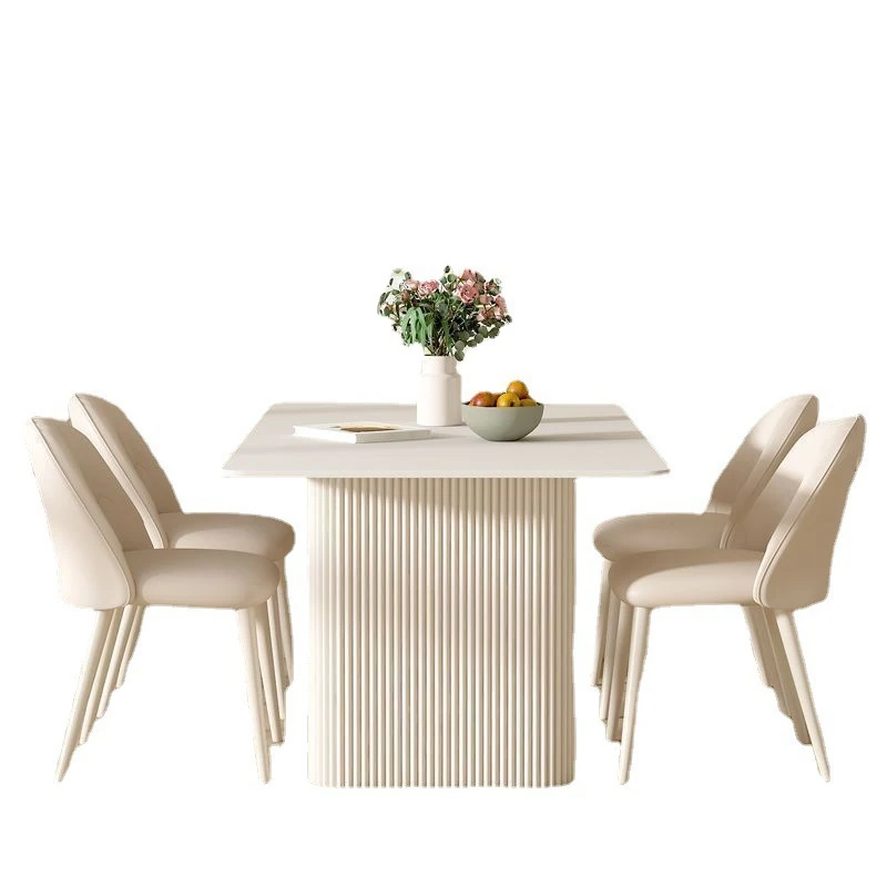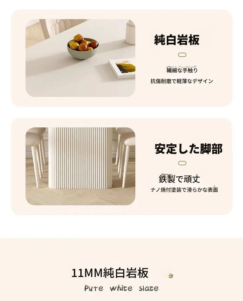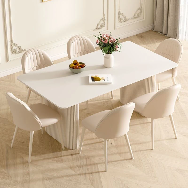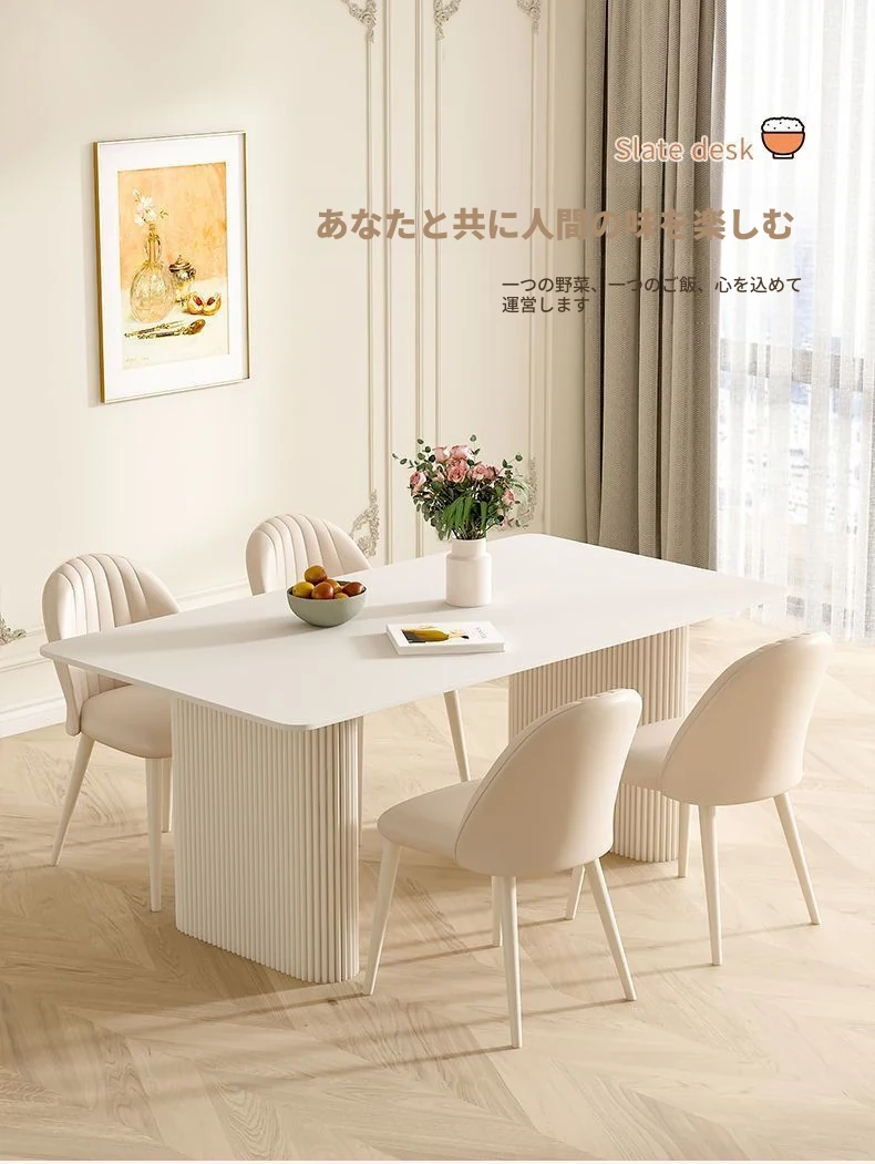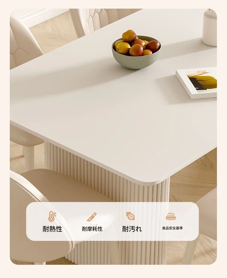 クリーミーなホワイトの岩板ダイニングテーブル - モダンでシンプルなデザイン、コンパクトなスペースにも最適!流行の長方形テーブルと椅子のセットで、上質な食卓を演出します。