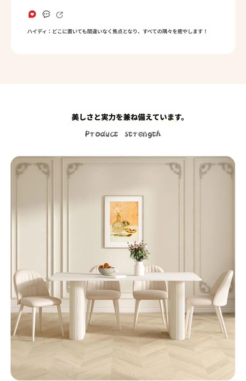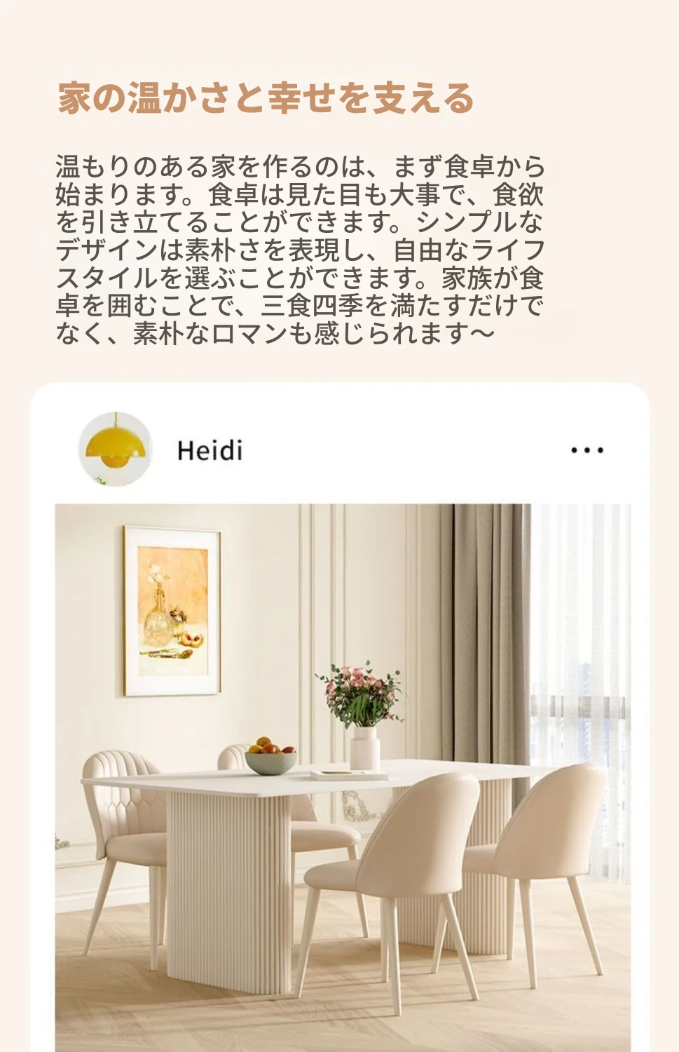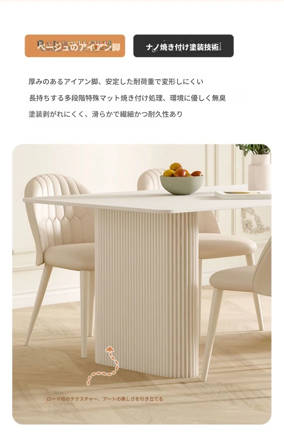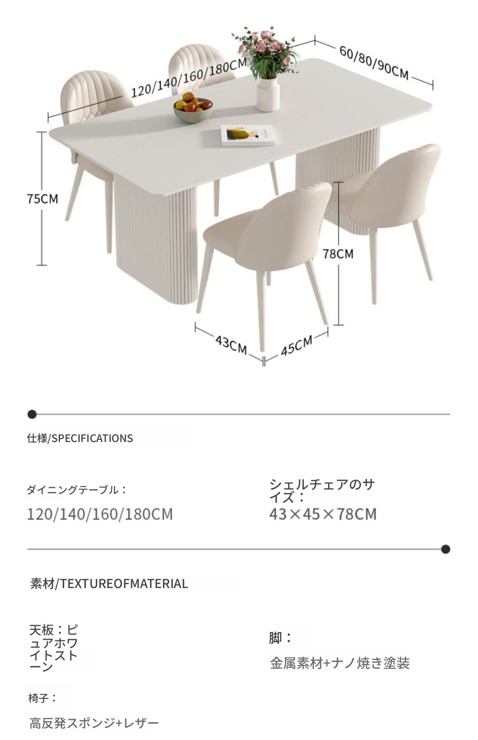 クリーミーなホワイトの岩板ダイニングテーブル - モダンでシンプルなデザイン、コンパクトなスペースにも最適!流行の長方形テーブルと椅子のセットで、上質な食卓を演出します。